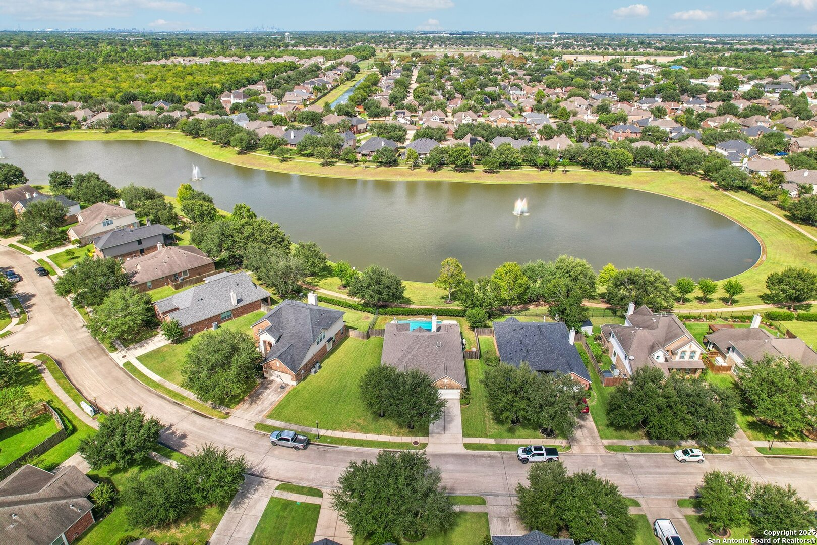 Welcome to 4605 Lakefront Terrace Drive in the gated community of Cabot Cove in Pearland. This beautifully maintained 3-bedroom, 2-bath home offers 2,144 sq. ft. of open living space with soaring ceilings and abundant natural light. The kitchen features generous cabinetry, a practical center island, and a gas stove, opening seamlessly to the dining and living areas. The primary suite includes an attached office and his-and-her closets, perfect for working from home and enjoying ample storage. Step outside to your own heated pool with an attached hot tub, all overlooking the tranquil lake with no back neighbors-a rare combination of privacy and luxury. Recent upgrades include a Kohler 26-kW gas-powered backup generator and a roof replaced just two years ago, providing extra peace of mind. This home is a great opportunity: it could use new carpet and paint, but at this price it's a dream. With easy access to Highway 35 and 288 and just minutes from NRG Stadium, it blends lakefront serenity with city convenience. Schedule your showing today to see the potential for yourself.