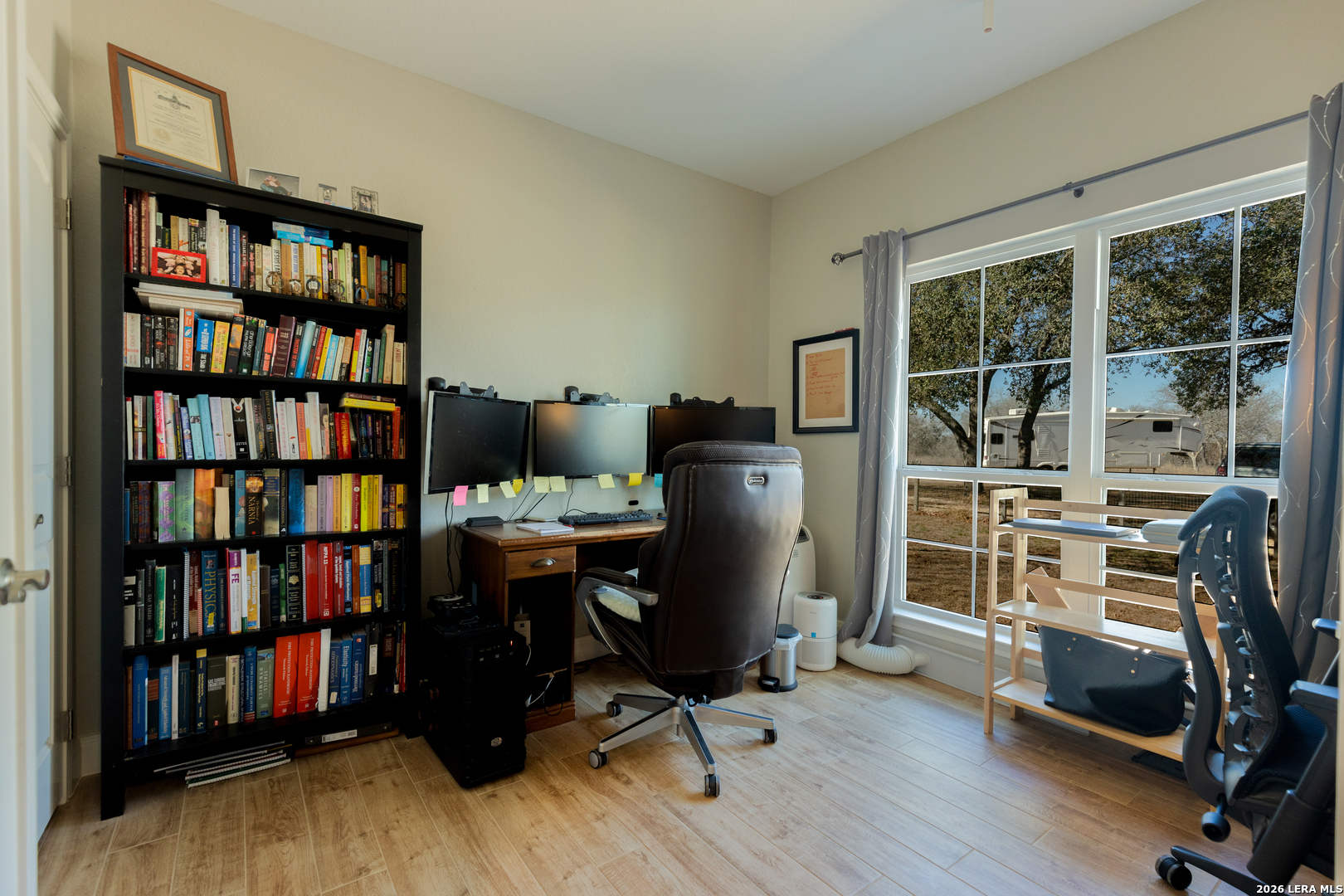 Experience the perfect blend of comfort, craftsmanship, and wide-open Texas skies in this custom-built 2018 home set on 10.67 breathtaking acres and just 2 minutes to I-35. Offering 2,670 square feet of thoughtfully designed living space plus a 564-square-foot two-car garage, this 4-bedroom, 2.5-bath plus bonus room home combines elevated finishes with everyday functionality. From the moment you step inside, you're greeted by soaring vaulted ceilings and beautiful oversized windows that flood the home with natural light, creating a bright, airy feel throughout the main living areas. The heart of the home is the spacious kitchen, designed for both entertaining and daily family life. You'll love the abundance of cabinetry and storage, generous counter space, gas stove, and seamless flow into the dining and living areas. Whether hosting holidays or casual weeknight dinners, this kitchen truly delivers both style and practicality. This house absolutely screams FAMILY. It was thoughtfully designed to fit a happy, growing family - complete with their four-legged friends. From spacious gathering areas to practical everyday features, every detail supports connection, comfort, and making memories together. The split floorplan offers privacy for the primary suite while keeping the secondary bedrooms thoughtfully positioned. The kids' bedrooms feature a unique Jack-and-Jill style bathroom and spacious closets, offering both convenience and personal space. A dedicated study provides the perfect home office setup, while the media/flex room can easily adapt to a playroom, workout space, second living area, or movie/media room as it was initially designed to be. Country living is made easy with a massive mudroom and laundry room combination - complete with extensive storage, a built-in dog washing station, and a doggie door leading to the fenced backyard. This room can be closed off from the rest of the house giving you dedicated indoor area for your pets, especially nice during the colder months. Step outside and enjoy over 900 square feet of covered front and back porch space, ideal for relaxing and entertaining. The back porch is a true retreat with a fireplace, mounted TV, and three ceiling fans - the perfect place to unwind while watching native wildlife roam and sunsets stretch across the horizon. Built for durability and storage, the home features a metal roof and extensive attic storage. The property also includes an RV pad with full hookups and a covered metal barn ideal for storing boats, tractors, equipment, or recreational vehicles. If you've been dreaming of privacy, space to roam, and a home designed for both beauty and function, this exceptional property delivers it all! Schedule your showing today - this beautiful place won't last long!