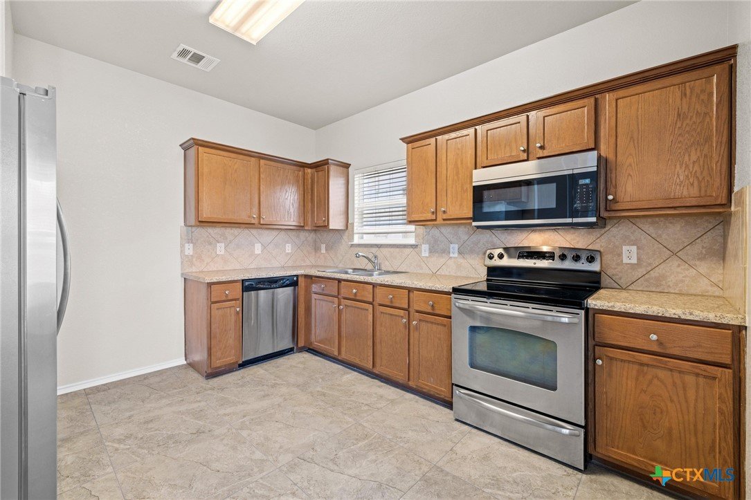4613 Green Meadow Dr, Killeen, TX Welcome to your next home! This beautifully updated 5-bedroom, 2.5-bath gem has all the space and style you’ve been looking for. Inside, you’ll find fresh interior paint, new ceramic tile, plush new carpet, stainless steel appliances, fresh exterior paint, and a brand-new impact-resistant architectural shingle roof. The spacious primary suite is your own retreat, complete with a walk-in closet, soaking tub, separate shower, and double vanity. Secondary bedrooms are generously sized—perfect for family, guests, or a home office. Step outside to relax on the inviting covered front porch, or host friends and family on the large covered back patio. And the location? You’re just minutes from Killeen Crossing, Killeen Mall, AdventHealth Central Texas, and the Mayborn Planetarium & Space Theater. Schools, shopping, dining, parks, and entertainment are all close by—plus quick access to major roads makes commuting a breeze. This home checks all the boxes for comfort, convenience, and style—come see it today!