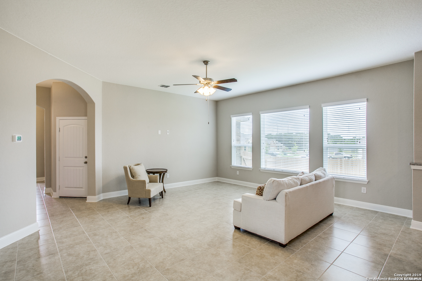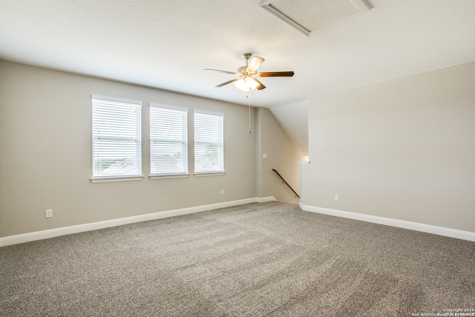 Spacious Chesmar built four-bedroom, three bath home offering over 2,700 square feet of comfortable living in desirable Alamo Ranch. This 1.5 story residence features an open-concept layout ideal for both everyday living and entertaining, with generously sized living spaces. The kitchen flows seamlessly into the main living area and comes equipped with refrigerator, double ovens, gas cooktop, washer, dryer, and water softener, adding everyday comfort and energy efficiency for tenants. Enjoy the covered patio with remote controlled solar shades for enjoyment year round! No side neighbors and large privacy fenced backyard are perfect for outdoor dining or relaxing year-round. An attached garage provides secure parking and additional storage. Ideally located near major highways, shopping, dining, parks, and top-rated Northside ISD schools, this home offers a rare combination of space, privacy, convenience, and modern Texas living!