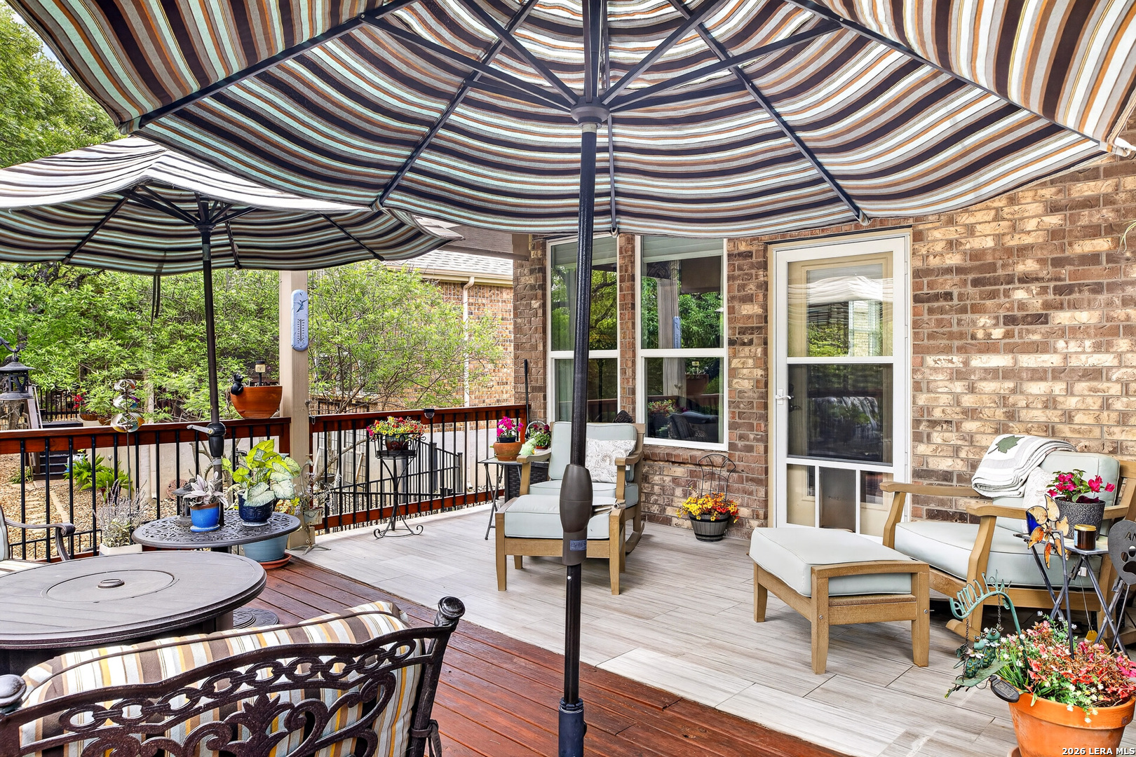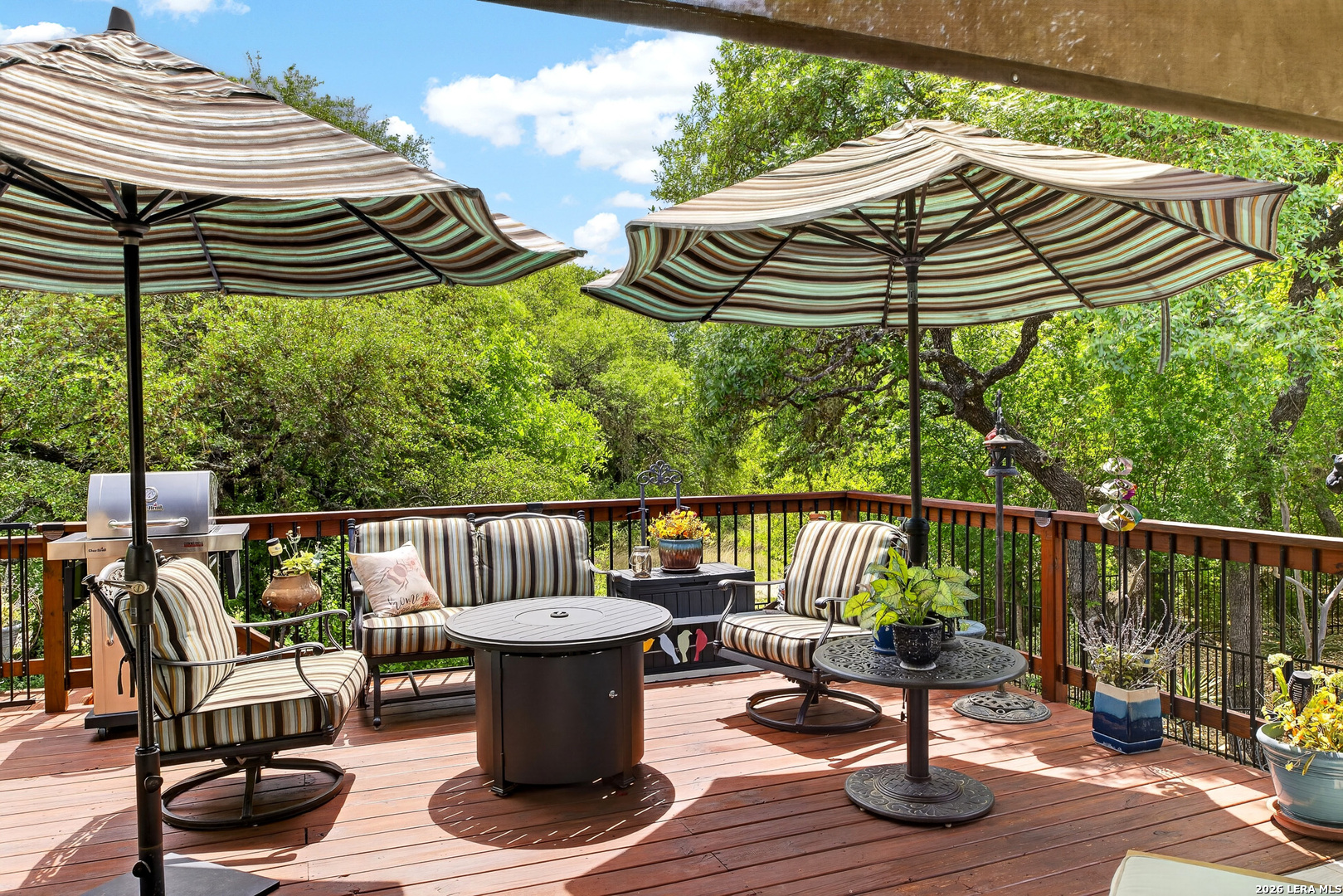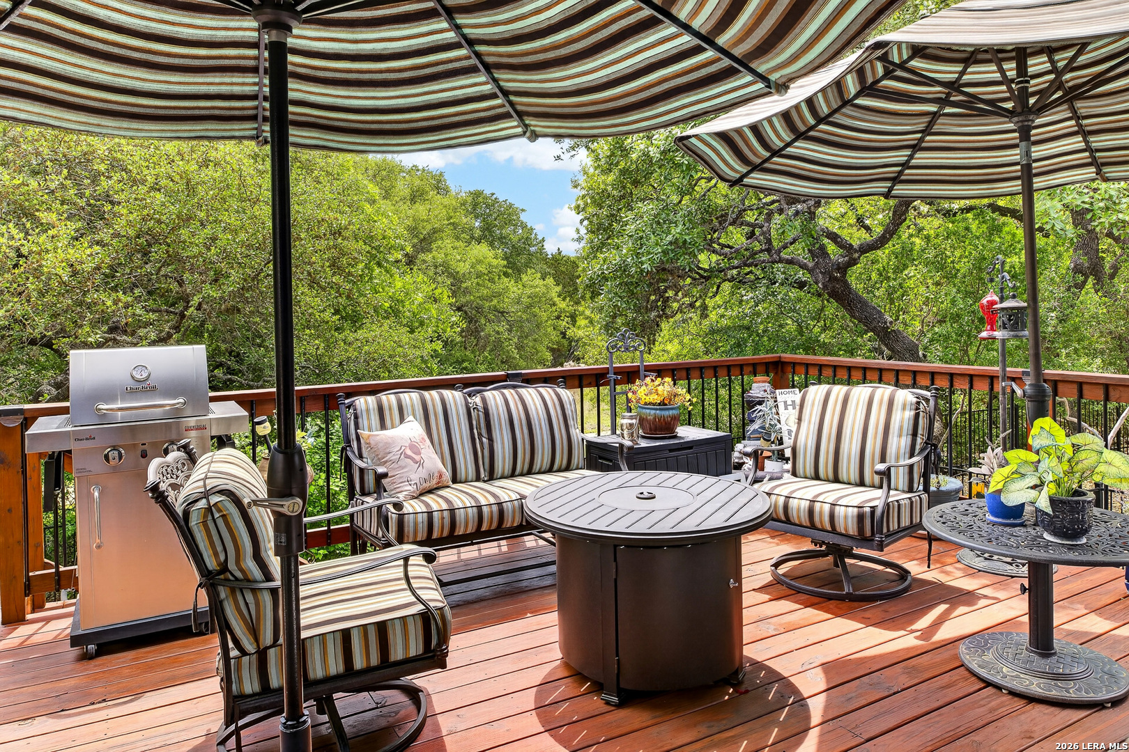 Exceptional upgrades and features are included in this home that sits on a beautiful greenbelt lot that backs onto a walking trail with easy access to the resort. The completely landscaped property features a large deck off the covered patio, as well as a covered front porch. The home boasts a stacked rock fireplace with gas insert, tile floors throughout (except for the bedrooms which have Oak wood flooring), and tile on the front and back porches, as well as tile surrounding the large kitchen island. Stainless steel built-in appliances, refinished cabinets, soft-close drawers, and custom pullouts are featured in the kitchen & separate coffee bar area. Gorgeous custom built-ins in the study include 4 file cabinets and adjustable shelves, and soft close built-in doors. Even the guest bath has been updated. The interior has been recently painted. No maintenance Leaf Guard gutters, and the property has iron fencing with three gates. Enjoy the amazing amenities in this resort-style community with amenities galore.