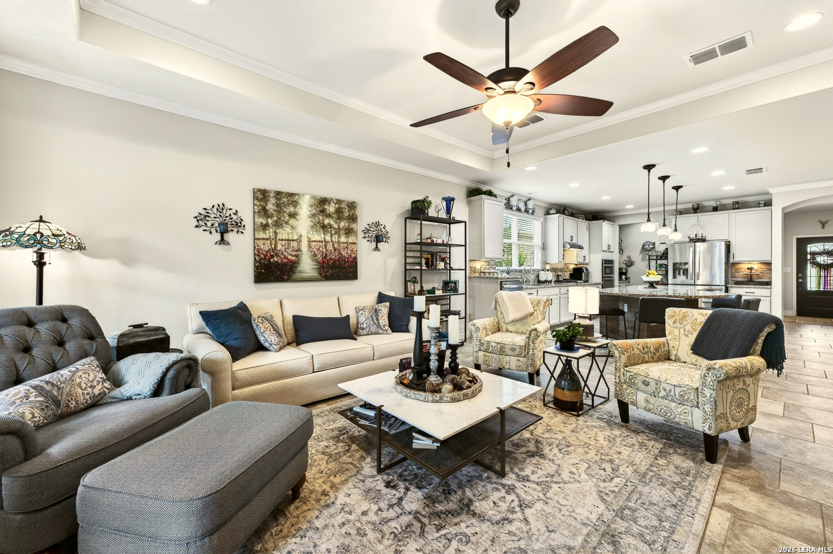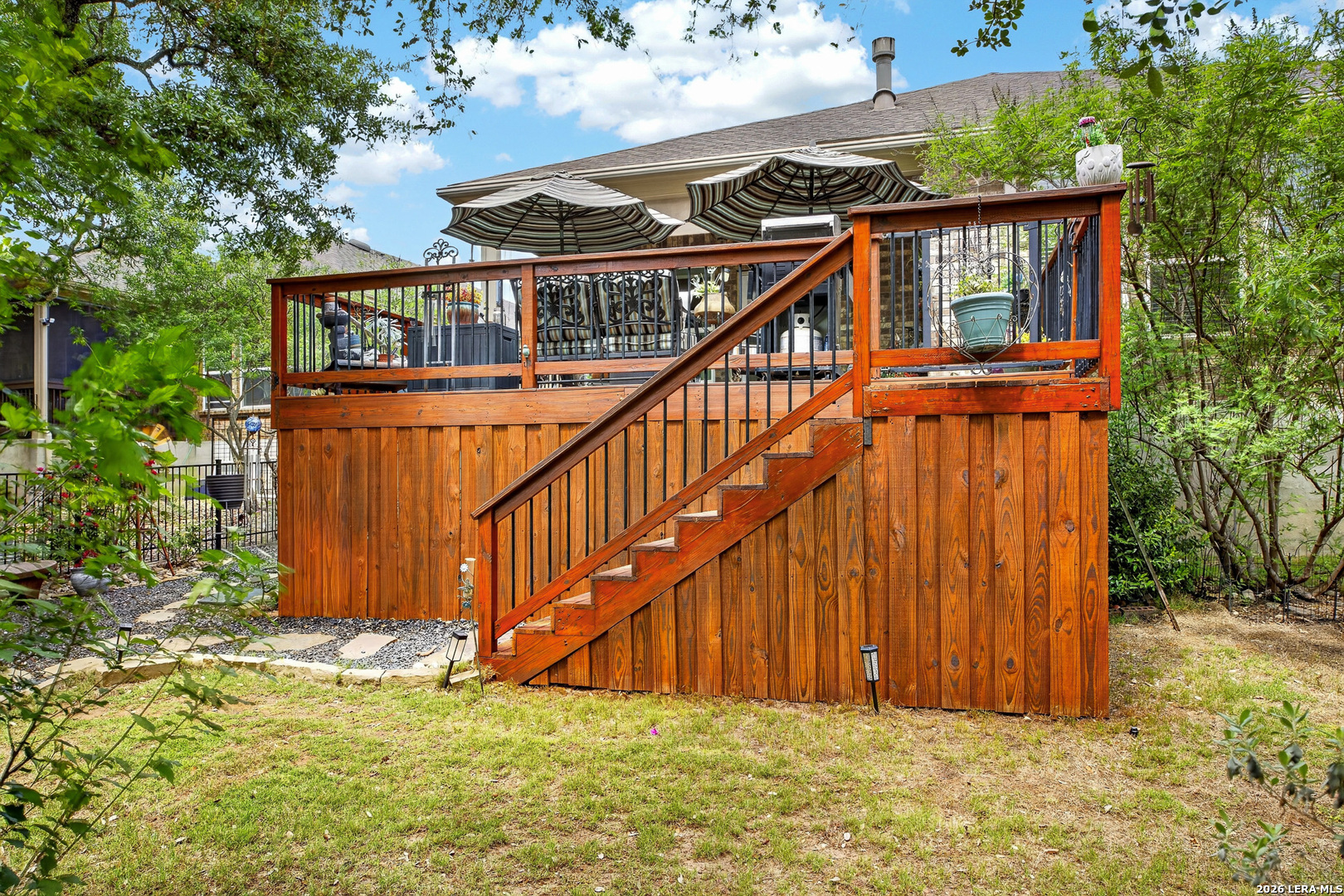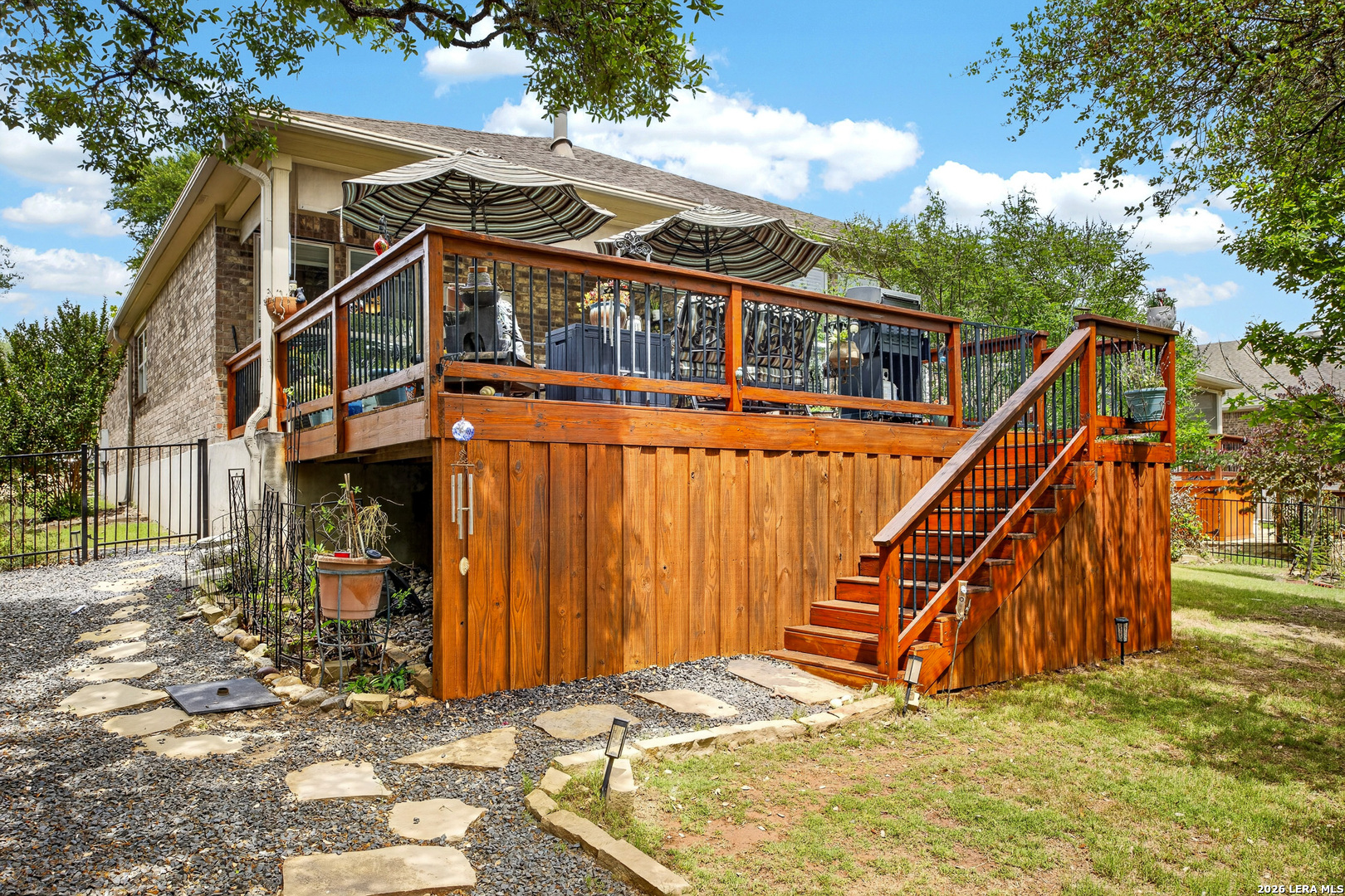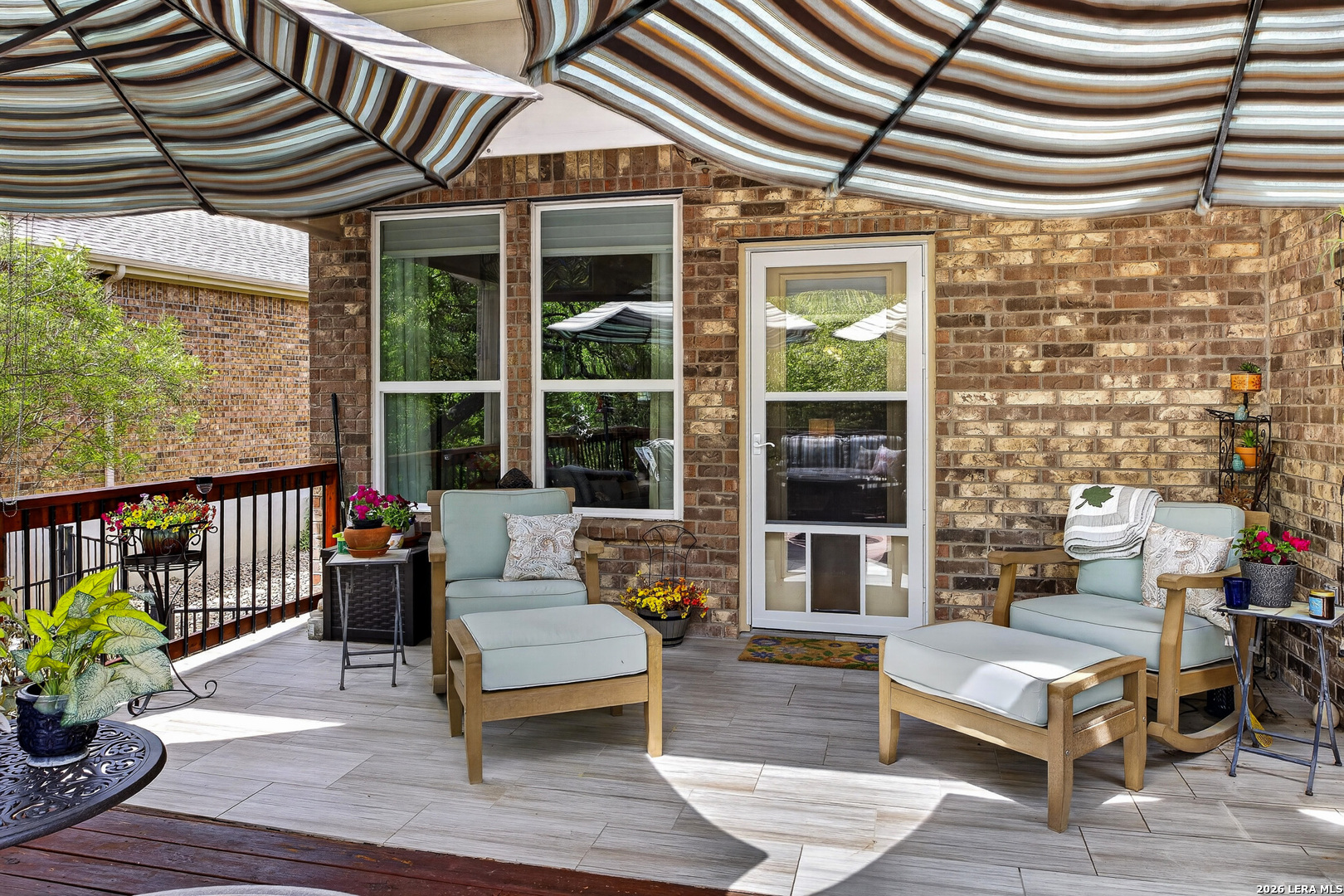 Exceptional upgrades and features are included in this home that sits on a beautiful greenbelt lot that backs onto a walking trail with easy access to the resort. The completely landscaped property features a large deck off the covered patio, as well as a covered front porch. The home boasts a stacked rock fireplace with gas insert, tile floors throughout (except for the bedrooms which have Oak wood flooring), and tile on the front and back porches, as well as tile surrounding the large kitchen island. Stainless steel built-in appliances, refinished cabinets, soft-close drawers, and custom pullouts are featured in the kitchen & separate coffee bar area. Gorgeous custom built-ins in the study include 4 file cabinets and adjustable shelves, and soft close built-in doors. Even the guest bath has been updated. The interior has been recently painted. No maintenance Leaf Guard gutters, and the property has iron fencing with three gates. Enjoy the amazing amenities in this resort-style community with amenities galore.