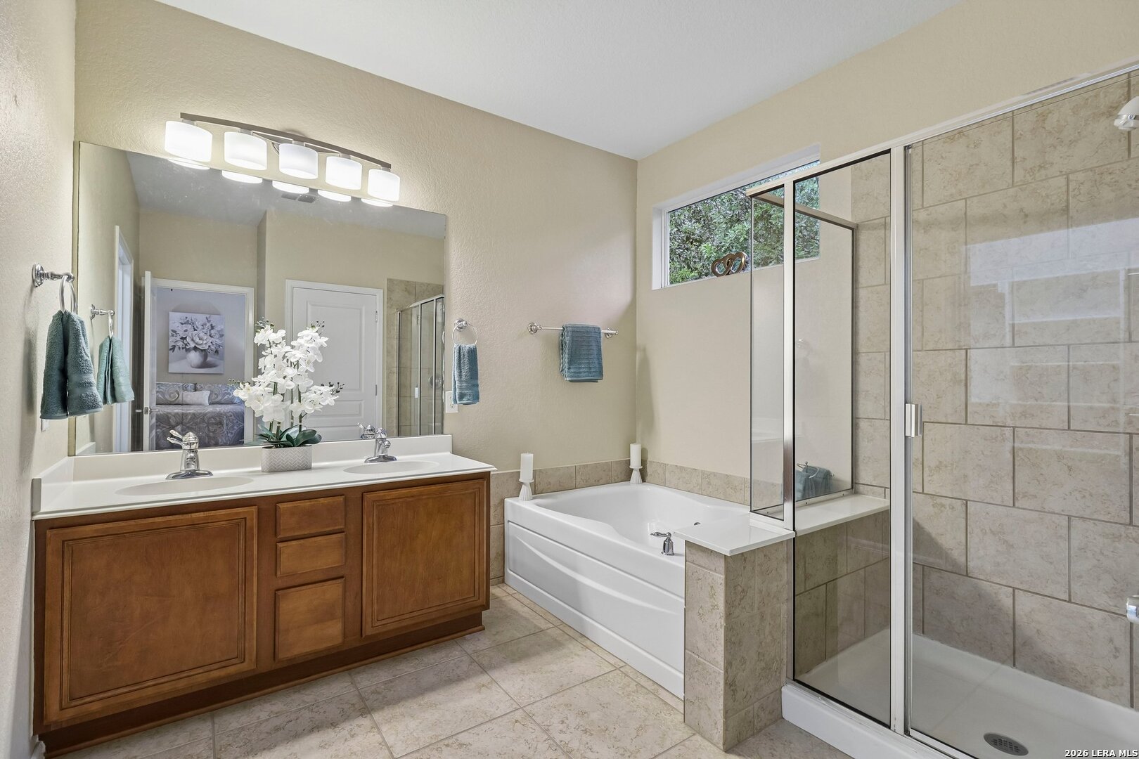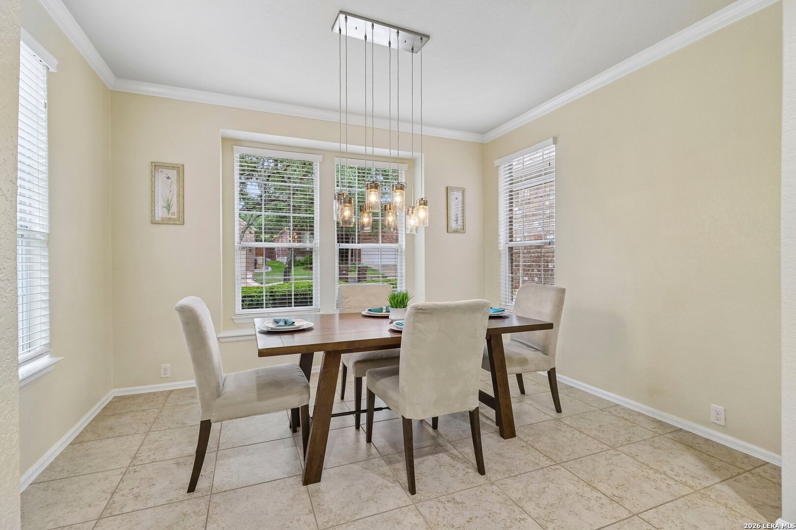 *Open House: Saturday, April 25th | 1pm-4pm* Imagine living somewhere that makes everyday effortless. Morning coffee runs, quick trips to H-E-B, dinner out, or a Target stop are all just minutes away. With easy access to 1604, and 151 only a few intersections away, and schools within walking distance, getting around the city is easy while still enjoying the comfort of a neighborhood tucked into the heart of Alamo Ranch. Not to mention the relief of avoiding the far West Side traffic just to get in and out! Better yet, the community itself invites you outside. The neighborhood amenities are just a short walk away and include a sparkling pool, waterslide, splash pad, playground, soccer field, and basketball court. Weekends can be spent meeting neighbors at the park, watching kids play, or simply enjoying everything the neighborhood has to offer without ever needing to leave. Imagine starting your morning with coffee on the covered patio, the quiet greenbelt behind you and mature trees swaying overhead. In the evening, the same space becomes the perfect place to unwind after a long day while the Texas sun fades through the trees. When you arrive at the home, you instantly feel welcomed. Mature trees and thoughtfully maintained landscaping frame the front yard, while the combination of brick and stone masonry gives the exterior timeless curb appeal. The vibrant red front door adds a warm pop of color that immediately draws you in. Step inside and the foyer creates a natural drop zone for everyday life before opening into a spacious living area where crown molding and vinyl plank flooring add a touch of elegance. It's the kind of space that easily shifts from quiet evenings at home to gathering with friends and family. Natural light fills the room while ceiling fans throughout the home help keep things comfortable during warm Texas afternoons. The kitchen sits at the heart of it all, connected to both the living and dining spaces so no one feels tucked away while cooking. Stainless steel appliances, a decorative tile backsplash, ample cabinet space, and a large island make everyday meals easy, while the breakfast bar becomes the perfect place for morning coffee, quick breakfasts, or catching up at the end of the day. Tucked privately at the rear of the home, the primary suite offers a peaceful retreat. Raised ceilings and a wall of windows overlooking the backyard allow natural light to pour in, creating a bright and calming space. The ensuite bath features dual sinks, a soaking tub, a separate glass-enclosed shower, and a spacious walk-in closet. Down a separate hallway, three additional bedrooms offer flexibility for guests, family members, or a home office, while multiple hallway closets provide excellent storage throughout the home. Out back, the covered patio and greenbelt backdrop create a sense of privacy that's hard to find, making the backyard a peaceful extension of the home. It is the kind of home where the location makes life easier, weekends feel a little more relaxed, and memories are waiting to be made.