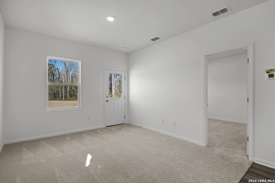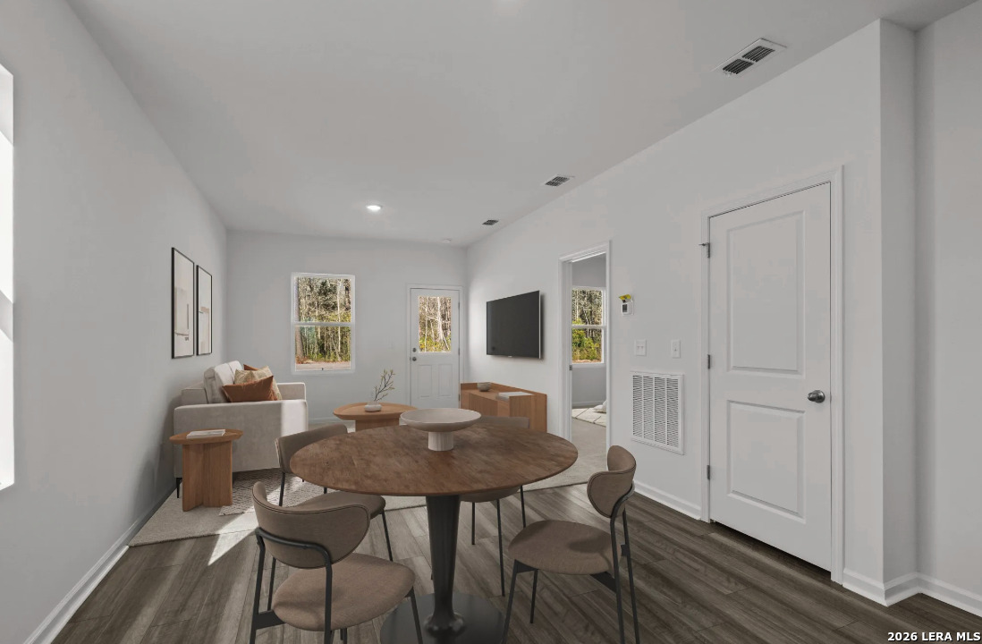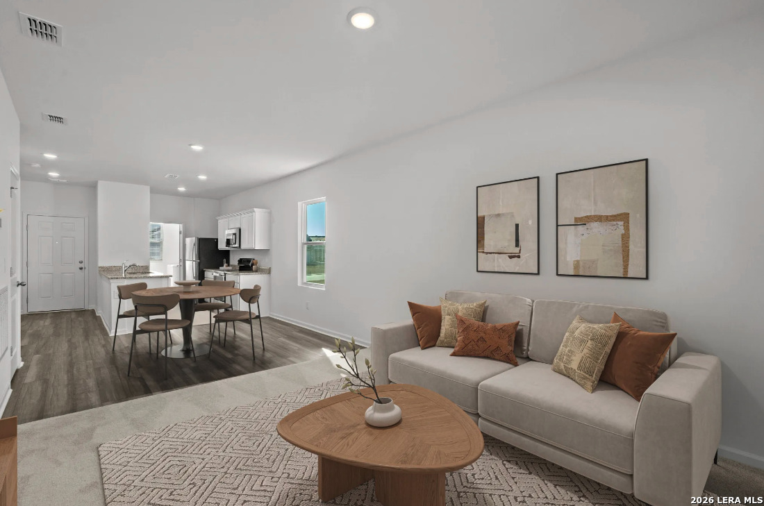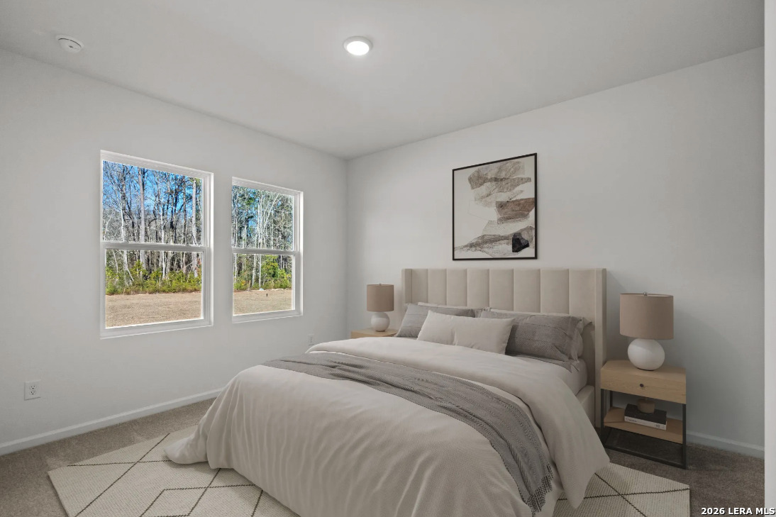 Located in Sutton Farms conveniently located 20 minutes from downtown San Antonio this community offers green space and parks for the family. Discover the elegance and comfort of the Alps floor plan by Starlight Homes. This thoughtfully designed layout features 2 spacious bedrooms and 2 bathrooms, all on one story and 968 square feet. The open-concept living area seamlessly blends the kitchen, dining, and living spaces, creating an inviting atmosphere for entertaining and everyday living. The gourmet kitchen boasts stainless steel appliances, ample granite counter space, and a convenient breakfast bar/island. The private primary suite offers a relaxing retreat with a luxurious en-suite bathroom and a generous walk-in closet. Additional highlights include energy-efficient features and stylish finishes throughout. Experience the perfect blend of style, comfort, and functionality in this beautifully designed home.