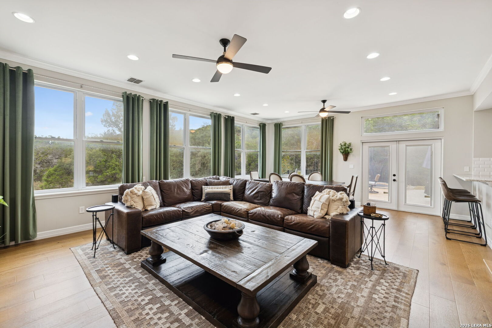 Two homes. Endless opportunity. Set on 7.55 unrestricted acres, this Hill Country property isn't just a place to live-it's a platform for what comes next. With two septic systems and three power poles already in place, the groundwork is set for expansion: additional dwellings, rental cabins, or even a boutique Hill Country venue or commercial-style retreat, all while keeping privacy intact. The renovated guest cabin is front and center in the lifestyle-and income-story. Perfect for multigenerational living, hosting, or immediate rental use, it's fully independent and ready to perform. Two winding wet-weather creeks add natural beauty and separation across the land, creating a setting that feels intentional, private, and versatile. The main home, remodeled in 2022, balances warmth and function with light-filled living spaces, a stone fireplace, and a kitchen built to handle crowds-massive granite island, custom cabinetry, soft-close drawers, and updated appliances. Outside, the deck and plunge pool set the scene for relaxed mornings and starlit gatherings. The guest cabin stands on its own with a full kitchen, en suite bedroom, covered porch, fresh roof, and attached carport-charming, efficient, and income-ready. Add in a private well with cistern, new HVAC (2025), automatic gate, multiple covered parking areas, and a location minutes from Canyon Lake Dam and Guadalupe River access, and you've got a rare blend of lifestyle and commercial potential. Unrestricted land with this level of infrastructure doesn't come around often. This one is ready to work.