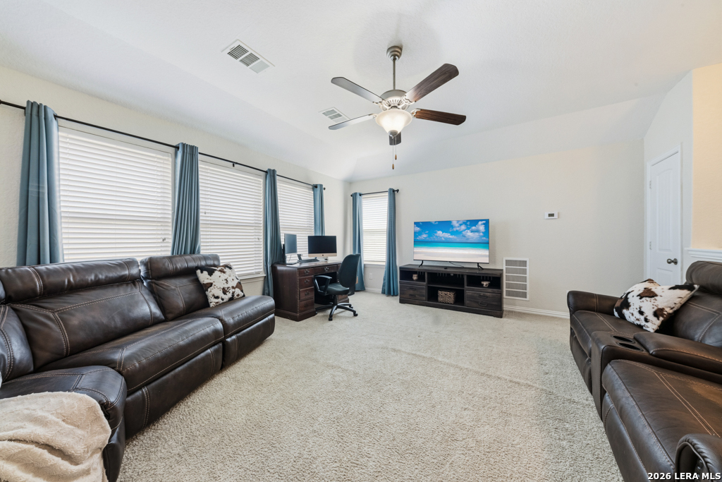 Homes like this don't come up often in this New Braunfels neighborhood. This 4-bedroom, 2.5 bath home features a rare three-car garage and no back neighbors. Located in a smaller, quieter neighborhood with close access to I-35, commuting to San Antonio, Austin, or surrounding areas is easier. Inside, the home features an easy-flowing layout with multiple living areas, including a separate dining room and a large upstairs loft that you can use as a game room, second living space, or home office. The kitchen opens to the main living area and breakfast space, with natural light pouring in from the backyard. The primary bedroom includes a private bathroom with dual vanities, garden tub, a separate shower, and a spacious walk-in closet. Step outside to the backyard, which offers plenty of room for kids, pets, or outdoor gatherings. A well-kept home with space to spread out and features that are hard to find in this neighborhood.