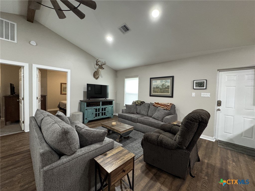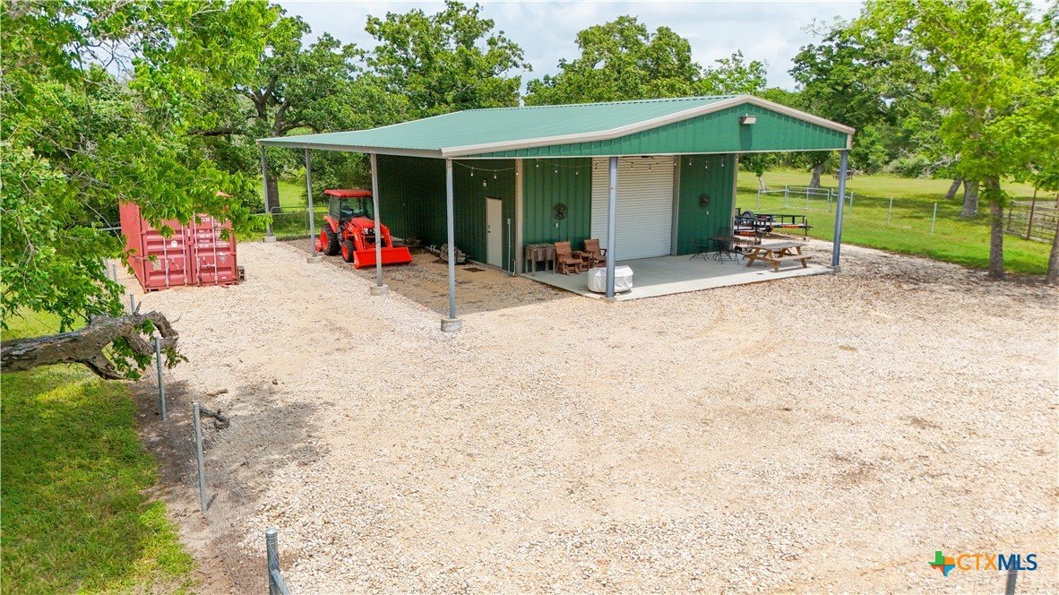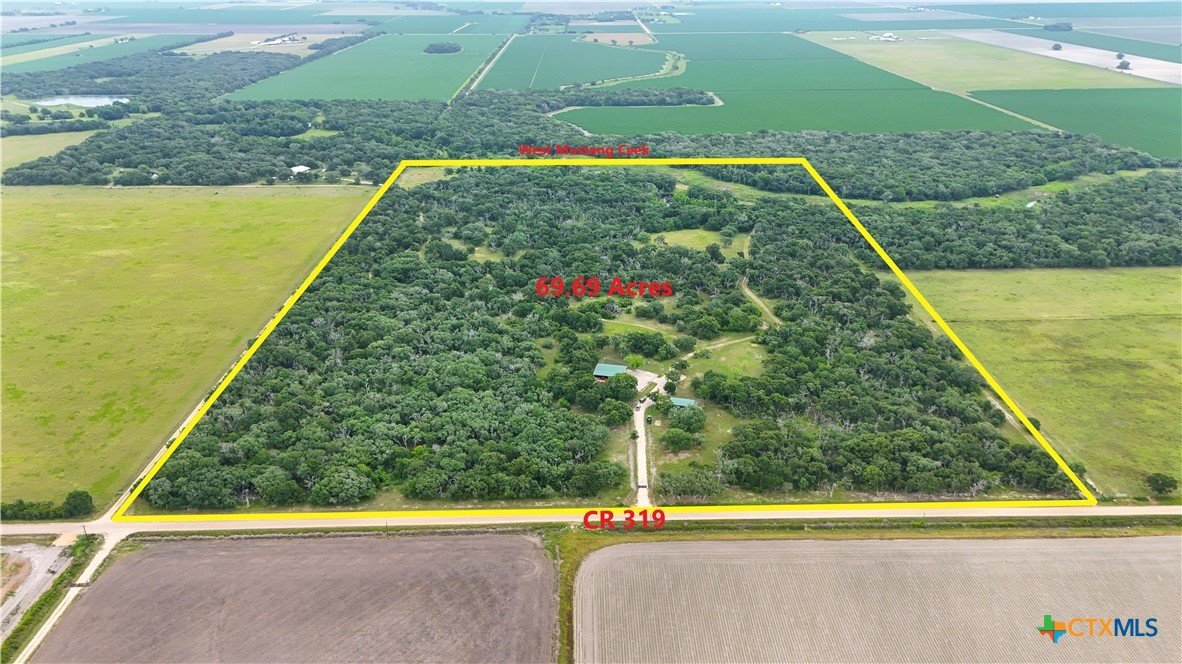Welcome to your dream Texas ranch! Nestled on 69.69 picturesque acres, this exceptional property offers Mustang Creek frontage and easy access, creating a perfect blend of beauty, privacy & functionality. Majestic oak trees & variety of native trees/brush blanket the landscape, providing shade, scenic views, and a thriving habitat for wildlife. Good perimeter fencing & an automatic entrance gate leading you into the heart of the property. 1,200 sq ft insulated shop w/lean-to, covered apron, & limestone drive & parking area is ready for your equipment, hobbies, or storage needs. Charming 2-bed/1bath barndominium, perfect for a weekend getaway, hunting retreat, or future homestead. For the outdoorsman, this property is a true paradise with hunting opportunities for white-tailed deer, turkey, quail, and dove. Property also benefits from an agricultural exemption, keeping property taxes low. Includes appliances, furnishings, tractor, side by side, & trailer.