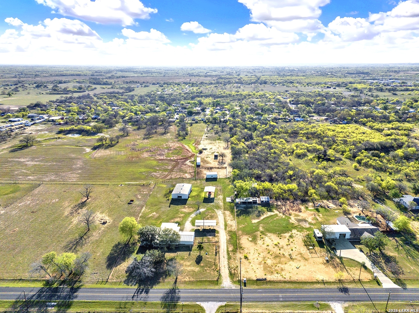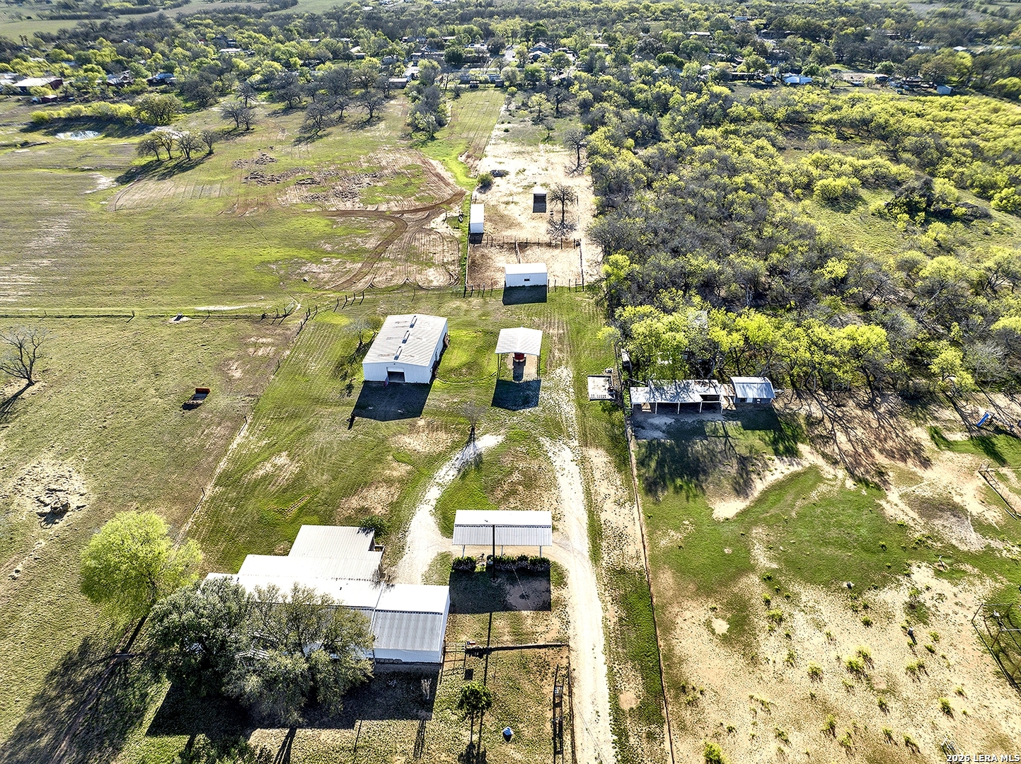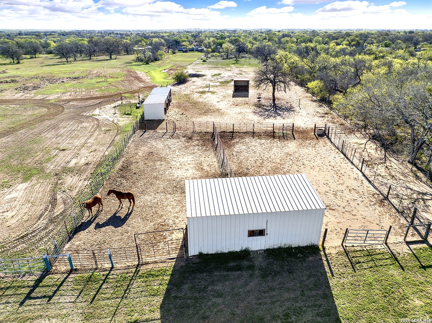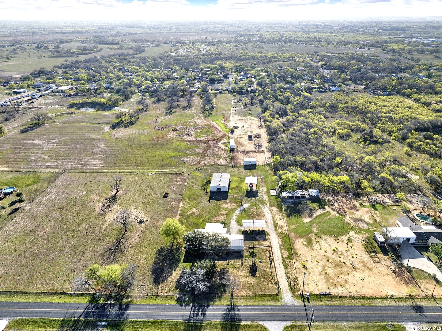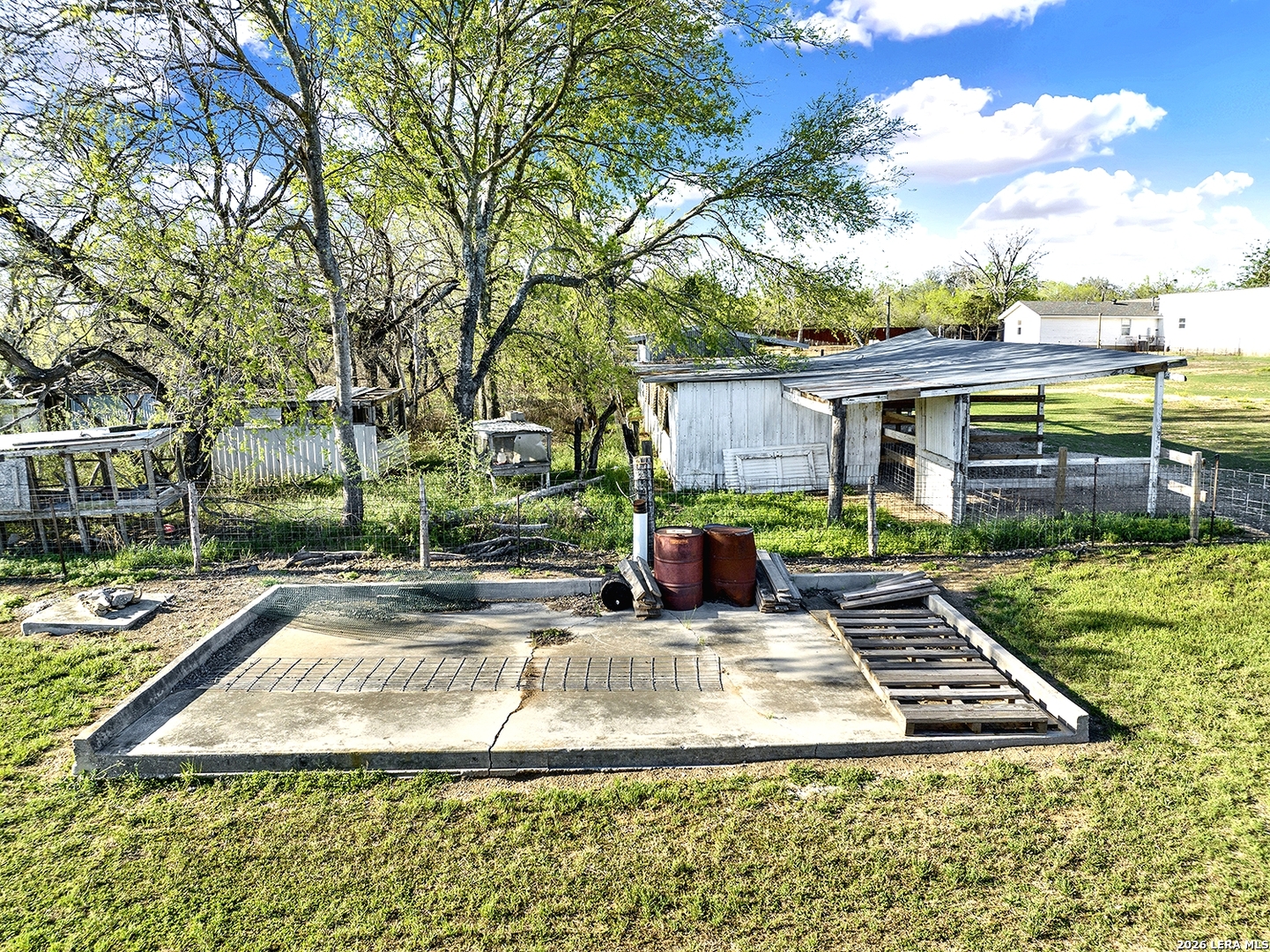 NO RESTRICTIONS, NO CITY TAXES, NO FLOOD PLAIN, OUTSIDE CITY LIMITS IN BEXAR COUNTY: This 4.49 acre property in Adkins, TX is already set up for Residential, Commercial, or Mixed use. No restrictions means YES to manufactured homes, RVs, barndominiums, container homes, custom dream homes. YES to multiple homes. YES to a business or business + home. YES to chickens, goats, horses, livestock. The property is fenced and gated, with 2 electric meters, water, gas, 2 septics, and fiber internet. This property offers a nearly 2300 Square Foot Barn on slab with power, water, and rollup doors at either end (set up with 5 stalls, feed room, bathroom plumbing), 2 Turnouts, a 4-Stall Loafing Shed, Hay/Equipment Shed, 2-Stall Barn, and Back Pasture. There is a Carport by the barn, and a 2-car Carport on the Circle Drive. There's an additional Slab with power and water next to it. There is also an 1848 Square Foot 3 bedroom, 2 bath Manufactured Home needing TLC, with fenced front yard, 2-car Carport and 900 SF Covered Deck overlooking the back of the property and expansive country views. This property is very close to Loop 1604 and Hwy 87, providing a smart opportunity to be very near the explosion of growth around the area without being in the middle of it- or paying the higher price. PROPERTY IS BEING SOLD AS-IS, CASH ONLY.