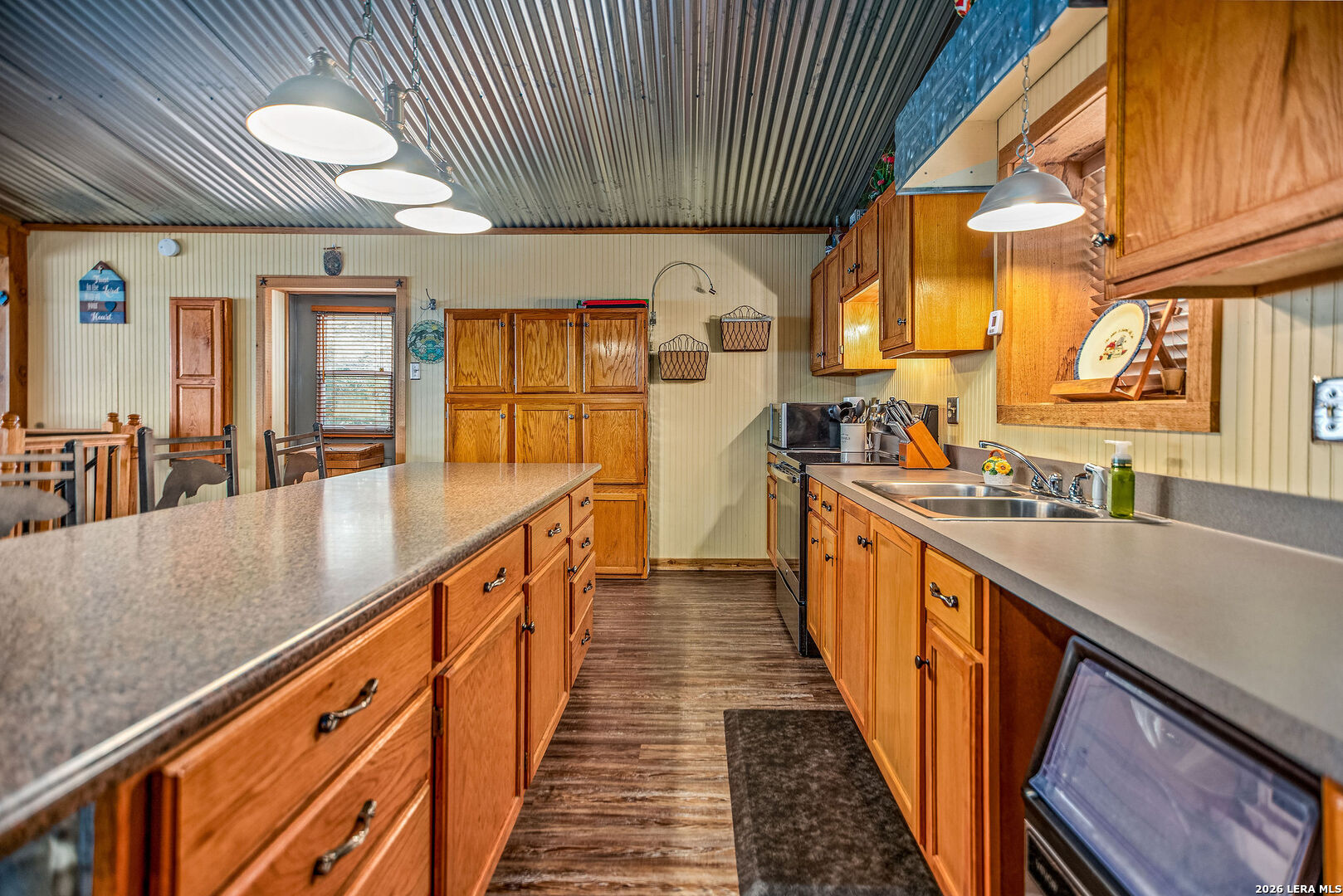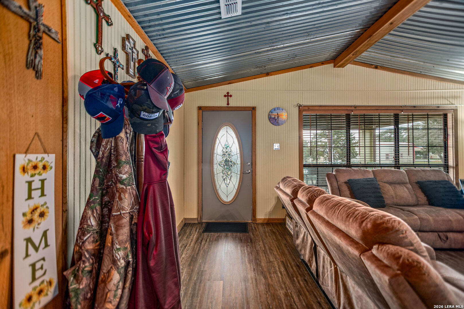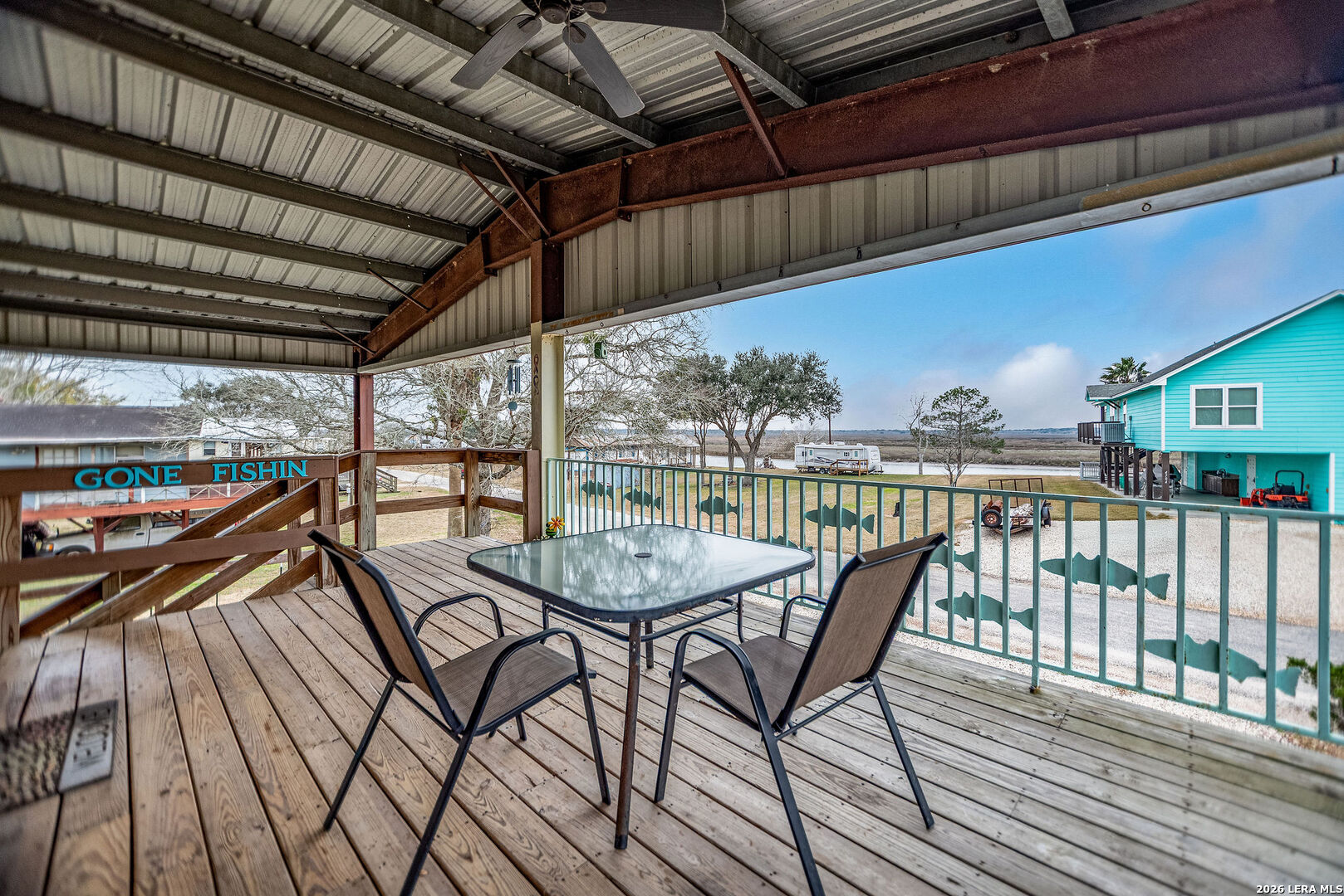 Fish, boat, relax, Stay! Your private Garcitas Creek getaway or full time paradise awaits! Enjoy coastal living in Industrial ISD within a private waterfront community featuring a boat ramp and pier on Garcitas Creek with direct access to Lavaca Bay. This well-maintained barndominium offers water views from the front deck and a flexible layout ideal for weekend escapes or full-time living. Designed with dual primary bedroom potential, the home includes a bedroom and bath on each level, plus a flex space on the main floor perfect for a third bedroom, or game room. A spiral staircase leads to the upstairs open-concept living, kitchen, and dining area, highlighted by rustic and beach-inspired finishes and an open, airy feel. Outside features include an oversized tandem carport for vehicles, a boat, or entertaining, Plenty of storage including two Morgan storage buildings (one climate controlled), and a fenced side yard for pets. A thoughtful, efficient design keeps the space bright, functional, and easy to enjoy, perfect for laid-back coastal living!