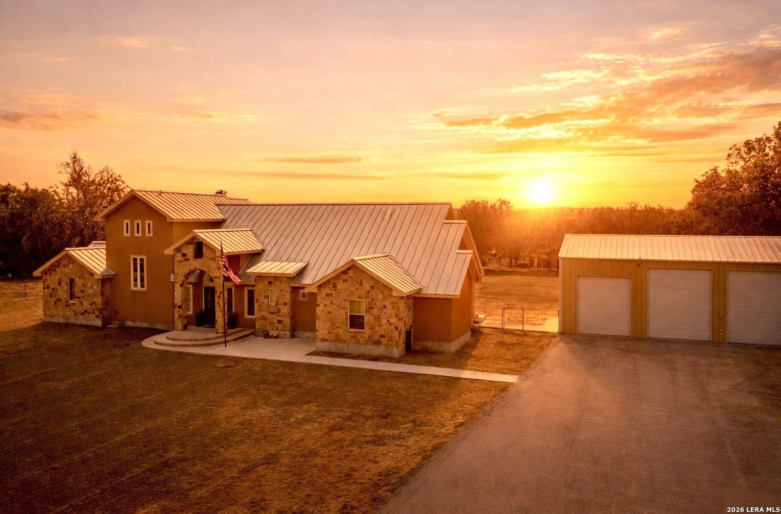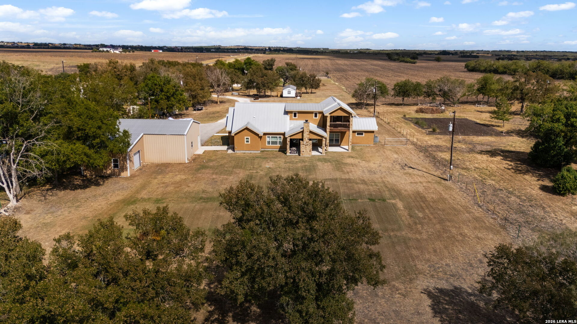 Texas Space, Views & Versatility on 2.44 Acres- If you have been looking for a property that truly does it all then stop compromising and just say "Welcome Home"! Set on 2.44 full fenced peaceful acres, this stunning Texas retreat offers room to live, work, host, and breathe. The primary residence features 4 spacious bedrooms,3.5 Baths, and jaw dropping countryside views that remind you why you chose country living in the first place. The kitchen is truly the heart of this home - a place where families gather, stories are shared, and memories are made. With custom solid-wood cabinetry, generous workspace and a walk-in pantry built for real life, it's ideal for everything from everyday meals to holiday celebrations. The primary suite being on the main floor offers amazing convenience and retreat like comfort, while upstairs you can find an amazing game/living and private bedroom with full bath that opens to a private balcony that overlooks the rolling countryside. But wait. . . .it gets better. Did I mention the fully independent 1 bedroom/1 bath residence (approx. 640 sq. ft) complete with full kitchen, laundry, and separate meter making it ideal for in-laws, long-term guests or even rental income? Need even more? How about the 5 car detached dream garage with concrete floors, its own bathroom, three oversized doors, soaring ceiling and a 30-am RV hookup! This isn't just a home - it is a lifestyle and an opportunity to let your vision go wild with possibilities. Schedule your private showing today.