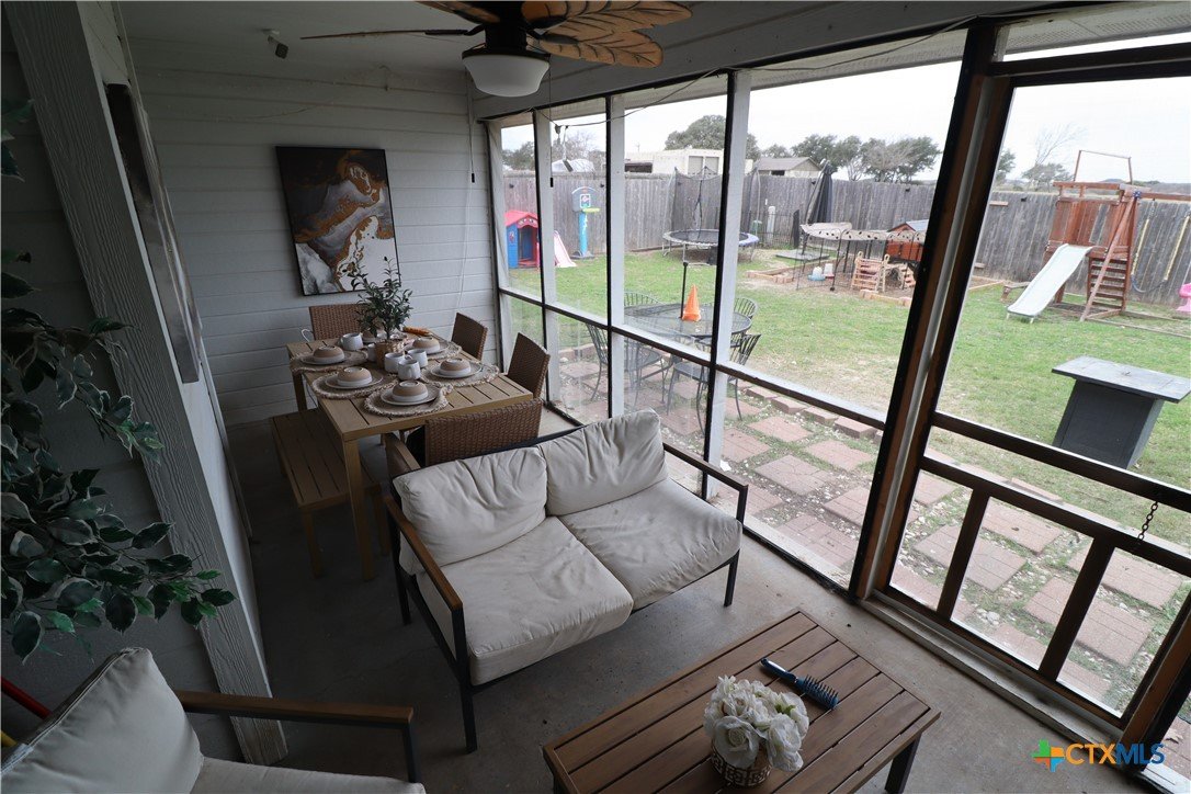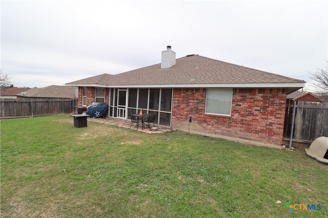 Solid brick 4-bedrooms/2 full bathroom contemporary single-family home. Stainless Steel kitchen appliances, tiled backsplash, a trey ceiling, master bath has a garden tub , a separate shower, double vanities, and 2 walk-in closets. Backyard has a chicken coop, wood privacy fence, and enclosed patio with a outdoor ceiling fan. Living has a fireplace for cold winter gatherings. Home has an easy access to Stan Schlueter Loop to Interstate-14 to Interstate-35, or Stan Schlueter Loop to Stagecoach to Hwy195 to Austin or to Fort Hood. Variety of restaurants/workout gyms/churches/social activities, several hospitals and many clinics, and movie theaters.