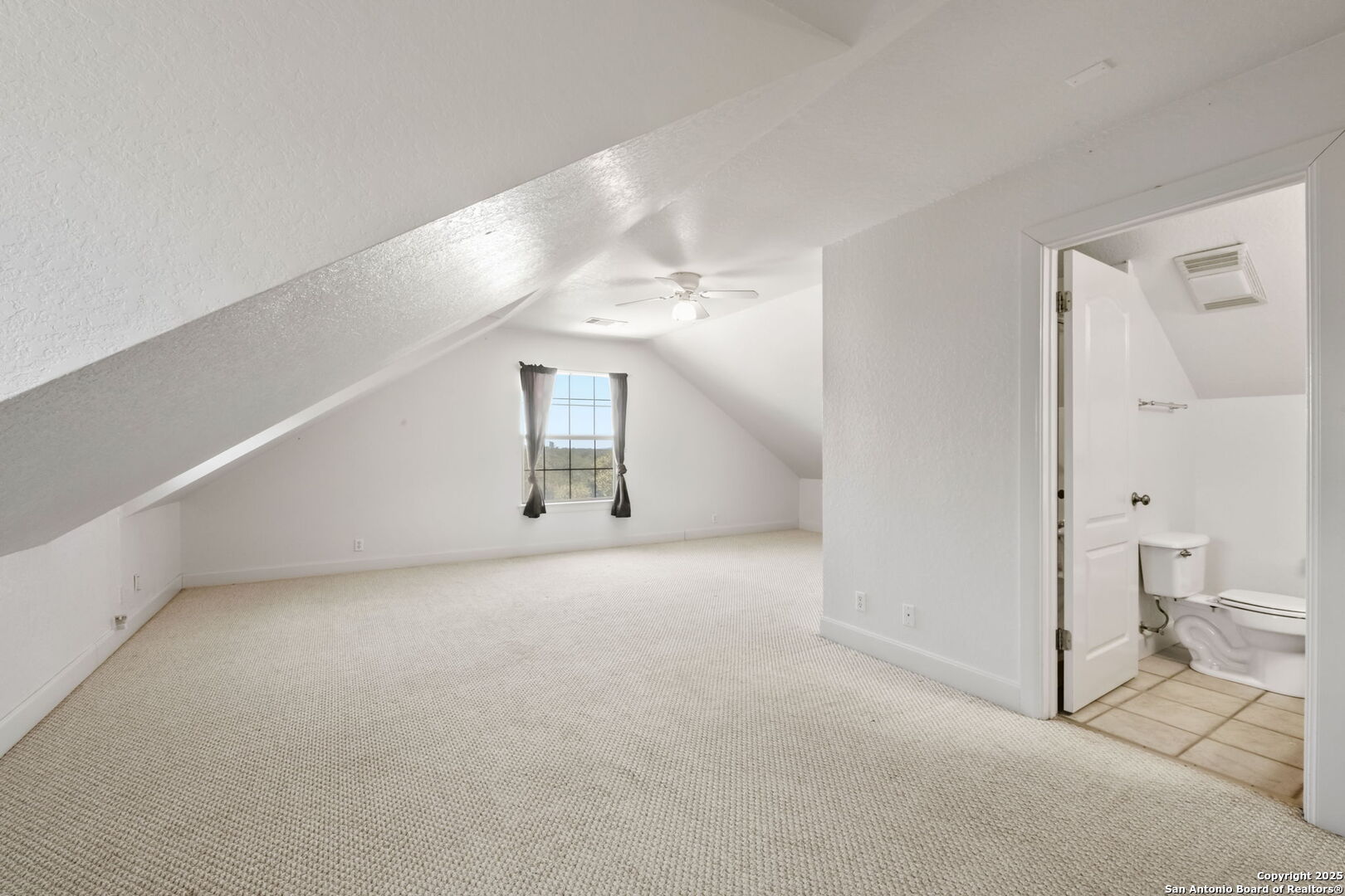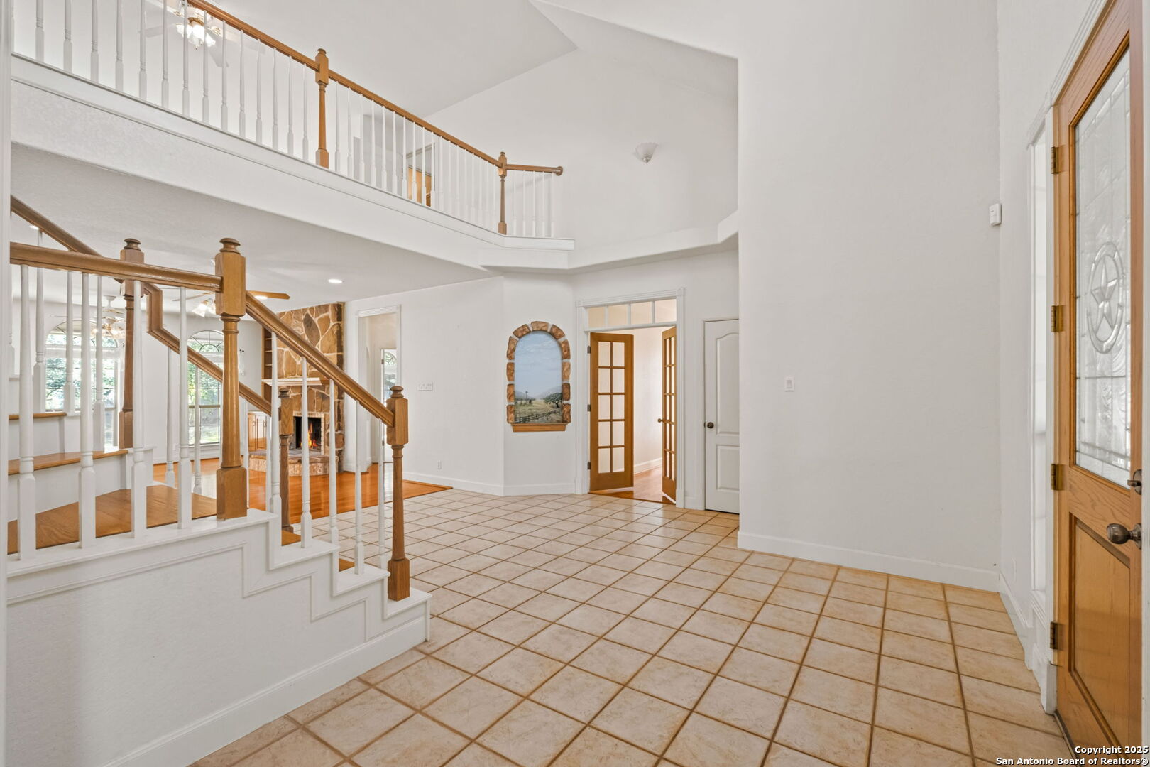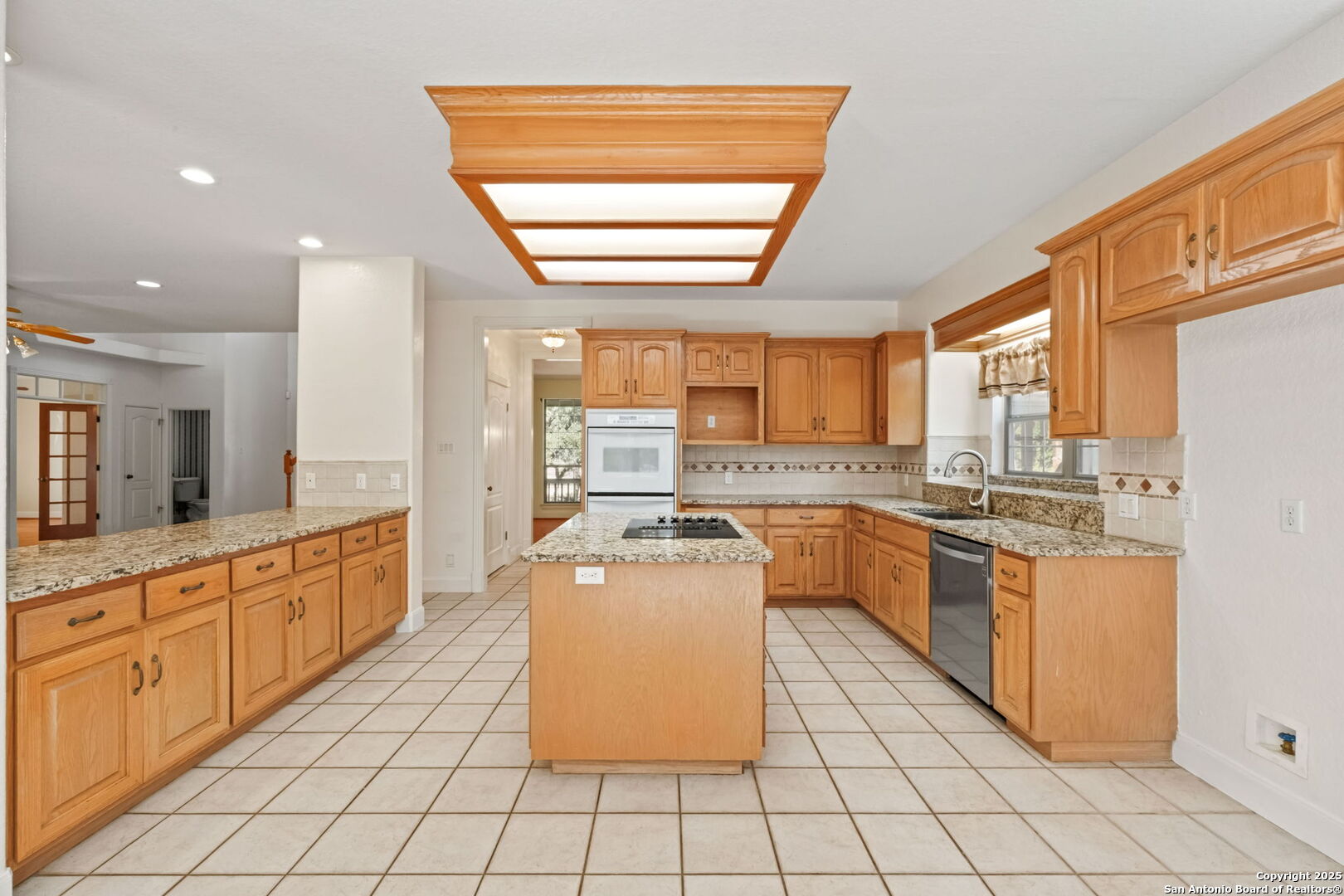 Hill Country Living outside city limits and no mandatory HOA on five beautiful acres of oak studded land. This custom built home offers almost 4000 ft of living space , high ceilings, open floor plan. Main house has 5 spacious bedrooms , 4.5 bathrooms with a loft apartment above the garage with a full bath. There is a large upstairs play area or flex space. Downstairs office with closet or could be used as a secondary bedroom downstairs. Detached shop / garage with another full bathroom and unfinished space above for another living area plumbed and ready to build out. Property is completely fenced , private gate , private well and septic. Rare opportunity. Directly between Fair Oaks Ranch and Bulverde. There is also a barn / covered stall for horses or additional storage.