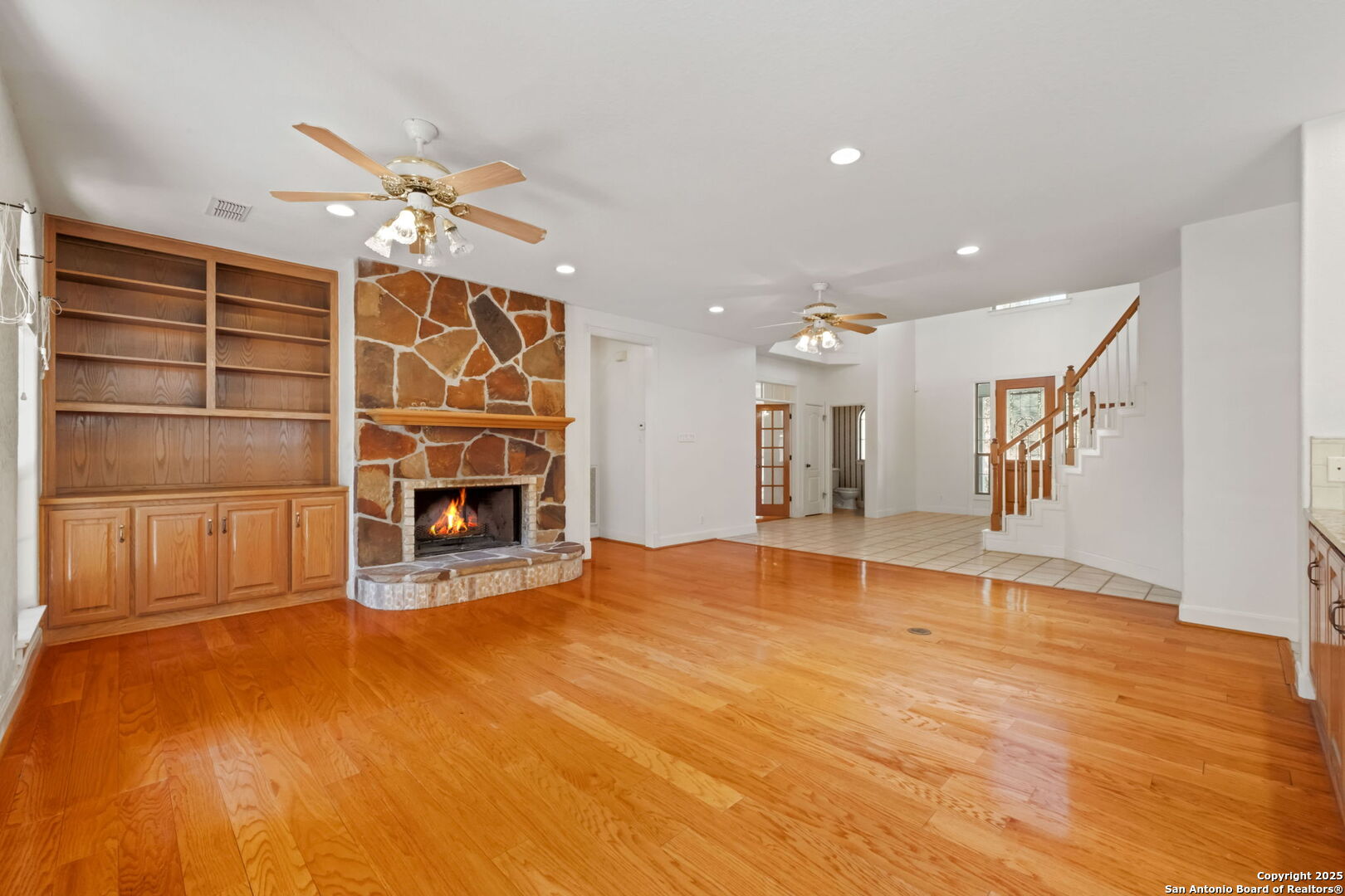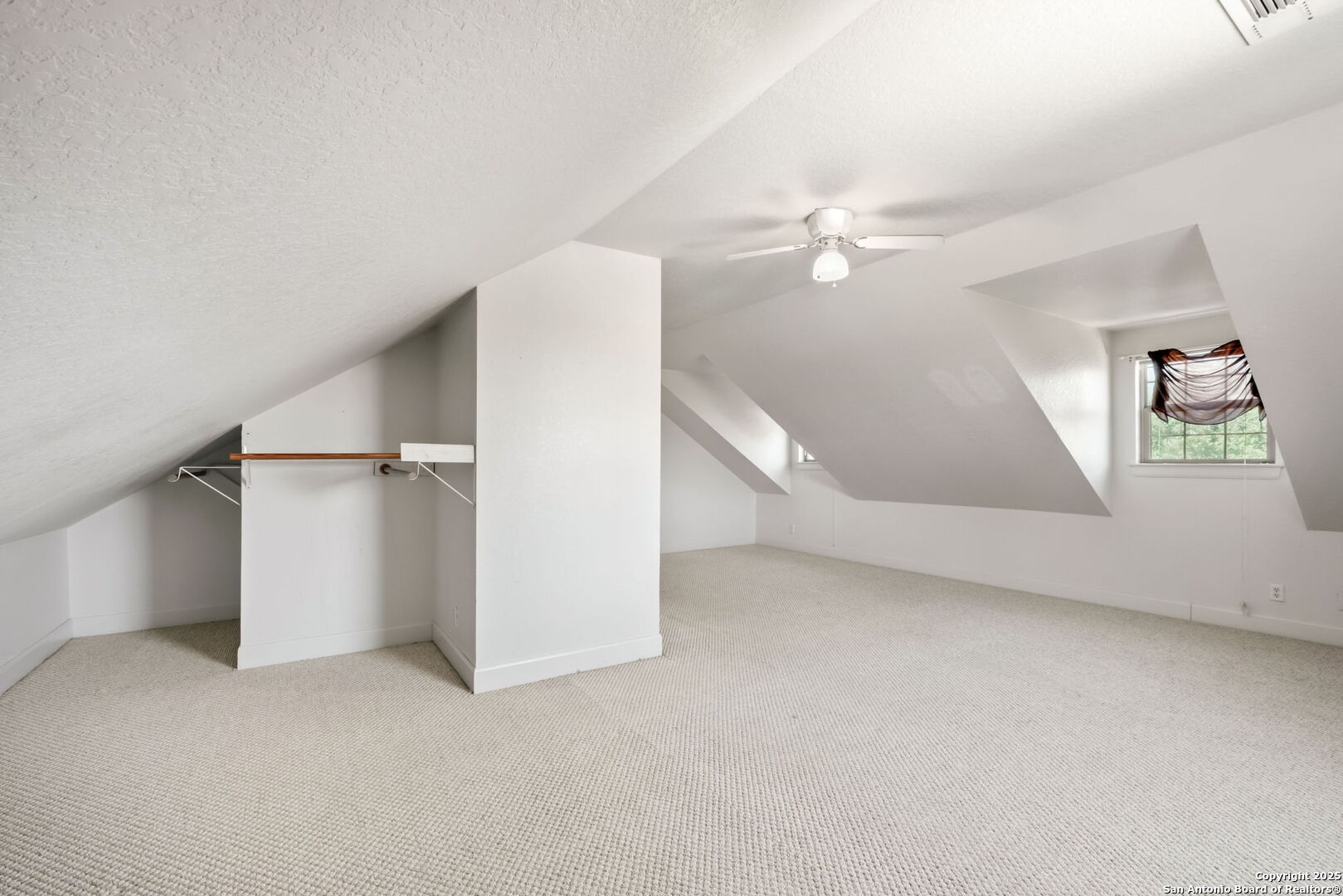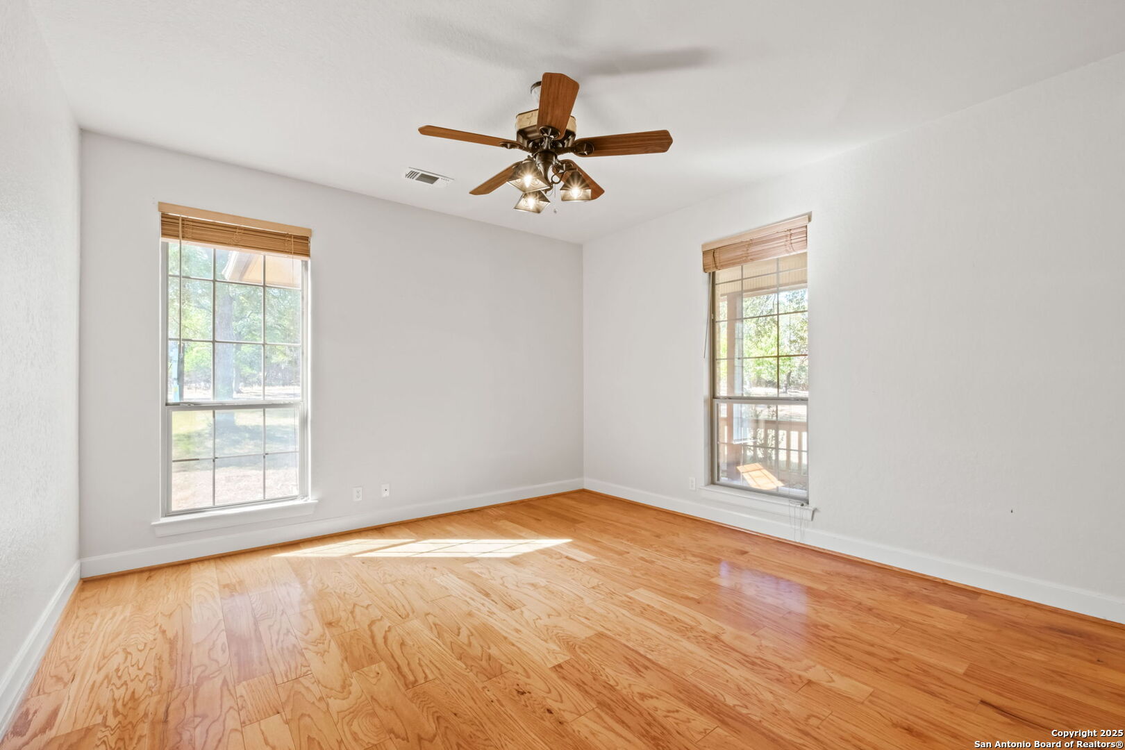 Hill Country Living outside city limits and no mandatory HOA on five beautiful acres of oak studded land. This custom built home offers almost 4000 ft of living space , high ceilings, open floor plan. Main house has 5 spacious bedrooms , 4.5 bathrooms with a loft apartment above the garage with a full bath. There is a large upstairs play area or flex space. Downstairs office with closet or could be used as a secondary bedroom downstairs. Detached shop / garage with another full bathroom and unfinished space above for another living area plumbed and ready to build out. Property is completely fenced , private gate , private well and septic. Rare opportunity. Directly between Fair Oaks Ranch and Bulverde. There is also a barn / covered stall for horses or additional storage.