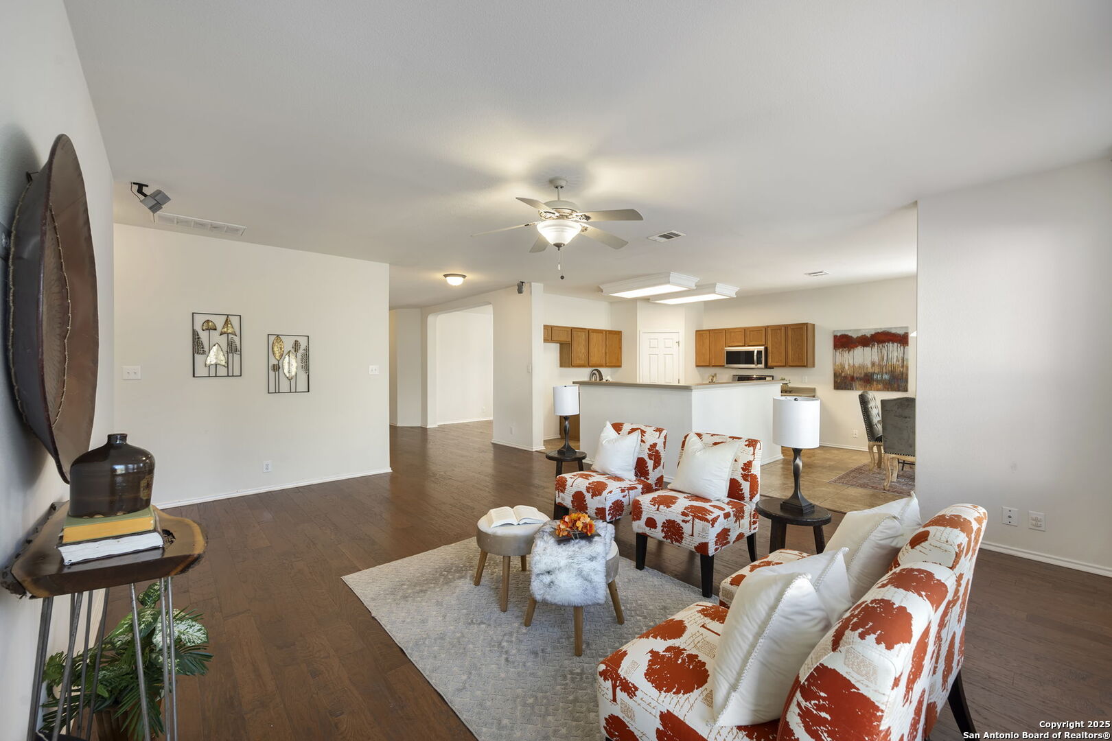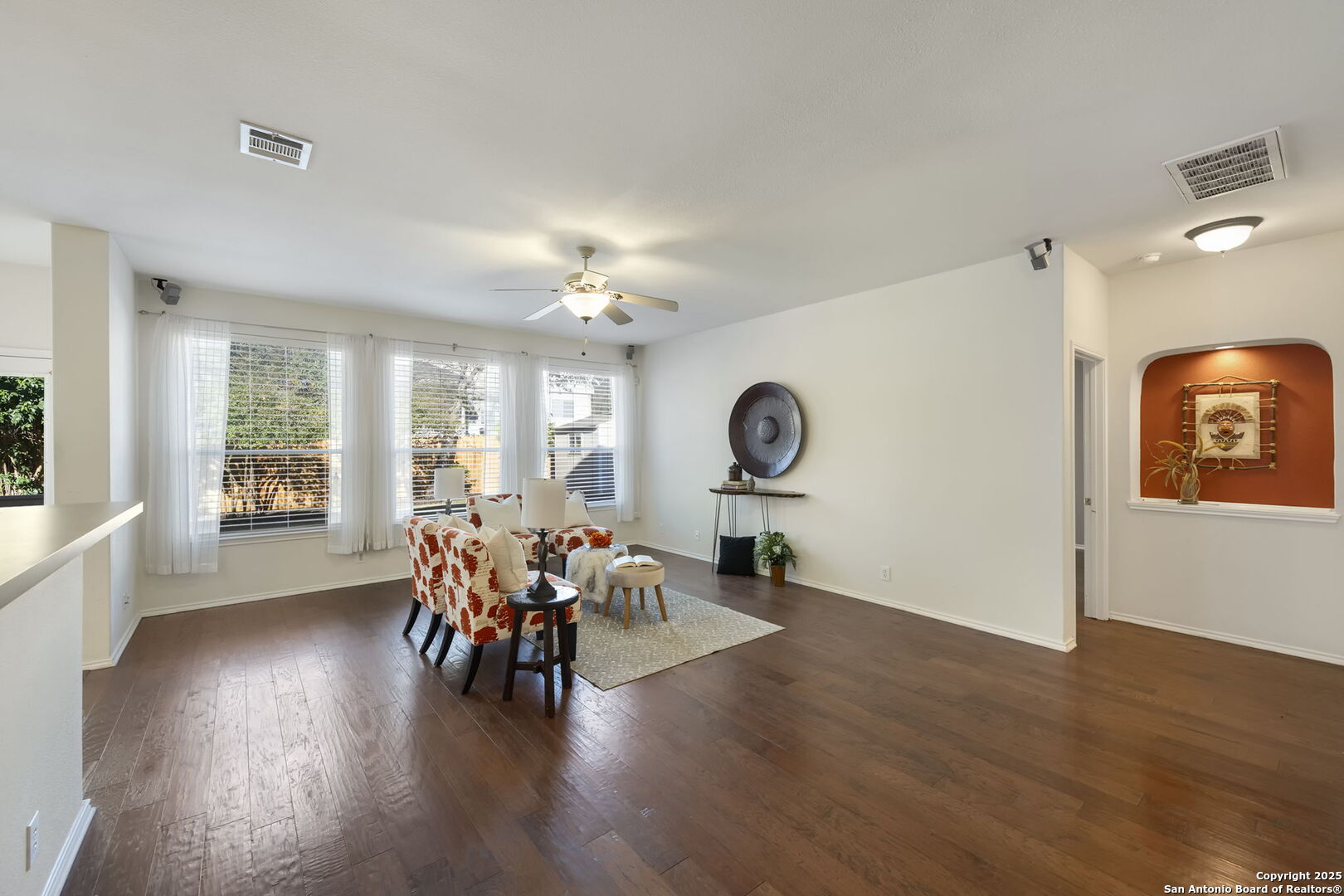 Brand NEW CARPET throughout the upstairs! Primary bedroom, office/ flex space and TWO GUEST BEDROOMS downstairs! You have to see this stunning move in ready home in person! As you step inside, you'll be greeted by an abundance of natural light streaming through the large windows downstairs, creating a warm and inviting atmosphere. The wood flooring throughout the main living areas adds a touch of durability perfect for entertaining and making the house a home! Upstairs you will find a versatile loft/ game room, along with a private bedroom and full bath creating the ideal guest retreat, teen suite, or media room area! The kitchen offers stainless steel appliances, lots of cabinets for plenty of storage and overlooks the living room, allowing you to stay connected with family and guests while preparing meals, so you never miss out on the fun.The spacious primary suite is a true highlight, featuring an ADA-compliant walk-in shower, massive walk in closet, and dual sinks! Step outside to the private backyard, perfect for relaxing or enjoying the spring evenings, with a covered patio, extended concrete area, and a shed for extra storage. Located just minutes from major highways, shopping, and dining this home offers easy access to everything you need. The highly desirable Steubing Ranch neighborhood has so much to offer including a great park with picnic benches, a super fun playground (trust me I went on it), and large neighborhood pool! Don't miss your chance to make this beautiful home yours!