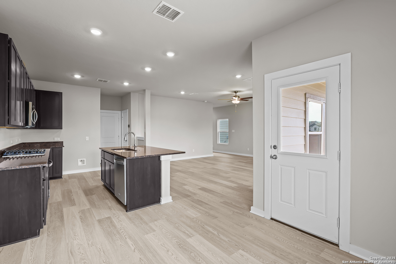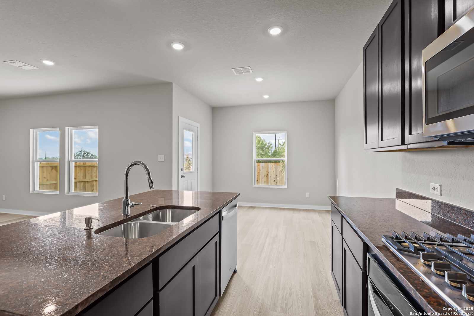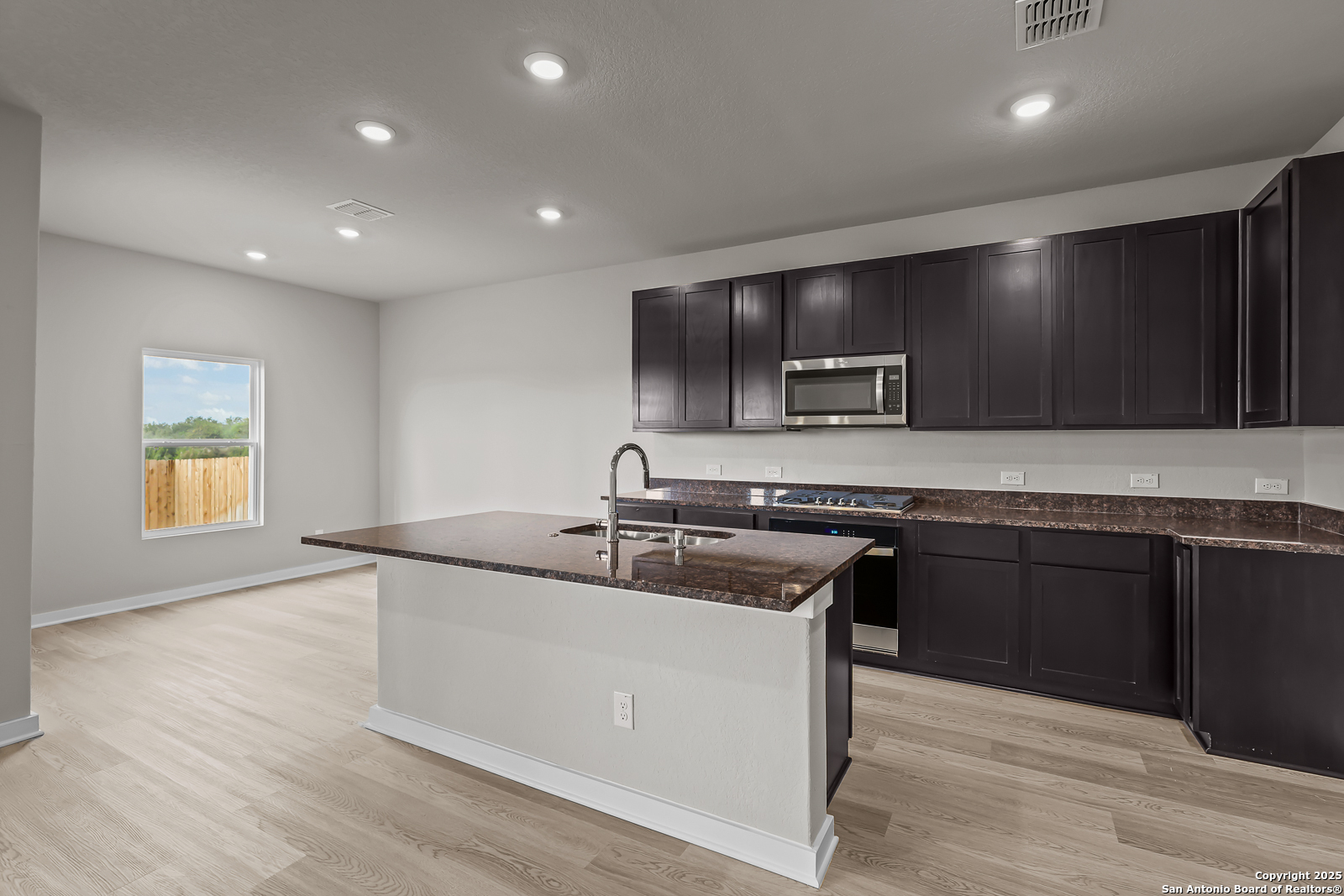 Welcome to the Kerr Plan! This modern two-story home offers 1,647 sq. ft. of thoughtfully designed living space, featuring 3 bedrooms and 2.5 baths in an open and bright layout. You'll love the low-maintenance lifestyle and energy-efficient features this home provides. The kitchen is a standout, showcasing a beautiful island, 42" cabinets, 9-foot ceilings, solid granite countertops, and stainless steel appliances. Enjoy the upstairs game room for relaxation or entertainment, and unwind outside on the covered patio-perfect for the Texas heat. The spacious primary suite includes a large bedroom, a well-appointed bathroom, and a walk-in closet. Situated in a greenbelt lot, this home offers added privacy for families and is close to the community amenity center. Come visit today and discover the charm of this beautiful home in Garden Grove!