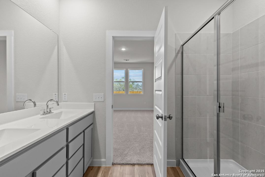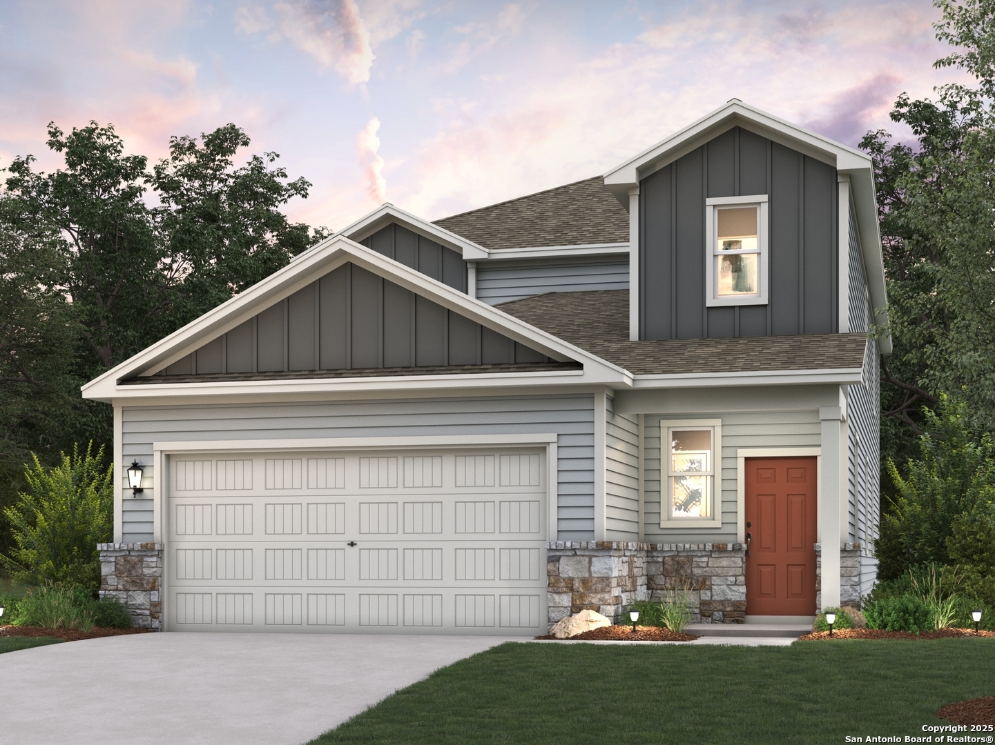 Step into modern design with the Riley floor plan! At the heart of the home is a spacious open-concept great room, which flows into a dining area and an impressive kitchen with a center island, a walk-in pantry, and access to a convenient mud room. The primary suite is also located on the main level, boasting a walk-in closet and a primary bath with dual vanities and a walk-in shower. There are three secondary bedrooms upstairs, each with a walk-in closet. A full bath, storage space, and a large loft round out the Riley. Additional home highlights and upgrades: 36" gray shaker-style kitchen cabinets, quartz countertops and backsplash Stainless-steel appliances Soft water loop upgrade 5 beds ilo large loft area Luxury wood-look vinyl plank flooring in common areas Additional recessed lights throughout home Cultured marble countertops and modern rectangular sinks in bathroom Sprinkler system with landscape package Keyless entry Covered patio Exceptional included features, such as our Century Home Connect smart home package and more!