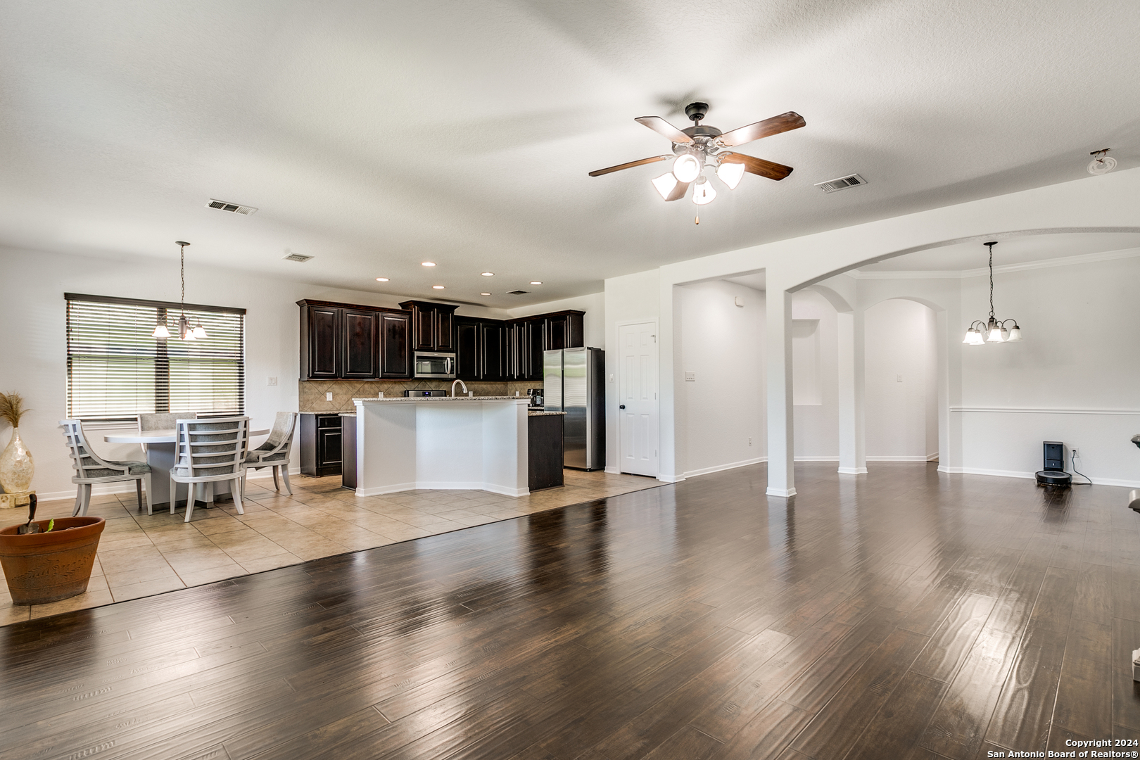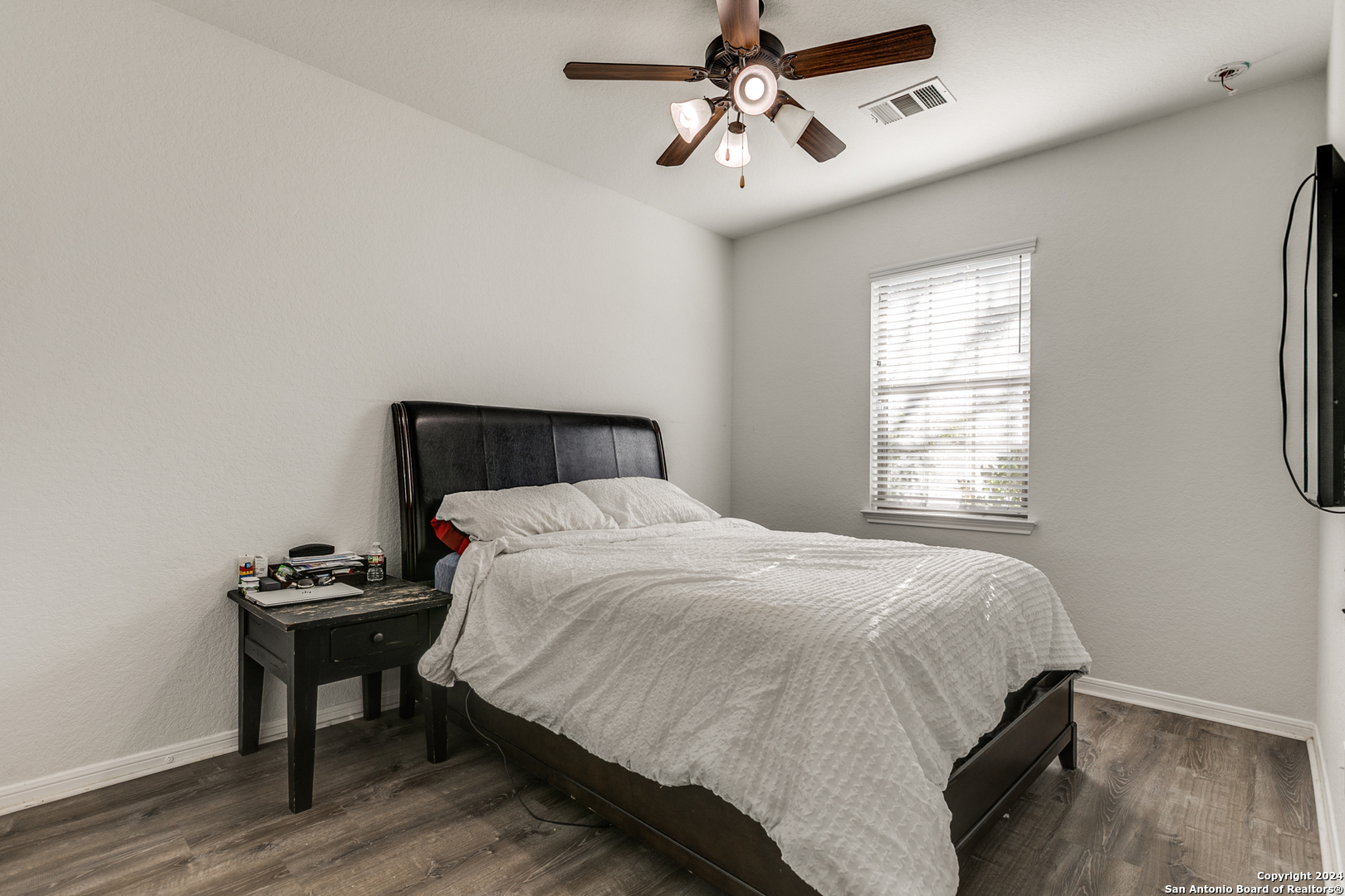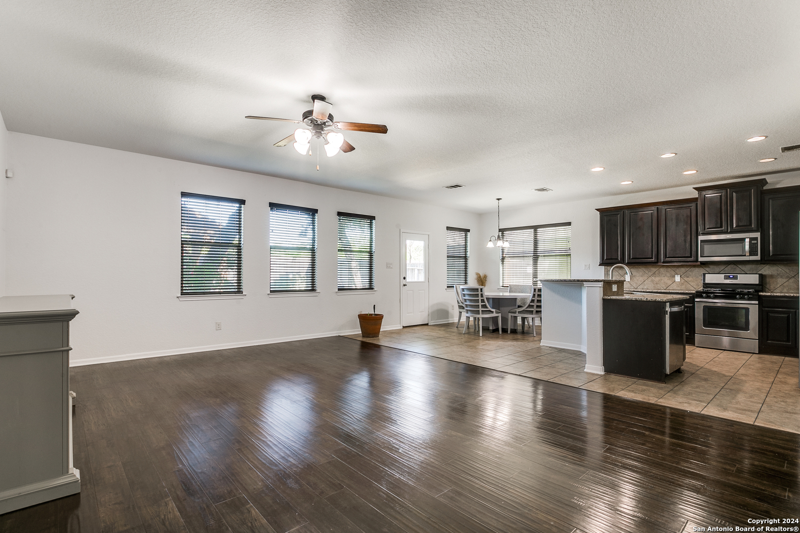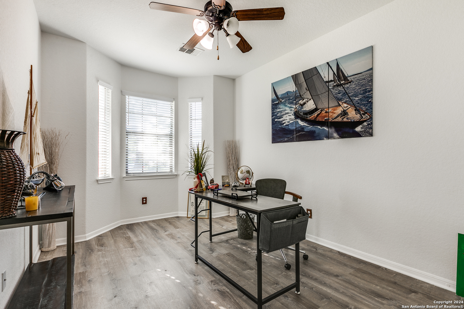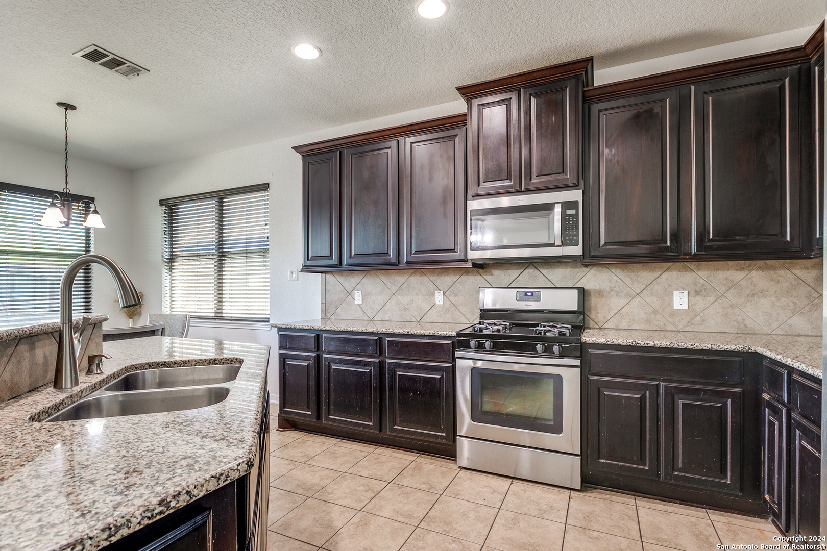 Alamo Ranch great find!! 1.5 story with all 4 bedrooms downstairs, this gorgeous home sits on a Greenbelt Lot! Recent high quality laminate flooring throughout, freshly painted interior. Beautiful kitchen features granite countertops, custom tile backsplash & a breakfast bar. Northside schools and outstanding neighborhood amenities; hiking trails, clubhouse, and pool, located near great shopping, dinning and entertainment!