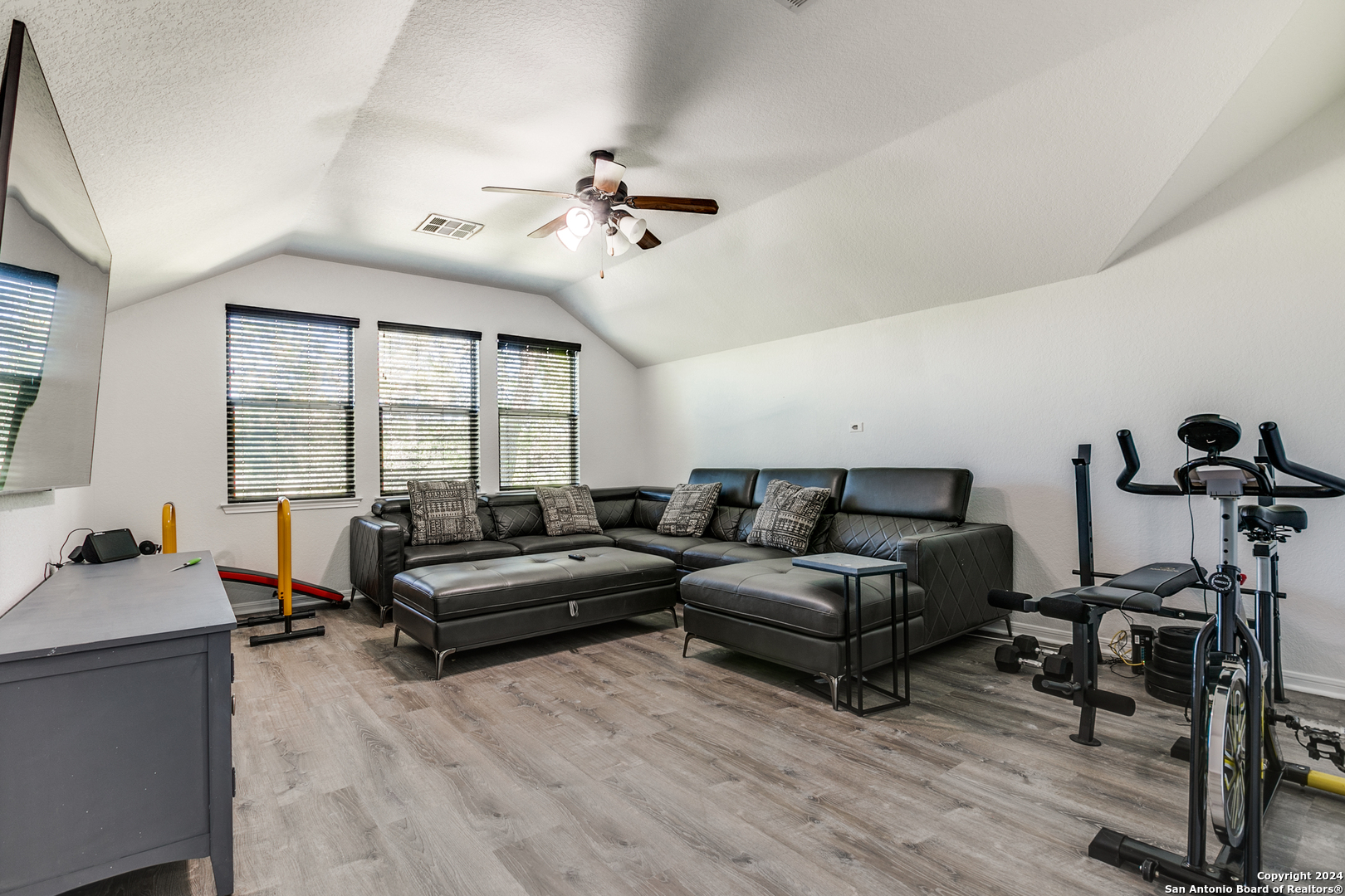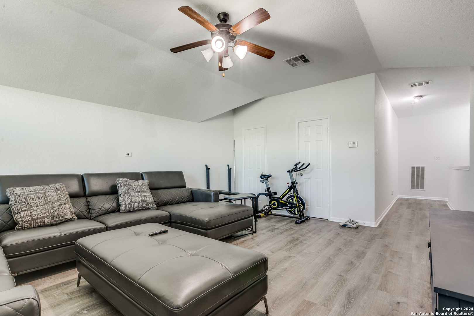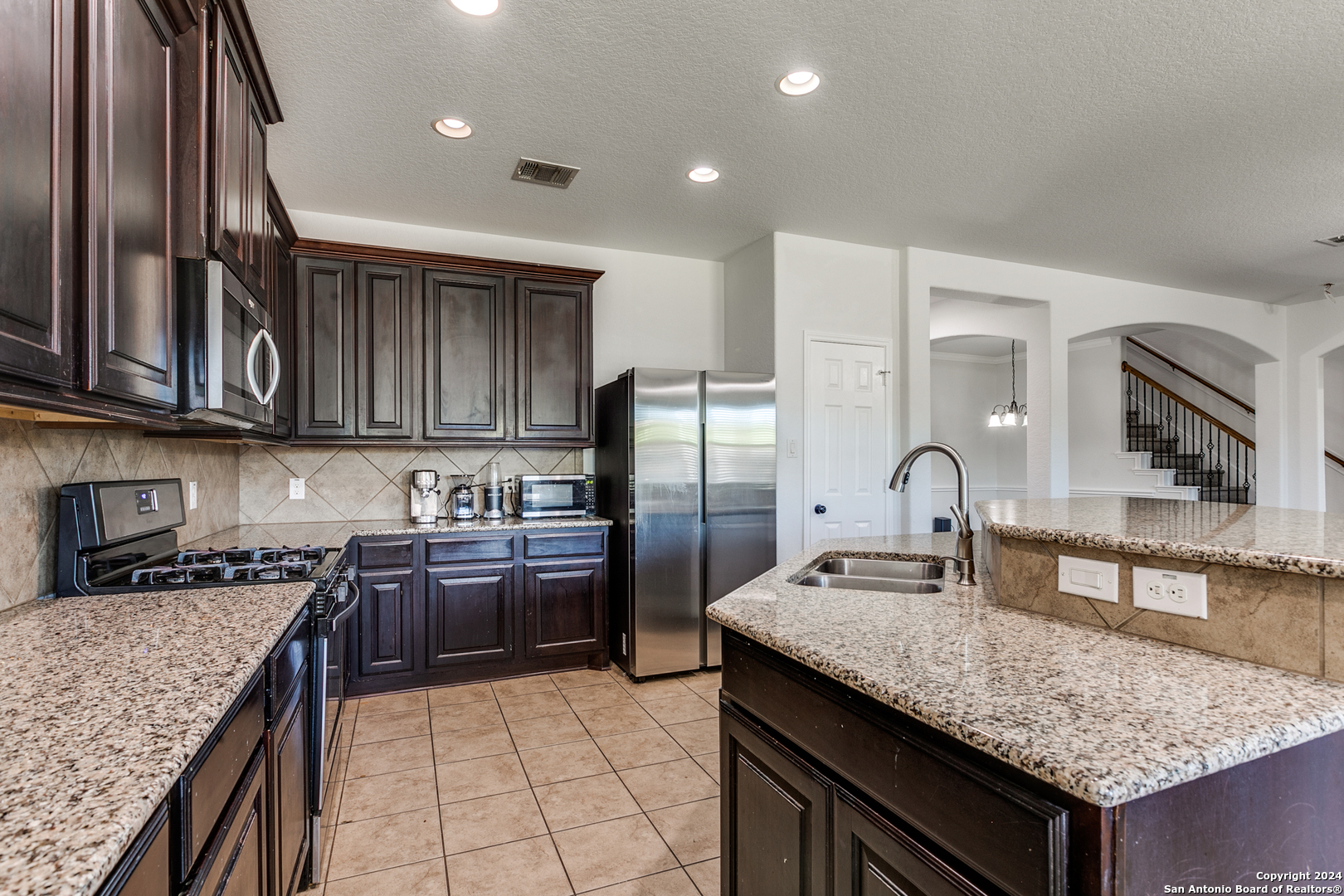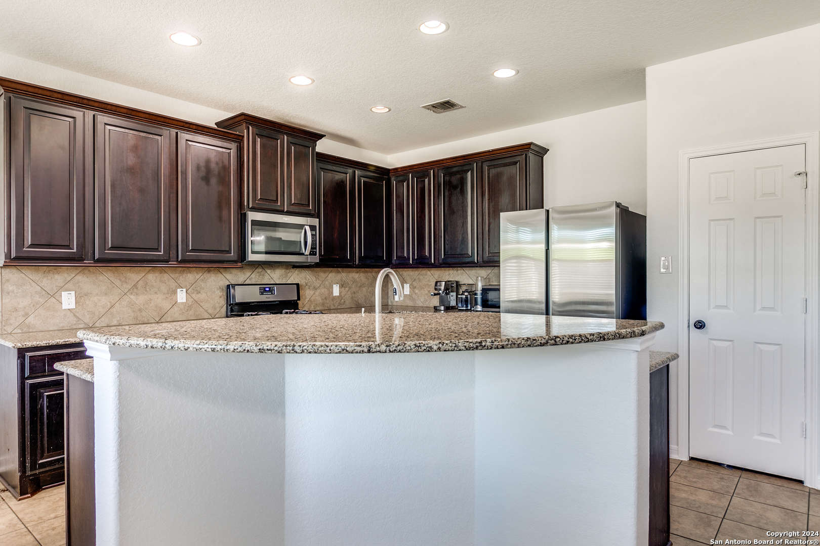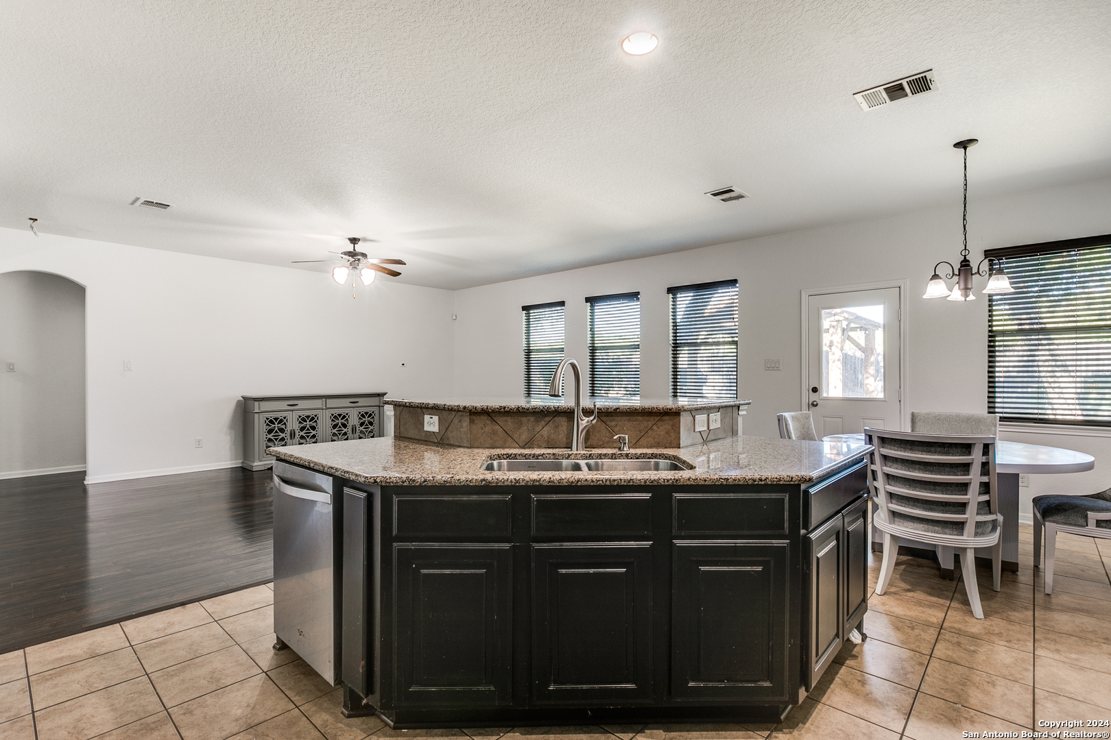 Alamo Ranch great find!! 1.5 story with all 4 bedrooms downstairs, this gorgeous home sits on a Greenbelt Lot! Recent high quality laminate flooring throughout, freshly painted interior. Beautiful kitchen features granite countertops, custom tile backsplash & a breakfast bar. Northside schools and outstanding neighborhood amenities; hiking trails, clubhouse, and pool, located near great shopping, dinning and entertainment!