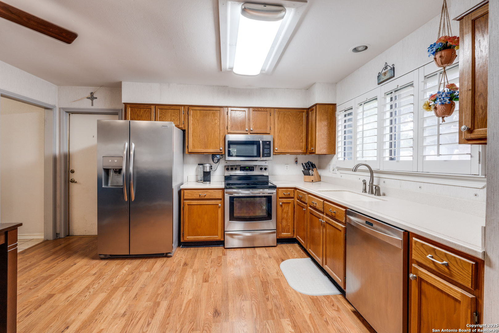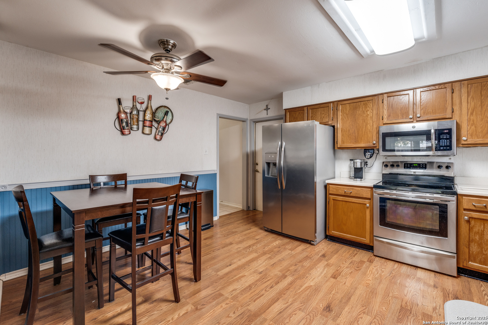 Welcome to your perfect slice of San Antonio living! Nestled in the sought-after Northern Hills subdivision, this meticulously maintained single-story home offers 3 spacious bedrooms, 2 full bathrooms, and all the charm of classic ranch-style architecture. Step inside to a warm, inviting layout ideal for relaxing or entertaining, featuring a large living area with a cozy fireplace. Enjoy your morning coffee on the large front porch, then spend your evenings under the covered back patio, overlooking a generous backyard perfect for BBQs, playtime, or peaceful outdoor living. This gem is located minutes from shopping, dining, and the Northern Hills Golf Club. This home blends comfort, convenience, and timeless style. Whether you're a first-time buyer, a downsizer, or simply looking for that hard-to-find single-story home, this one checks all the boxes.