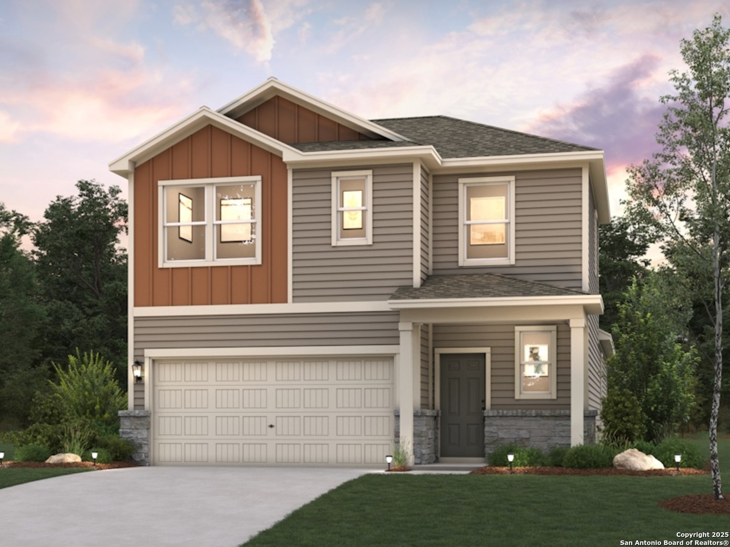 At the heart of the Hawthorne Plan plan, you'll find a welcoming open kitchen with a convenient center island and a built-in pantry. The kitchen oversees a spacious dining area and an airy great room a few steps away. The luxurious owner's suite is adjacent, boasting a walk-in closet and a private bath. You'll also find a powder room on this floor. There are three bedrooms upstairs, one which can be optioned as a versatile loft space. An additional full bath rounds out this level. Additional home highlights and upgrades: 36" gray kitchen cabinets, quartz countertops and backsplash Luxury wood-look vinyl plank flooring in common areas Stainless-steel appliances Additional recessed throughout home Large walk-in shower at primary Cultured marble countertops and modern rectangular sinks in bathrooms Landscape package with sprinkler system Garage door opener with two remotes Extended covered patio Exceptional included features, such as our Century Home Connect smart home package and more!