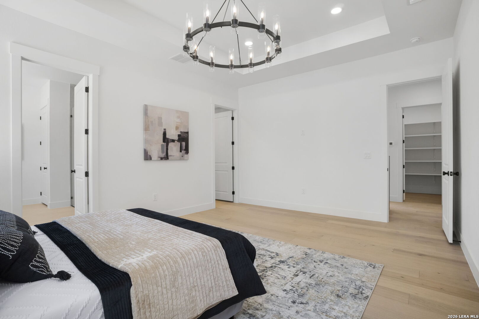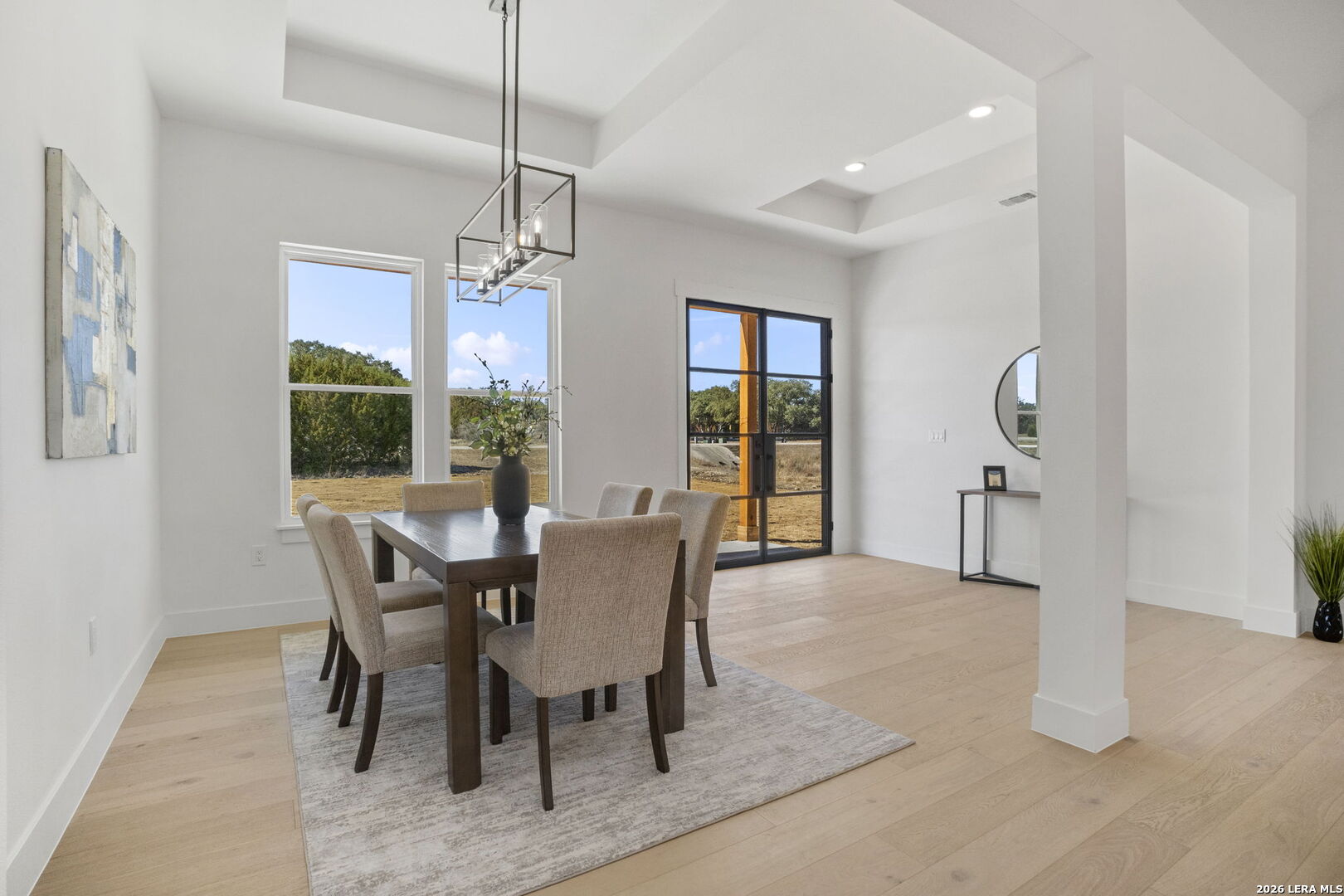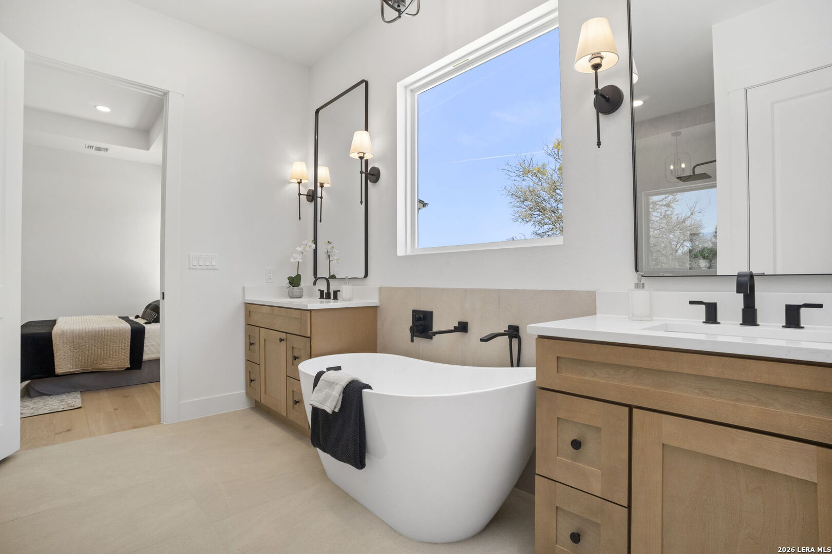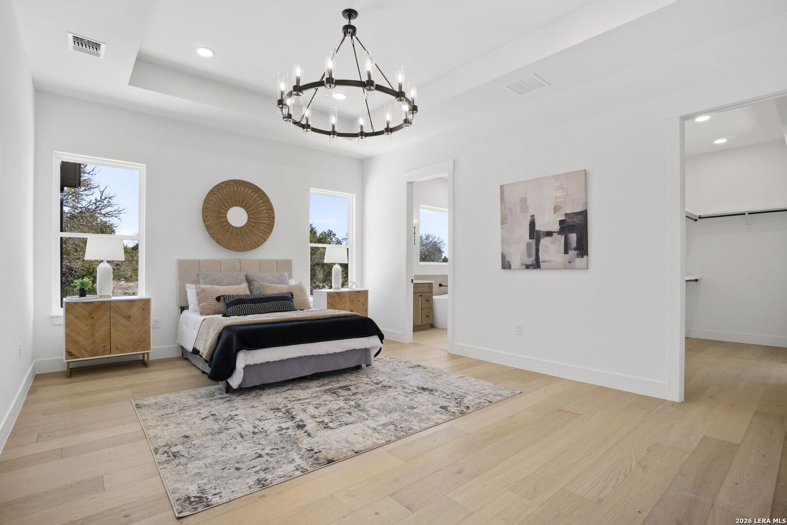 Welcome home to this beautifully crafted newly built modern residence situated on 2.01 acres in Bandera, Texas, offering the perfect blend of luxury, space, and Hill Country living. Thoughtfully designed with an open-concept layout, this home showcases quality craftsmanship and high-end finishes throughout. Vaulted and coffered ceilings enhance the spacious feel of the main living areas, while hardwood flooring spans the main level, including all bedrooms. The heart of the home opens into a bright and inviting living space, ideal for both everyday living and entertaining. The gourmet kitchen is a true centerpiece, featuring an oversized island, custom cabinetry, and a full THOR appliance package, including the refrigerator. A gas range, custom vent hood, and decorative sconce lighting framing the kitchen window combine style with functionality. The primary suite is conveniently located on the main level, offering a private retreat with ample space and comfort. An additional secondary suite upstairs provides flexibility for guests, extended family, or a private living area. This 4-bedroom, 3.5-bath home is turn-key and move-in ready, and includes a 1-2-10 builder warranty for added peace of mind. Outside, the expansive 2.01-acre lot provides privacy, room to roam, and endless potential for outdoor living, future enhancements, or simply enjoying the peaceful surroundings of the Texas Hill Country. This property presents a rare opportunity to own a high-quality new construction home on acreage-truly a must-see to appreciate the design, space, and setting.