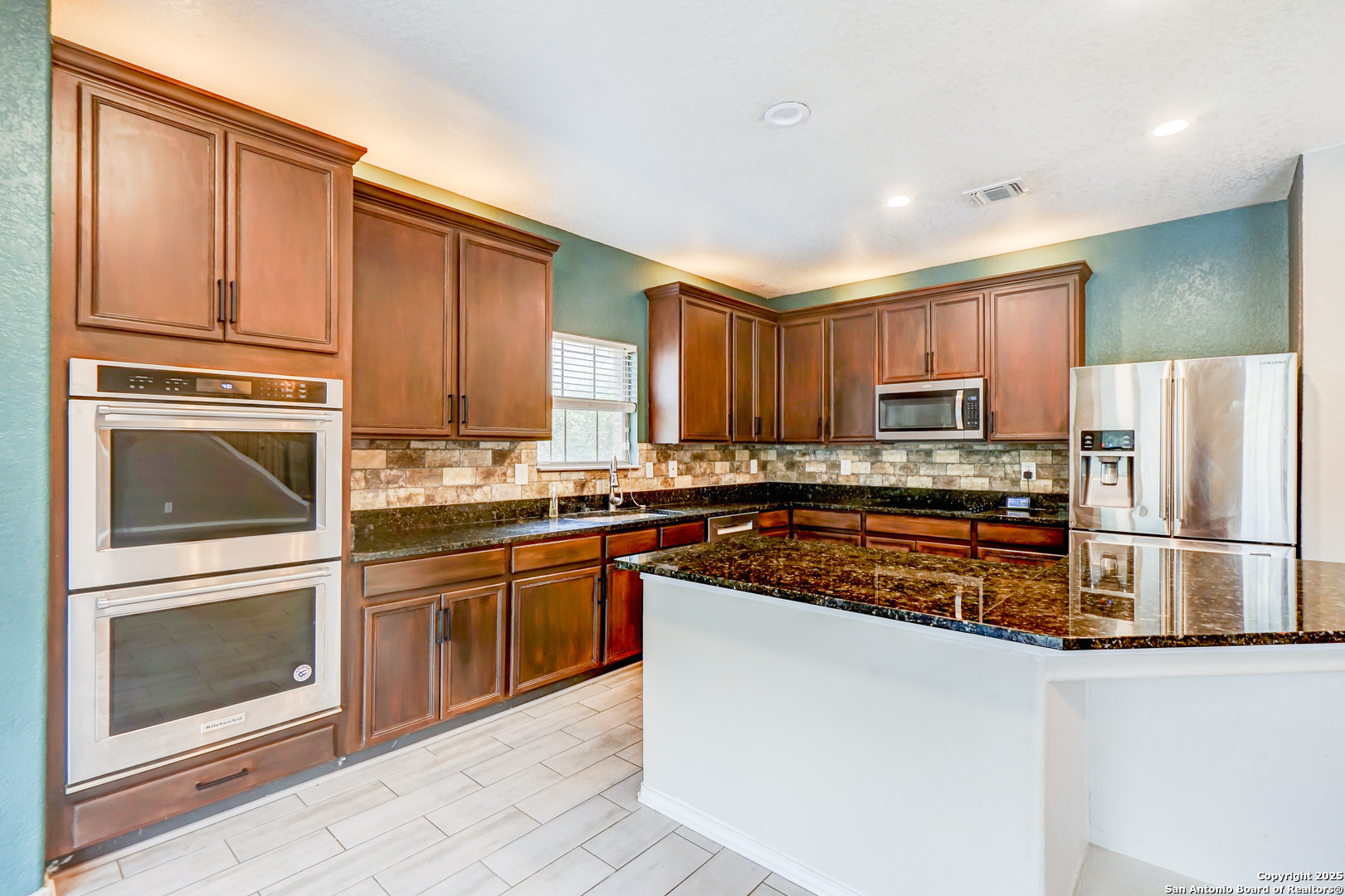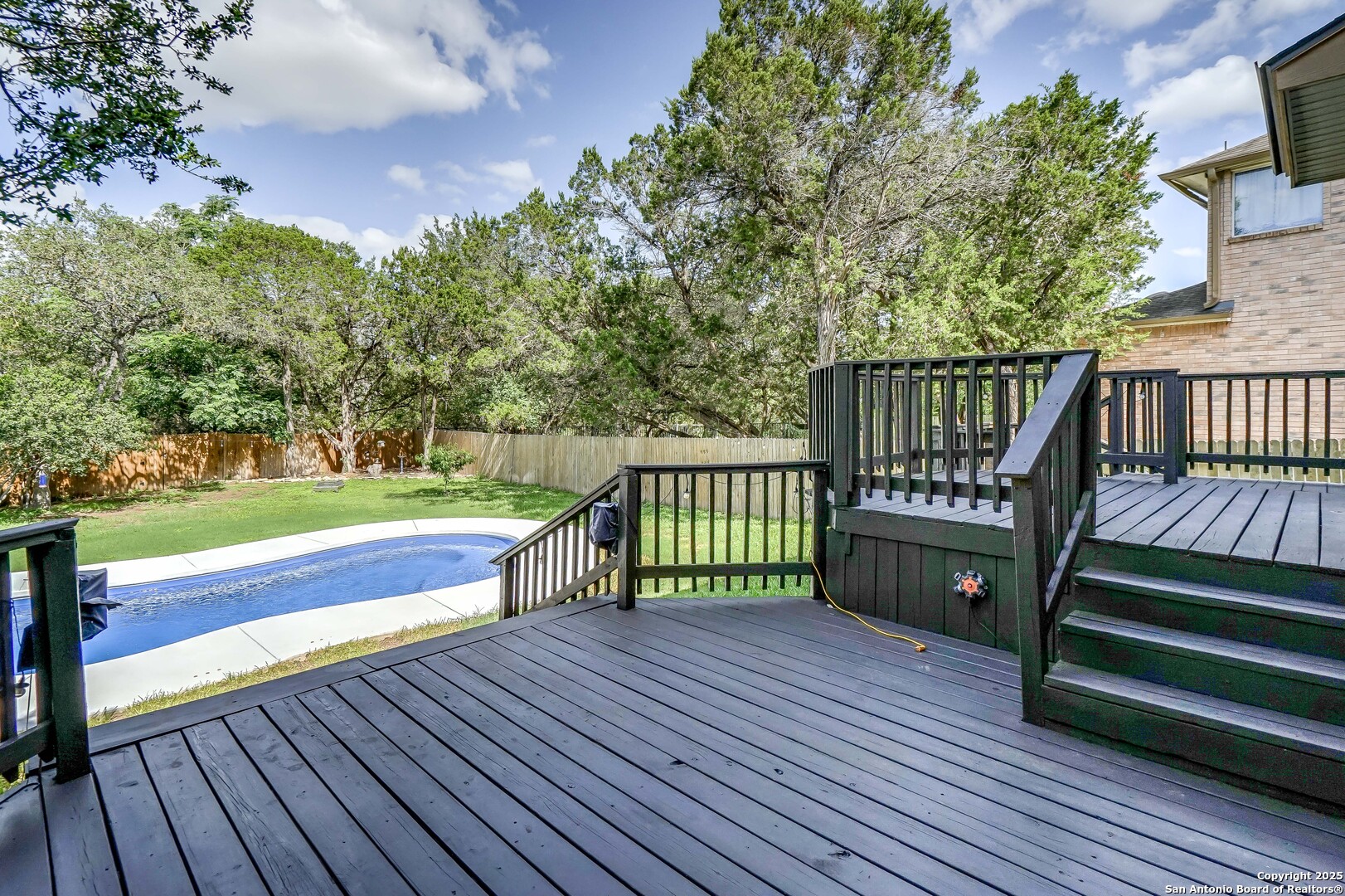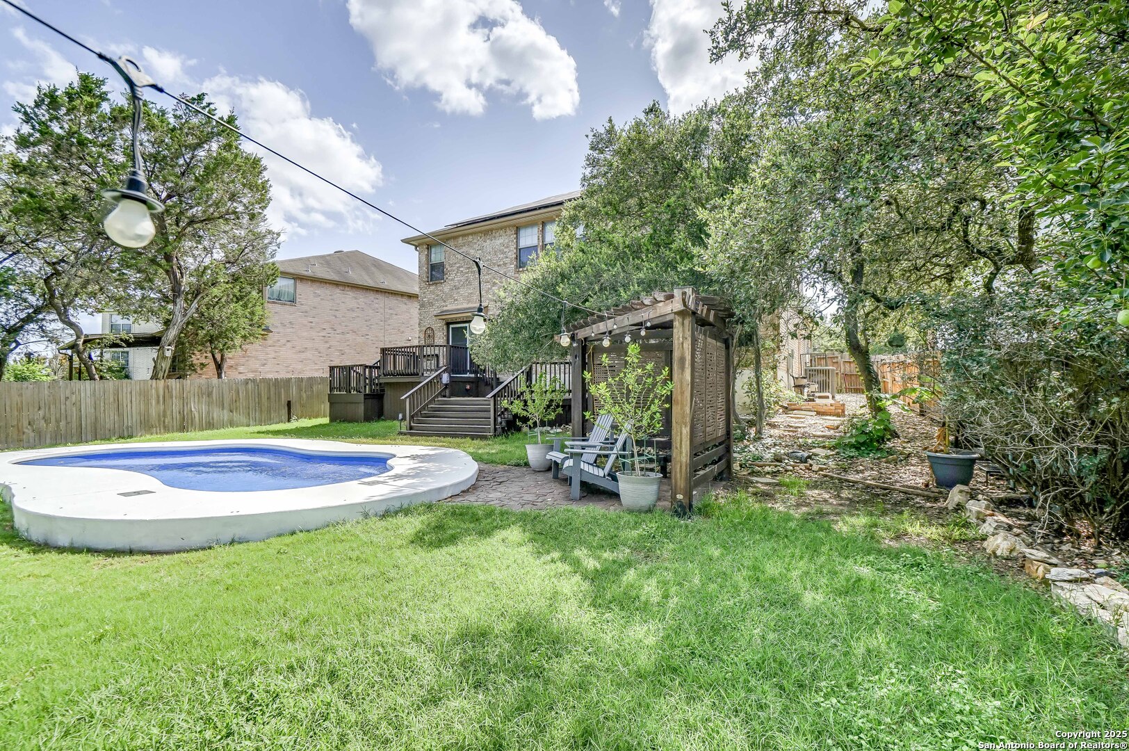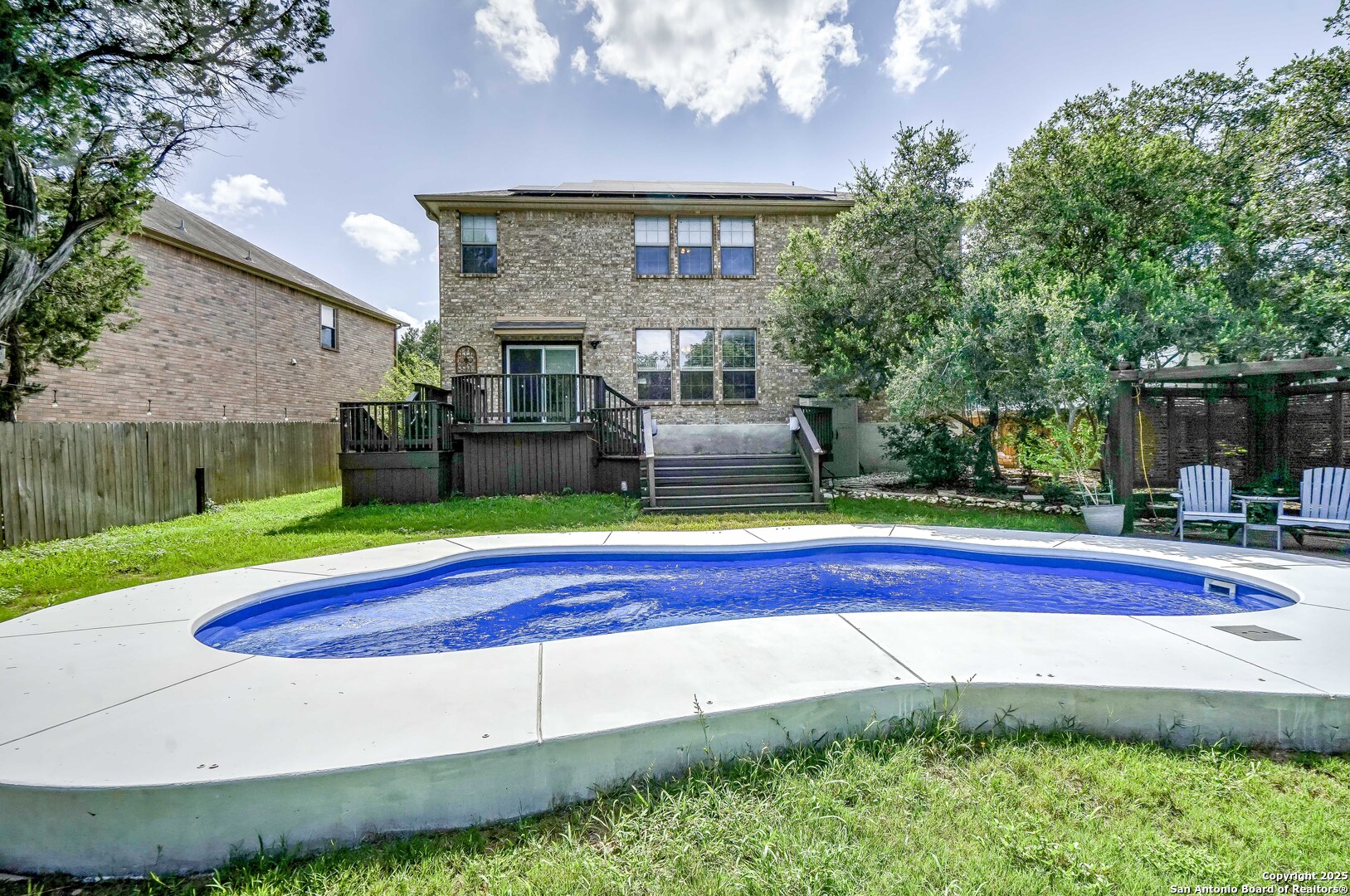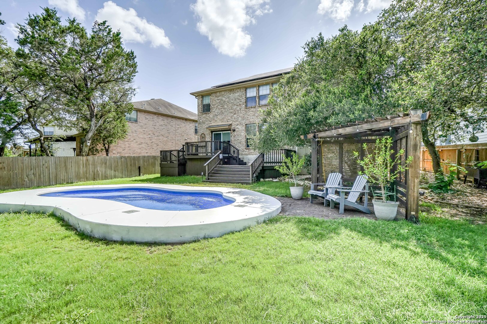 Step into this beautifully updated two-story home that blends space, function, and comfort. Featuring an open-concept layout with two living areas, two dining spaces, and a large upstairs game room, there's room for everyone to spread out and enjoy. The gourmet island kitchen is a chef's dream-complete with stainless steel appliances, a double oven, and plenty of space to host family and friends. Gorgeous flooring flows throughout the downstairs, and the flexible 5th bedroom can easily serve as a home office or guest suite. Upstairs, all bedrooms are generously sized and include walk-in closets, with fresh carpet added in 2025. Enjoy outdoor living at its best with a sparkling pool (installed 2021), a stylish gazebo (2021), and plenty of space to unwind. Major systems have been updated for peace of mind-HVAC (2017), water heater & water softener (2020). Conveniently located near Randolph AFB, Loop 1604, I-35, and Hwy 281-plus no city taxes! This home truly has it all.