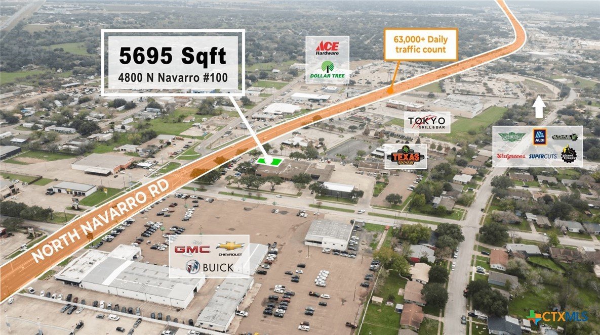 Located at 4800 N. Navarro, Suite 100, this prime commercial space offers unmatched visibility along one of Victoria’s busiest corridors, with over 63,000 vehicles passing daily. The suite features a welcoming foyer and lobby with a front desk, four private conference rooms, a spacious executive conference room, two restrooms, and a break room. A unique vault area has been thoughtfully divided into three separate spaces, providing secure and flexible options for storage or private offices. The open area allows for customizable workspace configurations, making this location ideal for a wide range of professional or retail uses.