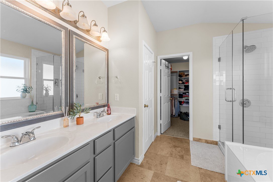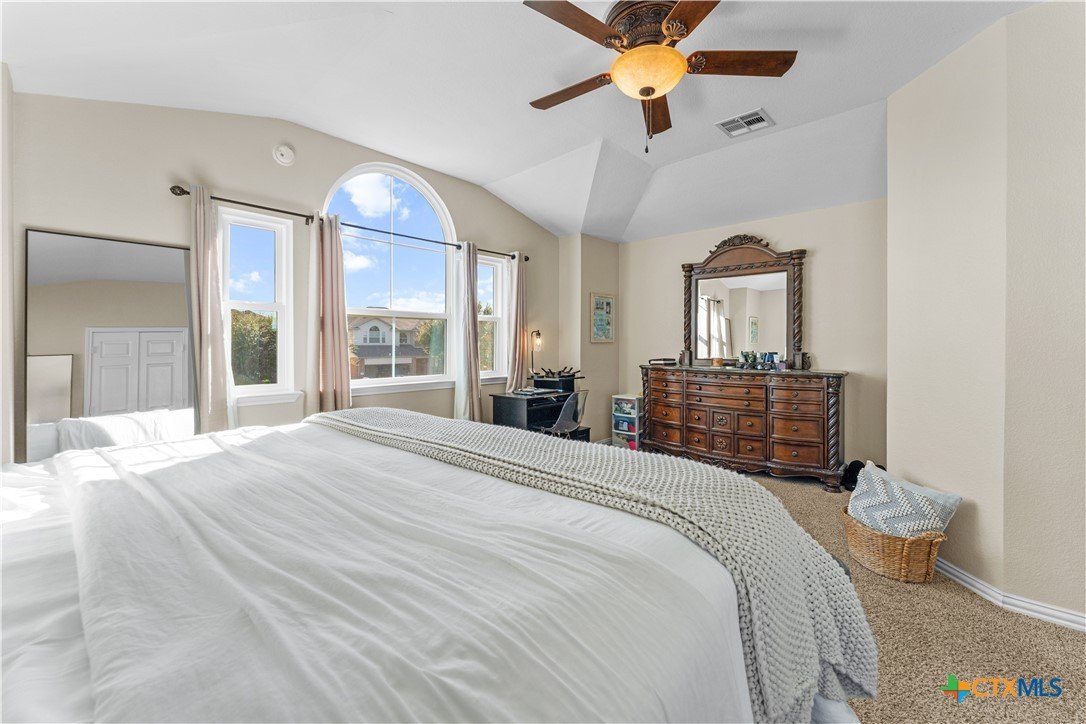 4807 Sydney Harbour Court has been well cared for and updated to perfection! All NEW WINDOWS! Roof is only 3 years old! The secondary bathroom features new tile, the master bathroom shower has been completely updated, and there are new lighting fixtures throughout, plus much more. The front yard curb appeal is highlighted by the Texas limestone exterior, which makes up the porch columns on the oversized covered patio. Inside, the two-story entryway features a brand-new chandelier. The office is located right off the entry with double doors and a large window that allows natural light to flow in. The living room has a wood-burning fireplace and is open to the kitchen, with the entire space surrounded by beautiful windows. The kitchen has been beautifully updated with painted cabinets and countertops with a granite-look finish. Upstairs, you will find a large loft/second living space, with the primary bedroom located on one side for added privacy. The primary bathroom features updated painted cabinets, a relaxing tub, and an updated separate shower with a beautiful subway tile surround. The secondary bedrooms are generously sized, with the hall bath conveniently located between them. The hall bath has new flooring, painted cabinets, and an updated tile surround for the tub/shower. This beautifully maintained and updated home will not last long—schedule your showing today!