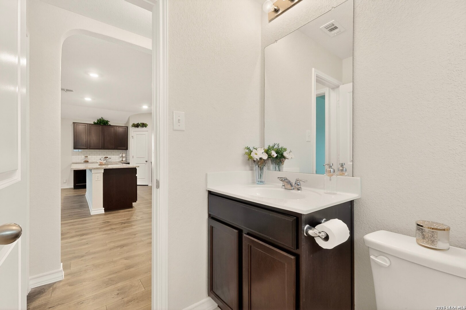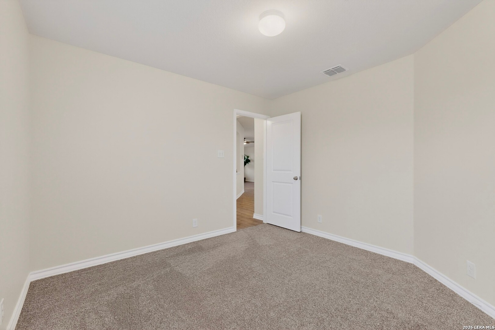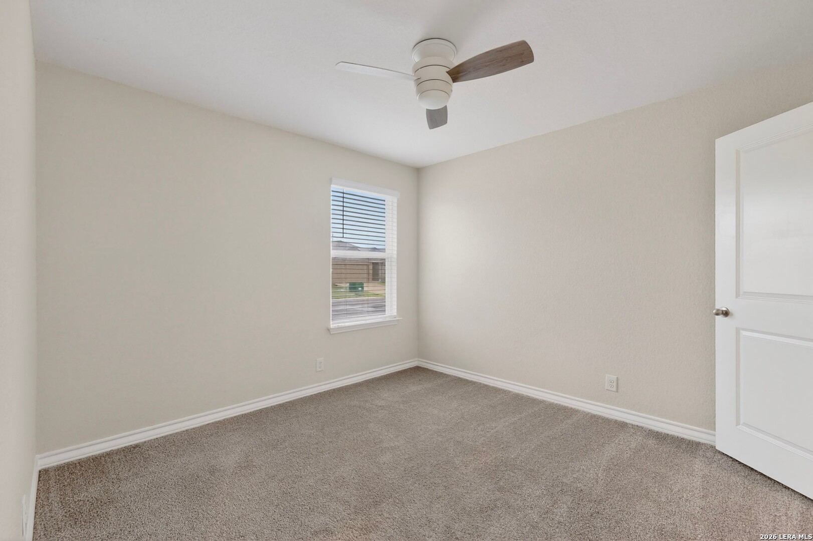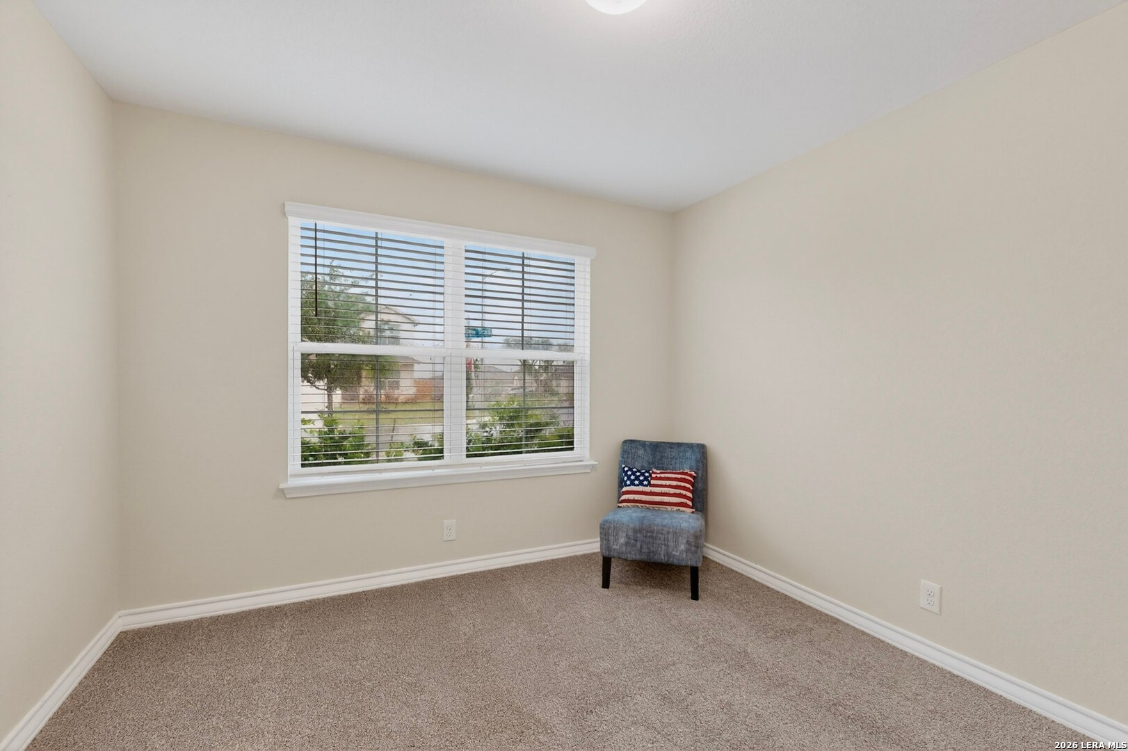 Move in ready single story home on a corner lot in a great neighborhood with amenities! Welcome guests as they walk through the elongated foyer with decorative nook to the spacious eat-in kitchen. Facing the family room area, the kitchen includes an oversized island, corner pantry with shelving, plenty of cabinet storage, granite countertops, stylish subway tile backsplash, stainless steel appliances, and electric cooking range. The private main bedroom is located at the back of the house and features a relaxing ensuite complete with double vanities, separate tub and walk-in shower, water closet, and spacious walk-in closet. One secondary bedroom is located off the entry and is ideal for an office space. The remaining secondary bedrooms and second full bath are centrally located off the kitchen, and a spacious utility room is conveniently located adjacent to the family room. Additional features include tall 9-foot ceilings, 2-inch faux wood blinds throughout the home, luxury vinyl plank flooring in the entry, family room, kitchen, and dining area, ceramic tile in the bathrooms and utility room. Relax outside on a covered patio (per plan) located off the family room and enjoy full yard landscaping and full yard irrigation.
