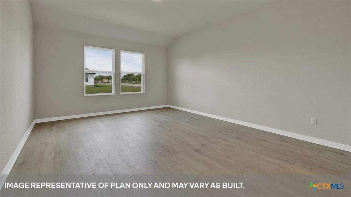 MARCH ESTIMATED COMPLETION. Check out the Dean at Hartland Ranch. Designed across 1,885 square feet, this home includes 4 bedrooms and 2 bathrooms and a 3-car garage. Walk through the covered entryway and make your way down the hall to the main living space. The kitchen, dining and family room are open,built to make cooking, eating, and entertaining a pleasant experience for family and friends. The kitchen includes quartz countertops, decorative tile backsplash, a large island with undermount sink, a corner pantry closet, stainless-steel appliances and 36’’ upper cabinets. Enjoy the natural light with four rear windows looking out to the backyard. The secondary bedrooms are located at the front of the house, off the foyer. A small hall leads you to the three bedrooms and one full bathroom. Each bedroom includes a closet, and the bathroom includes a shower/tub combination plus extra shelving for storage or décor. Whether you use these rooms as an office, child’s room or guest room, there is plenty of space for work, sleep and play. Off the family room, you’ll find the utility room, with extra shelving for all your laundry items. The primary bedroom is tucked away past the utility room, and this private ensuite is sure to be your oasis at the end of a long day. Enjoy the 5’ walk in shower, raised cultured marble vanity with double sinks, private toilet area with a door, and walk-in closet in this modern bathroom space. The Dean includes vinyl flooring throughout the common areas of the home and the primary bedroom, and carpet in the secondary bedrooms. All our new homes feature a covered back patio, full sod, an irrigation system in the front and back yard, and full gutters. This home features our America’s Smart Home base package, which includes the Video Front Doorbell, Front Door Deadbolt Lock, Home Hub, Thermostat, and Deako® Smart Switches.