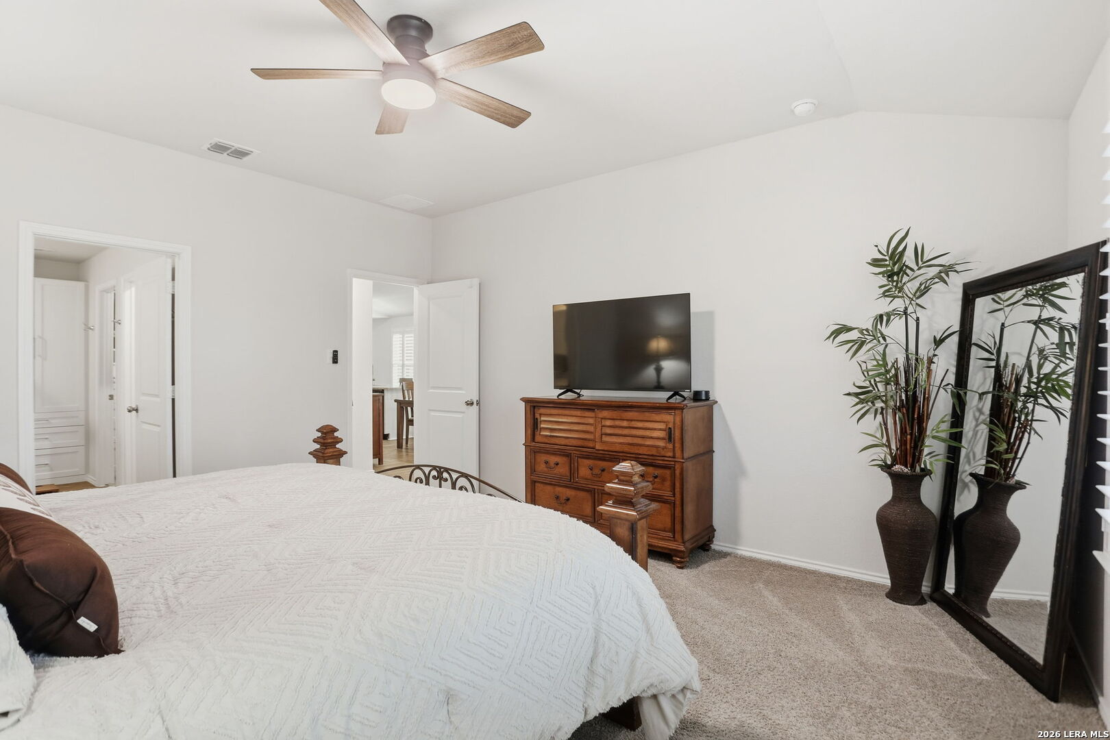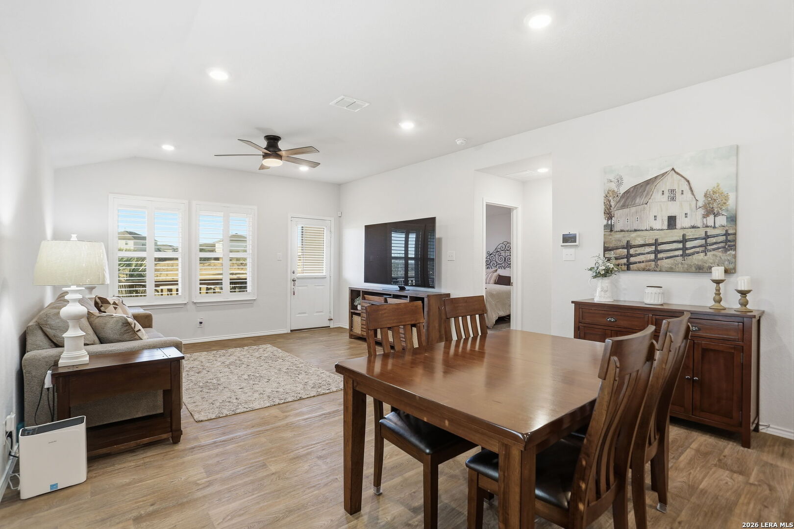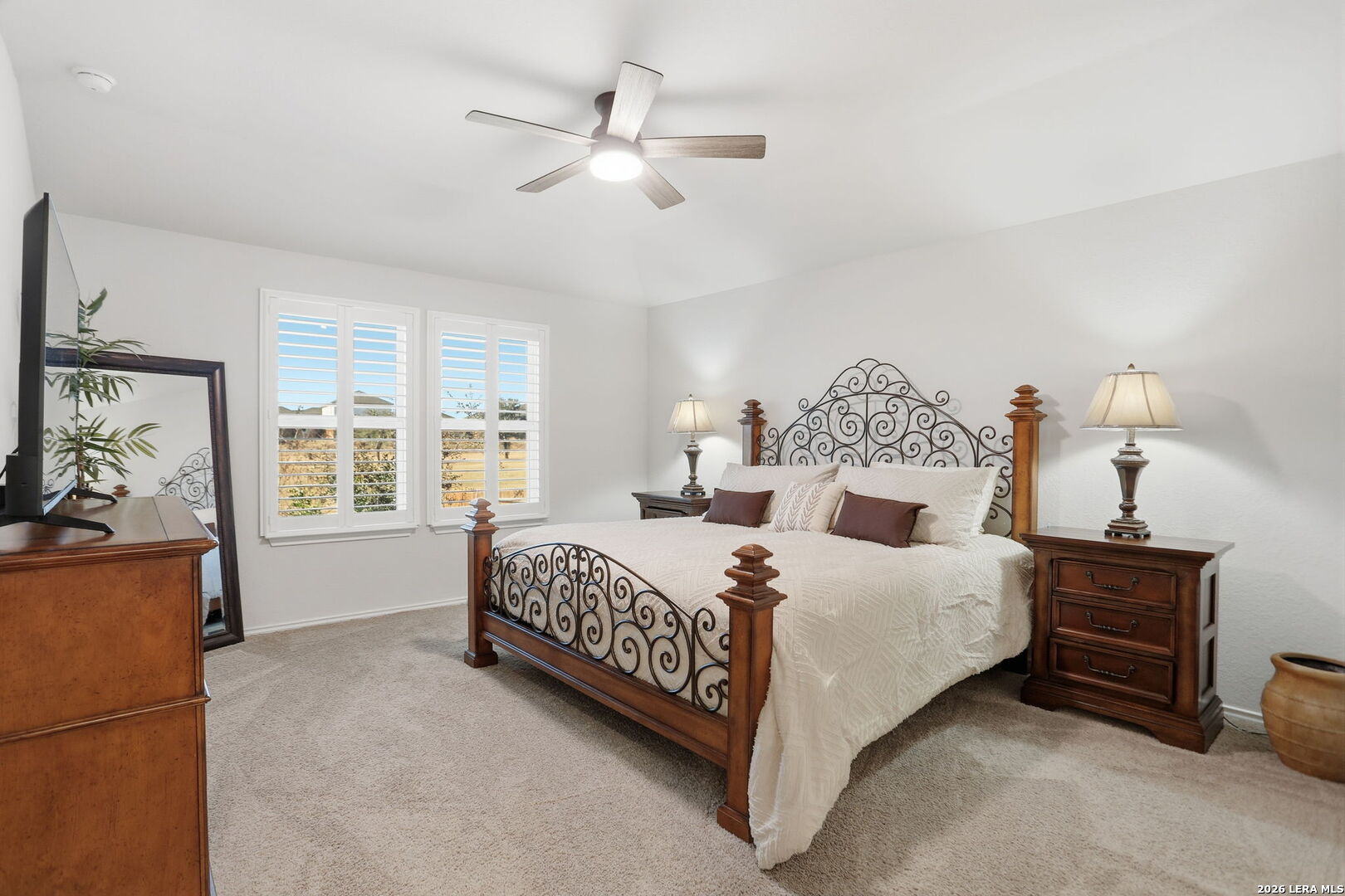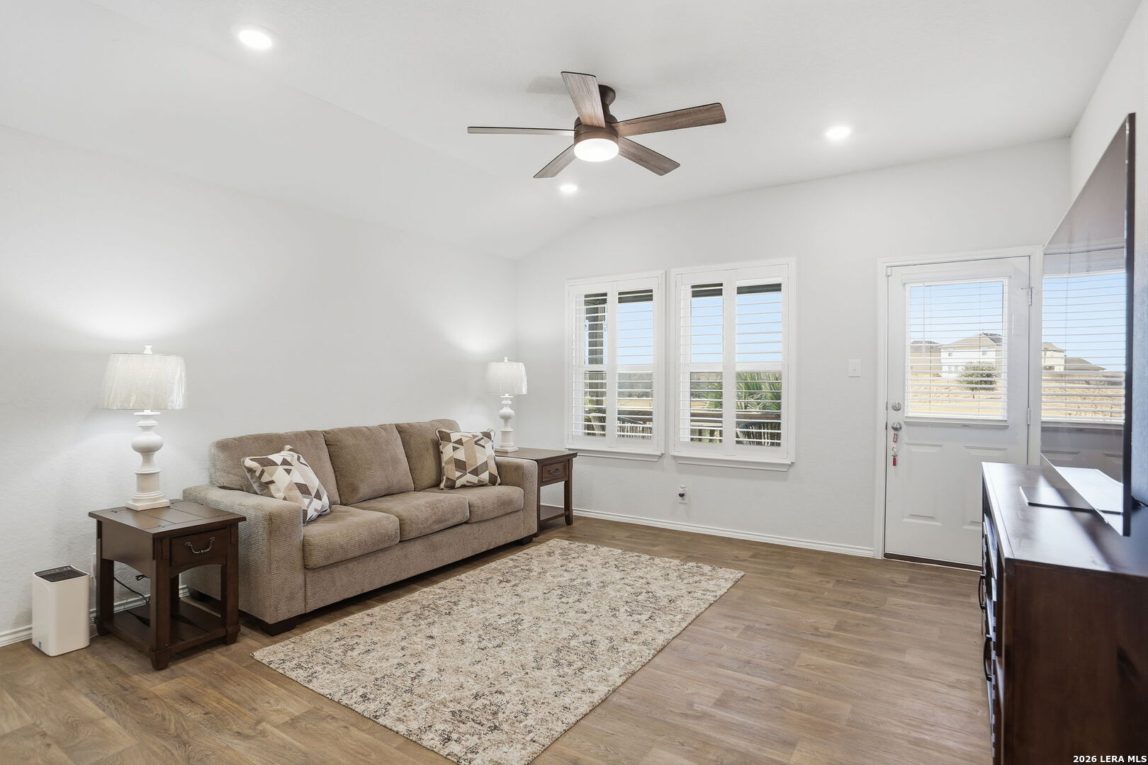 Welcome Home - to River Bend Golf Course Living in Floresville, Texas. This beautifully maintained home features 3 bedrooms and 2 bathrooms and sits on a premium lot overlooking the fairway at River Bend Golf Course. The home offers energy-efficient upgrades including exterior solar window screens, patio solar shades, and custom interior shutters, along with ceiling fans in the living room and all bedrooms and a front storm door. The landscaped backyard includes a flagstone patio and rear gate with direct views of the scenic fairway-perfect for relaxing or entertaining. The island kitchen features granite countertops, a new sink, and newer gas stove and microwave, with all appliances in excellent working condition and included with the home. The spacious primary suite includes custom storage systems by California Closets, with an additional custom closet in the second bathroom. The home is also equipped with smart security features including front and rear cameras, Google video Doorbell and Ring over head Garage camera. Residents enjoy community amenities including an 18-hole golf course, tennis courts, walking trails, and an Italian steakhouse restaurant, all just minutes from medical services, shopping, and schools. Over $41,677 in upgrades and improvements have been invested in the home, including new kitchen appliances (microwave, gas stove, and Samsung refrigerator), custom closets, custom blinds, energy-saving solar screens and patio shade, a flagstone patio, landscaping, backyard sidewalk extension, rear gate, storm door, ceiling fans, and additional interior updates-making this home move-in ready with thoughtful upgrades throughout.