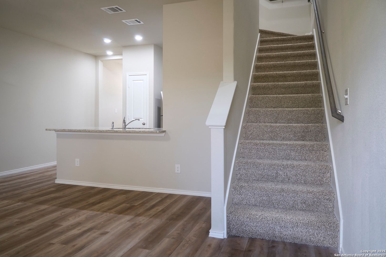 Welcome to 482 Abigail Alley, a stunning townhome. This property offers a host of amenities designed to enhance your living experience. The kitchen is a chef's dream, equipped with gas cooking, stainless appliances, and beautiful granite counters. This townhome also features a convenient one-car garage and a fenced-in backyard, perfect for outdoor activities. Enjoy the luxury of a covered patio, ideal for entertaining or simply relaxing. The interior boasts vinyl plank flooring downstairs and in the bathrooms, adding a touch of elegance to the space. The apartment also offers washer and dryer connections upstairs for your convenience close to the bedrooms. The community amenities are equally impressive, including a sparkling community pool and a fun-filled playground. The property is located within the highly-rated Medina Valley ISD and sits on a spacious acre lot. Experience the perfect blend of comfort and convenience at Abigail Alley. Property management charges $25/mo admin fee.