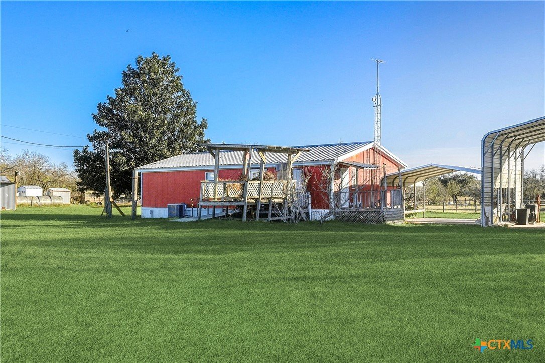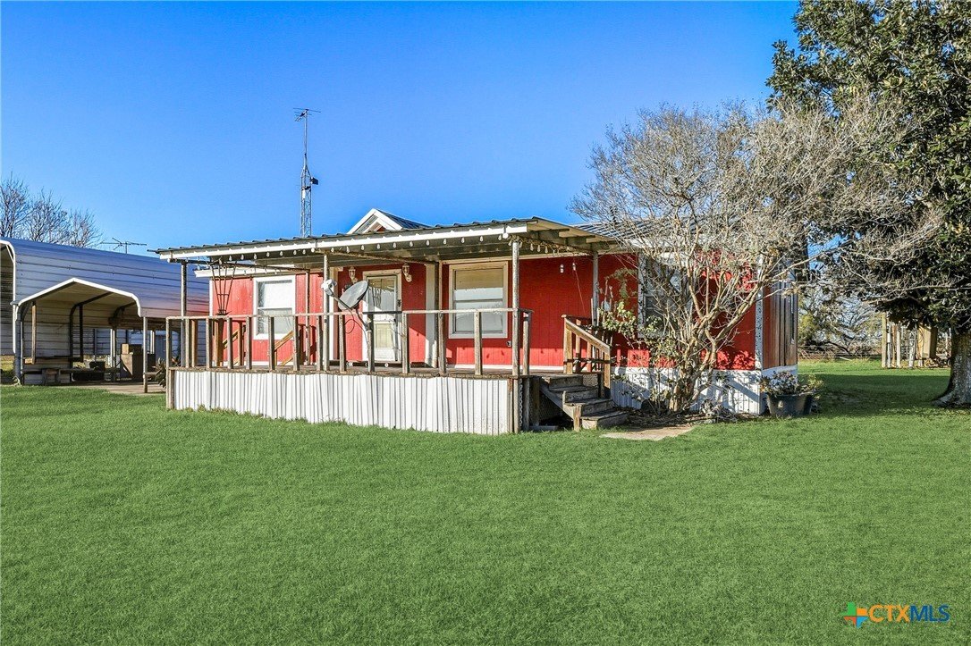 Tucked away just outside Yorktown, Texas, this 3-bedroom, 2-bath manufactured home on 19.6 acres offers the ideal blend of country living, functionality, and wide-open space. Whether you’re searching for a Texas ranchette, homestead property, recreational retreat, or rural investment, this property checks every box. The home is thoughtfully positioned to take advantage of the land and features covered parking - a carport and dedicated RV parking with 30-amp electrical service, making it perfect for guests, travel trailers, or extended stays. Multiple outbuildings include a barn for livestock or equipment and a workshop ideal for projects, storage, or hobbies. Enter the home off a large front porch into the spacious living area. Primary bedroom offers ensuite bath. Second and third bedrooms share a second bathroom. Kitchen has lots of cabinet and counter space. There is a large utility room with space for second fridge or freezer. The property is fully fenced and cross-fenced, offering flexibility for grazing, livestock management, or rotational use. The front of the property features a stock tank with a charming wooden dock, creating a peaceful spot for fishing, relaxing, or enjoying quiet Texas sunsets. Toward the back, the land transitions into a wooded area rich with native trees and abundant wildlife, making it an excellent option for hunting, nature watching, or private outdoor recreation. With nearly 20 acres, there is ample room for agricultural use, livestock, horses, 4-H or FFA projects, gardening, or future improvements. The setting provides privacy and serenity while still offering convenient access to Yorktown and surrounding communities. Properties offering acreage, water features, multiple improvements, and rural infrastructure are increasingly hard to find. If you’re looking for land for sale near Yorktown, TX with versatility, natural beauty, and room to grow, this one deserves a closer look. Welcome home!