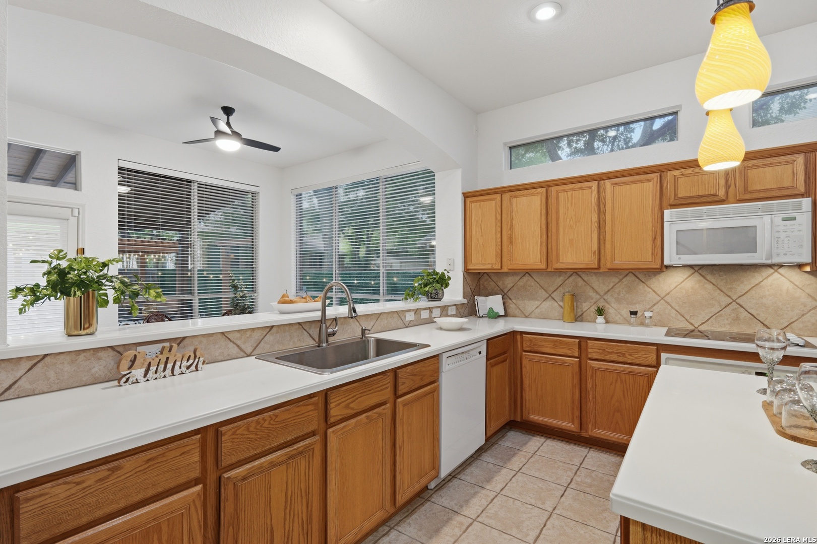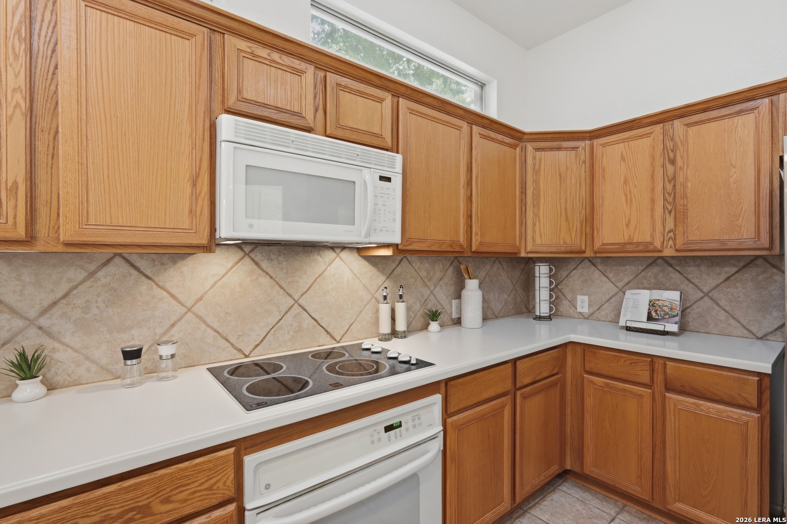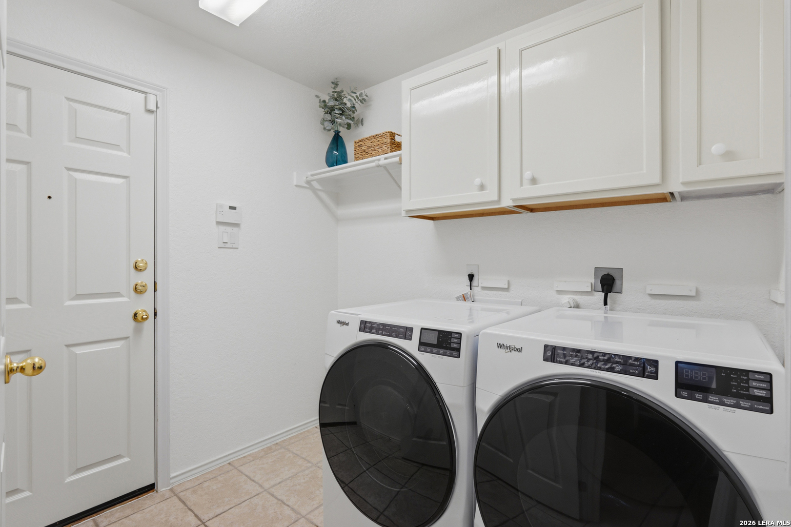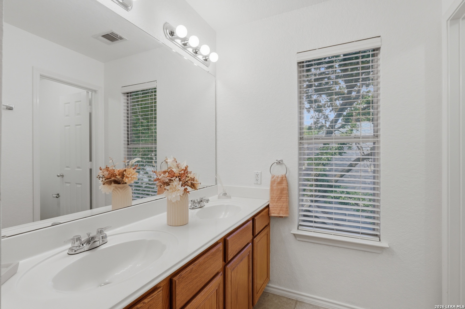 Stunning, meticulously maintained two-story home located in the highly desirable Woodbridge community. This exceptional residence is in a cul-de-sac and features 3 spacious bedrooms, 3 full bathrooms, a home office, a 2-car garage, and a full sprinkler system. Step inside to an inviting open-concept layout filled with natural light, highlighted by soaring ceilings, tall windows, and a spacious living room with a cozy fireplace. The gourmet kitchen is a chef's dream, showcasing granite countertops, custom cabinetry, a large island with a breakfast bar, and seamless flow into the living and dining areas, perfect for both everyday living and entertaining. The main level offers a home office, multiple living and dining spaces designed for comfort and functionality, and a guest bedroom. Upstairs, the expansive primary suite features a wall of windows and a beautifully appointed en suite bath complete with a soaking tub, walk-in shower, dual vanities, and a generous walk-in closet. The second floor also includes well-sized secondary bedrooms and a large game room with built-in cabinetry, ideal for a media room, study, or flexible living space. Enjoy outdoor living under the covered patio or relax in the charming gazebo with built-in seating, all surrounded by mature oak trees in a peaceful setting. Conveniently located near parks, shopping, dining, and entertainment, including The Forum at Olympia Parkway, IKEA, RBFCU, Academy, and Costco. Just minutes from Randolph Brooks Air Force Base and Fort Sam Houston, with easy access to I-35 and Loop 1604, and a short drive to New Braunfels and San Marcos Outlets. This exceptional home offers the perfect blend of comfort, style, and location. The security system is leased and will be removed prior to closing. This one won't last!