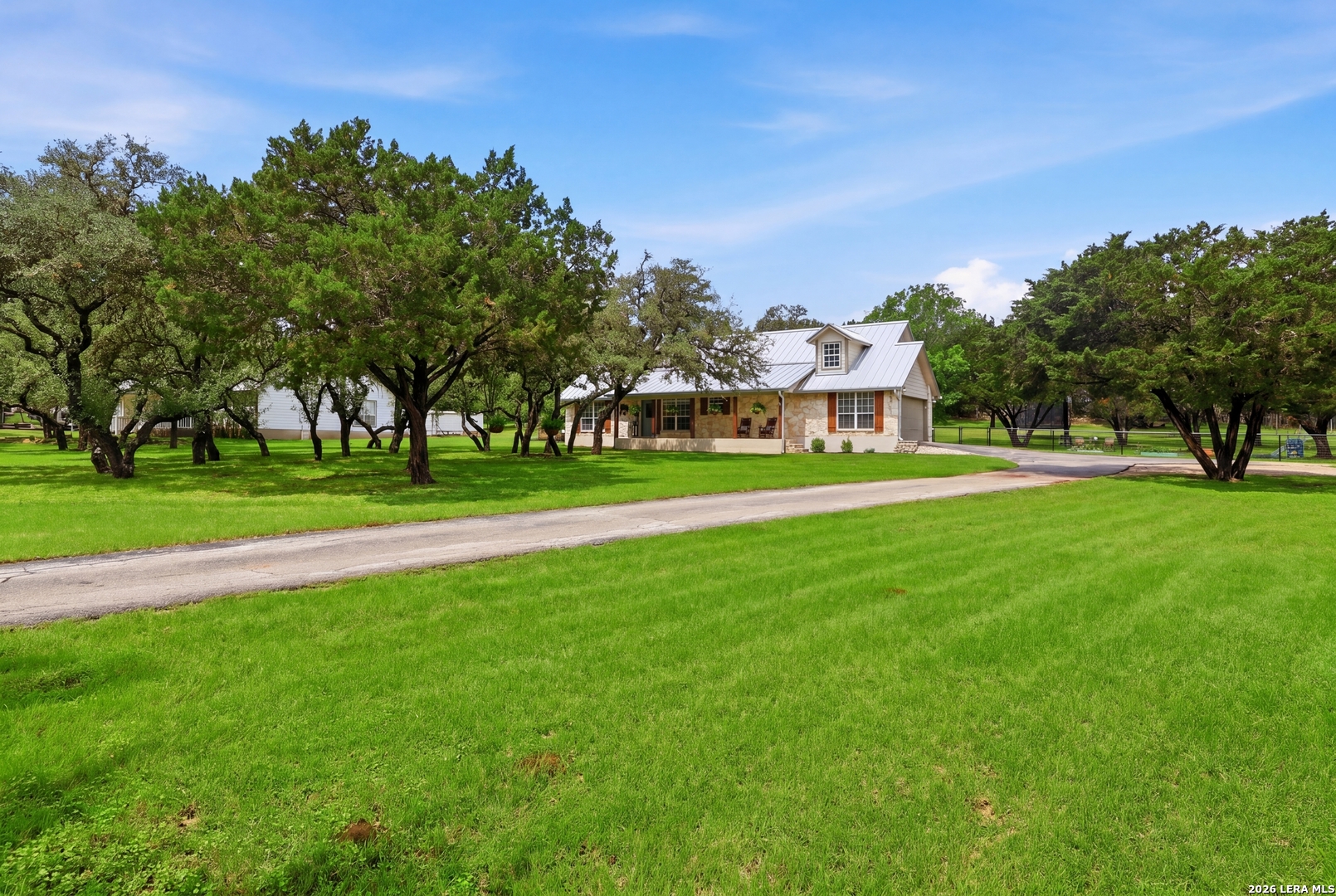 Welcome to your own piece of Texas Hill Country heaven! Nestled on just over an acre, this stunning 4 bed, 2 bath home offers the perfect blend of classic style, comfort, and space-both inside and out. From the moment you arrive, you'll be drawn to the inviting front porch and timeless limestone exterior that really sets the tone for this property. Inside you'll be welcomed into a beautiful open concept layout with a large dining space and a warm and welcoming living room, anchored by a stunning limestone fireplace that creates the perfect focal point for gathering and relaxing. The layout flows effortlessly into a spacious kitchen designed for both everyday living and entertaining. It's easy to appreciate the tasteful, timeless finishes that carry throughout the home, creating a cohesive and elevated feel. The primary suite is a true retreat, featuring a large, well-appointed bathroom with ample space to unwind and recharge. Three bedrooms are located downstairs, while the upstairs offers one additional, versatile room- ideal as a fourth bedroom, home office, or flex room to fit your needs. Step outside to enjoy a spacious, fenced backyard, featuring a nice covered back patio, offering plenty of room for grilling, entertaining, or simply taking in the peaceful surroundings. Located on a quiet street in a quaint neighborhood, this home offers the serenity of Hill Country living while still maintaining easy access to Highway 281-making commuting and daily conveniences a breeze. This is the kind of property that truly feels like home the moment you arrive. Schedule your tour today!