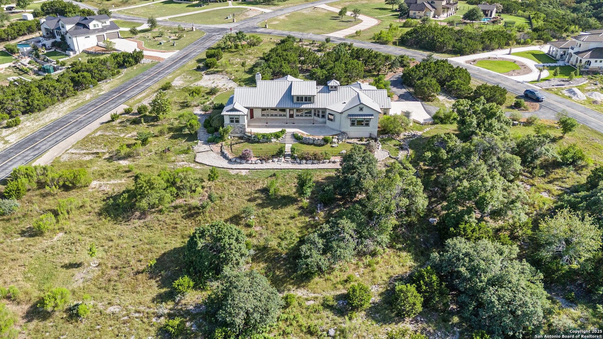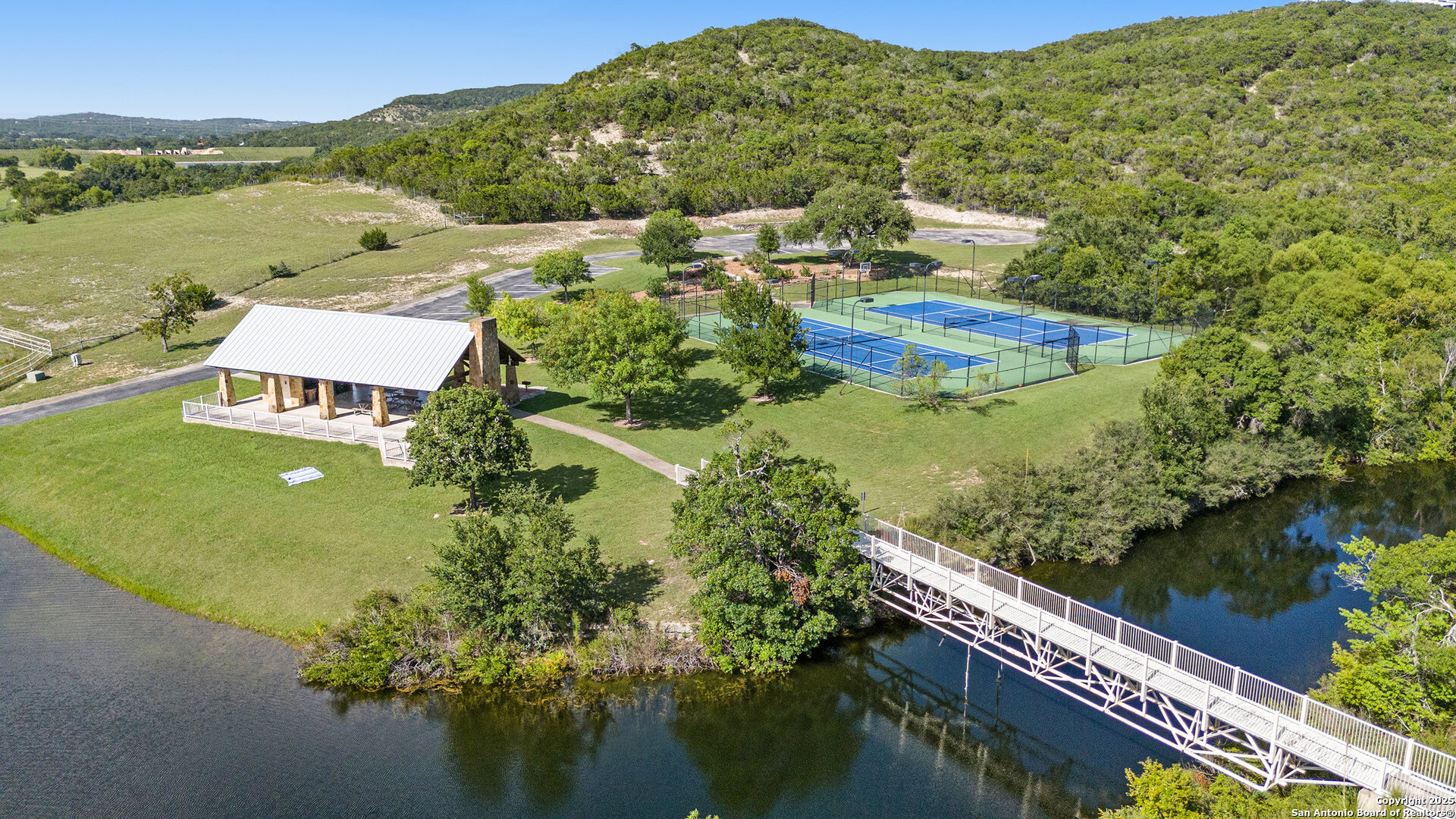 Well-designed and custom-built by Israel Pena, this thoughtfully crafted home sits on just over 3 acres on a corner lot in the gated Diamond Ridge subdivision. Just minutes from Boerne and zoned to top-rated Boerne ISD schools, the location offers both comfort and convenience. Enjoy nearby Tapatio Springs Golf Resort, great neighborhood tennis courts, and a peaceful community pond-perfect for an active yet relaxed Hill Country lifestyle. The home features 3 bedrooms, 2 full baths and 2 half baths with the potential for the upstairs half bath to be a full bath, the smart layout places the primary suite on one side of the home and two secondary bedrooms with a shared bath on the other. The large room upstairs can be used for a game room, 4th bedroom or a second office. Rich wood trim, a chef's kitchen with double ovens and gas cooktop, and a built-in central vacuum system add to the quality and functionality of this custom build. Covered porches in both the front and back provide relaxing spaces to enjoy sunrise and sunset views over the Hill Country. Solid and comfortable, with just the right custom touches-this home is a true gem.
