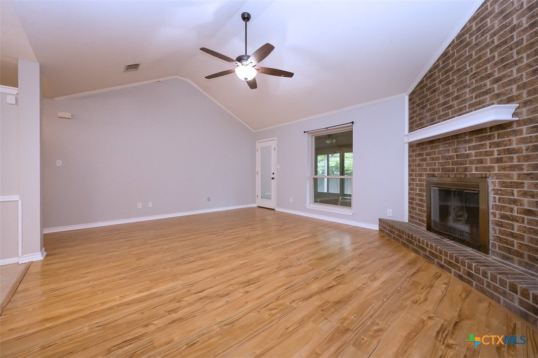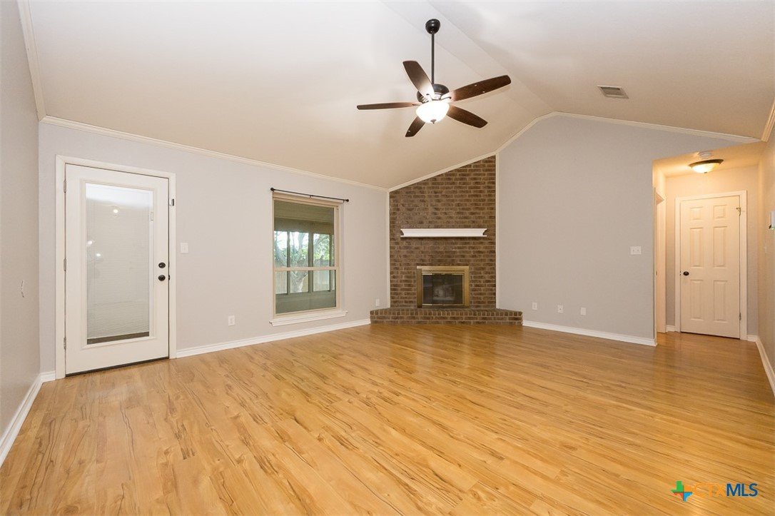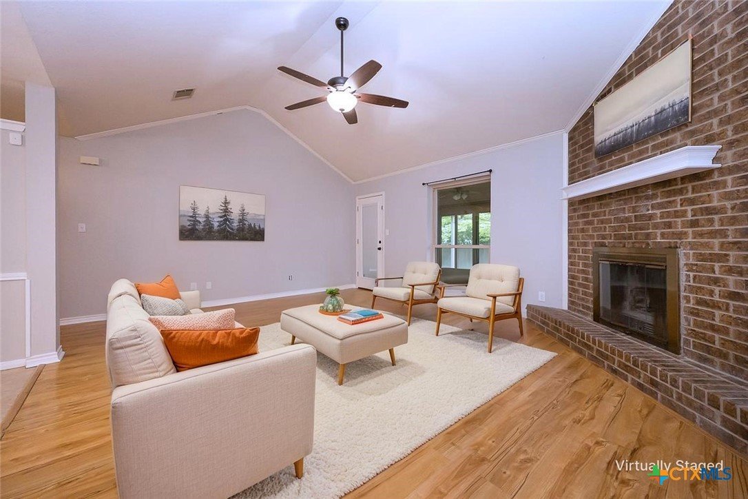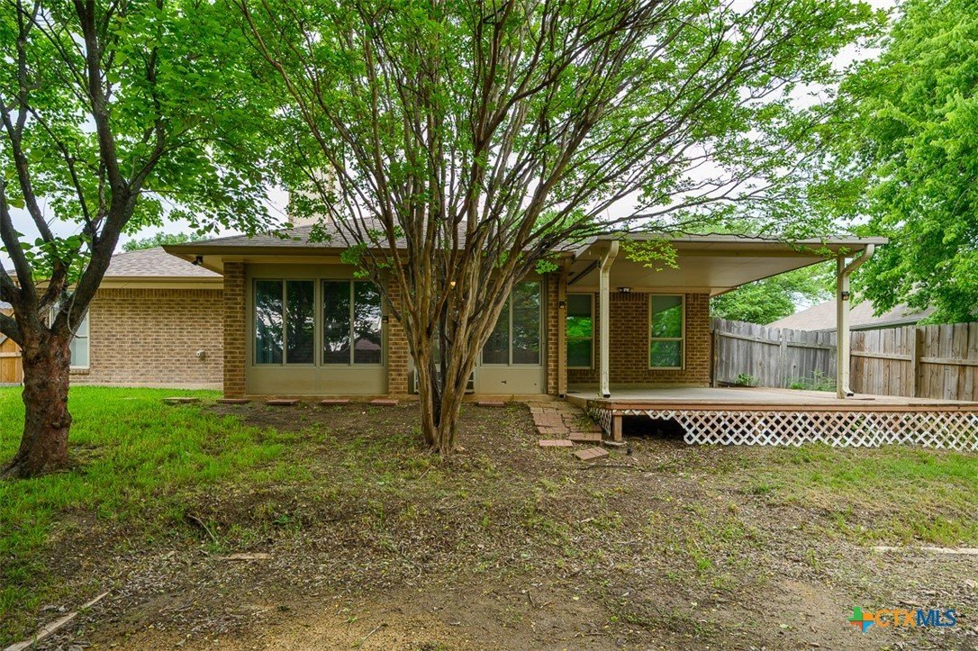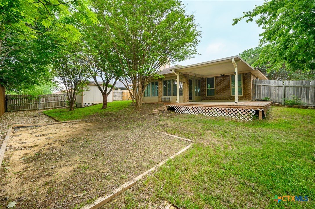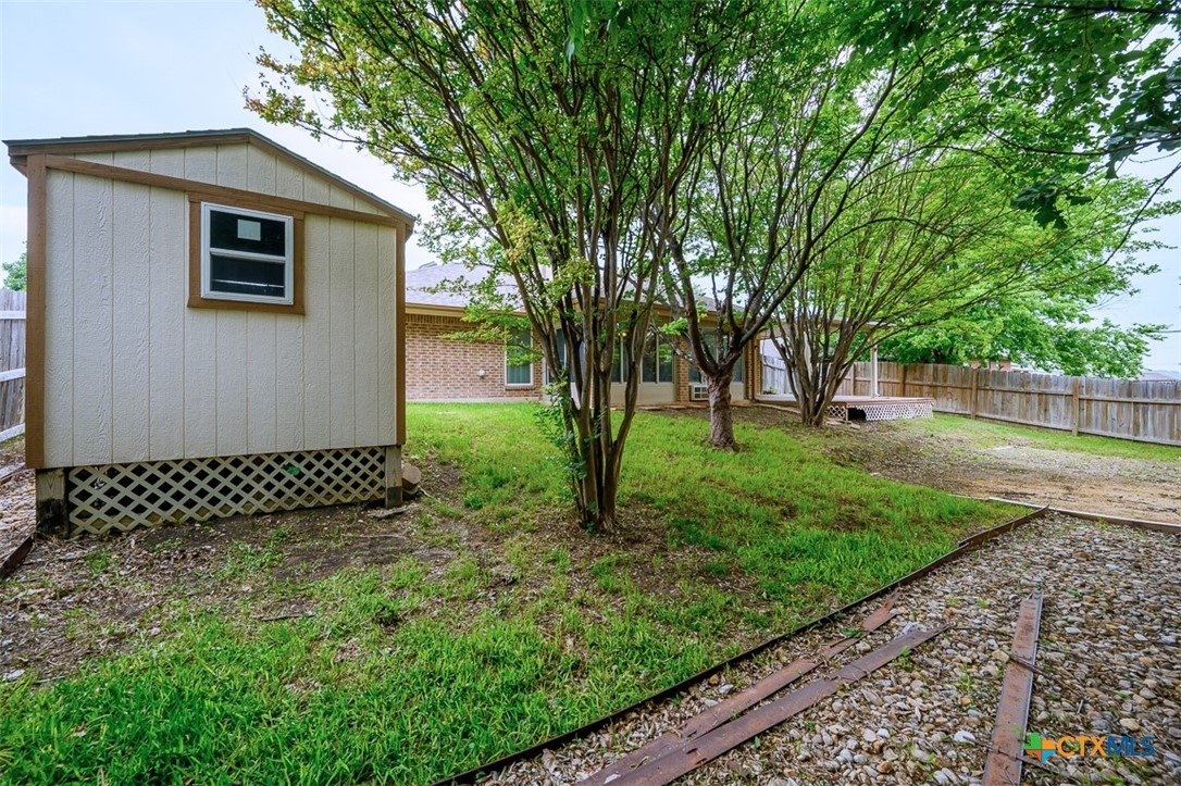 Step into a home that combines comfort, character, and a location that keeps everything within easy reach. Set in an established neighborhood near schools, this property offers inviting outdoor spaces and thoughtful updates throughout. Mature trees create a welcoming first impression, while the backyard is designed for relaxing or entertaining with a spacious covered patio and extended wood deck. There’s also a separate outbuilding ready to handle tools, hobbies, or extra storage. Inside, the open feel begins in the great room, where a high ceiling and corner brick fireplace create a warm, airy focal point. The dining area is filled with natural light from a large window and features a stylish ledge for added visual interest. The kitchen is both functional and attractive, complete with quartz countertops, stainless steel appliances, and plenty of cabinet space to keep everything organized. The owner’s suite continues the theme of space with its elevated ceiling, along with a bathroom that includes a long double vanity and a soaking tub for winding down at the end of the day. Wood laminate flooring runs through the bedrooms, and the secondary rooms feature unique ceiling details that add personality. The secondary bathroom has been beautifully remodeled in 2025, showcasing a sleek, modern feel with updated finishes. One of the standout features is the sunroom, surrounded by windows and filled with natural light—perfect for a sitting area, hobby space, or home office. With added features like a security system and sprinkler system, this home offers a blend of comfort, function, and everyday livability.