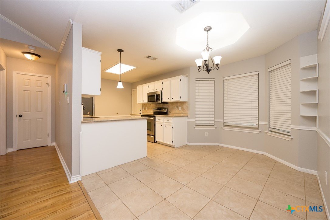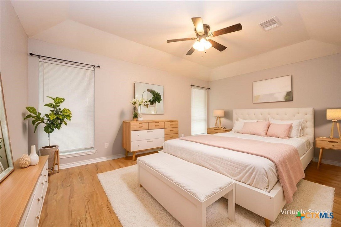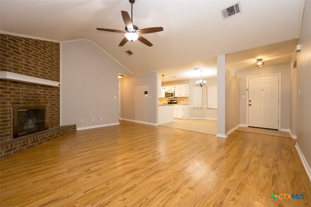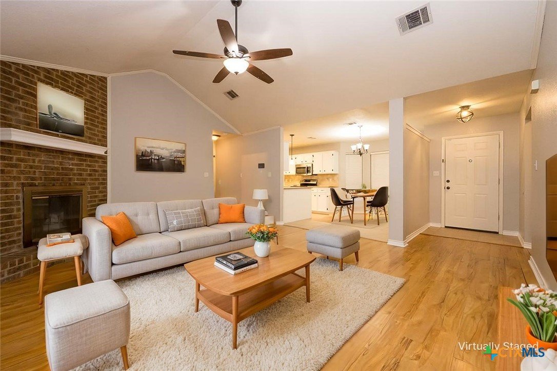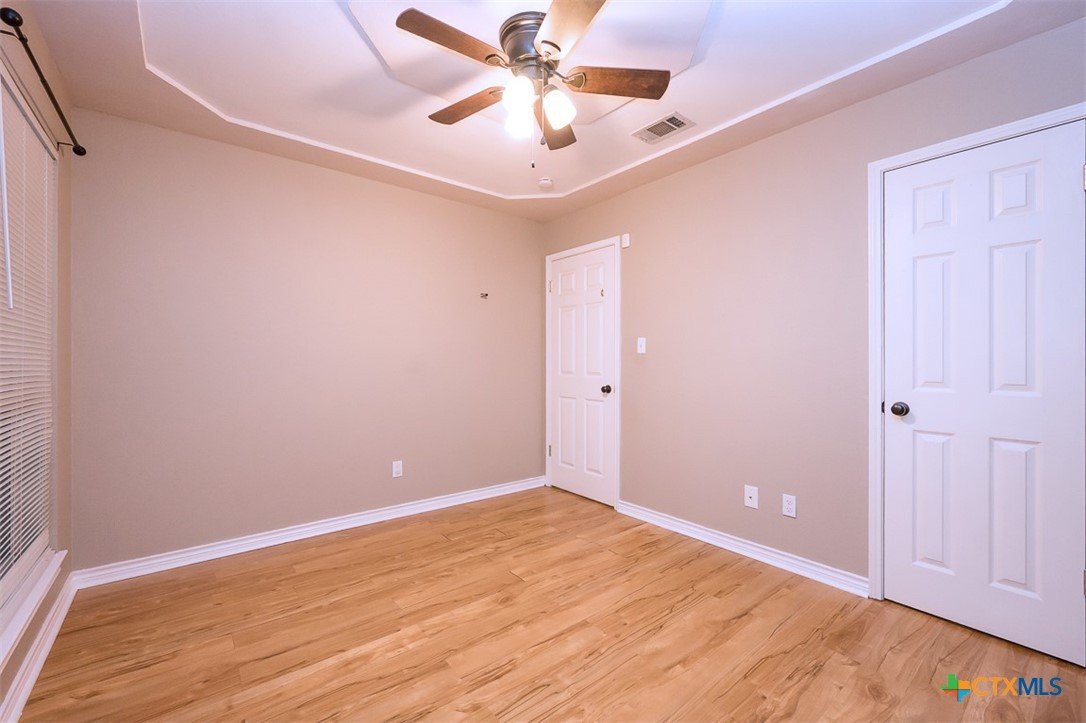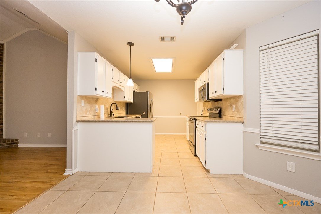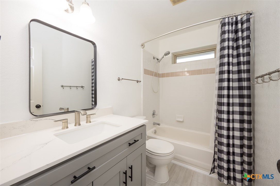 Step into a home that combines comfort, character, and a location that keeps everything within easy reach. Set in an established neighborhood near schools, this property offers inviting outdoor spaces and thoughtful updates throughout. Mature trees create a welcoming first impression, while the backyard is designed for relaxing or entertaining with a spacious covered patio and extended wood deck. There’s also a separate outbuilding ready to handle tools, hobbies, or extra storage. Inside, the open feel begins in the great room, where a high ceiling and corner brick fireplace create a warm, airy focal point. The dining area is filled with natural light from a large window and features a stylish ledge for added visual interest. The kitchen is both functional and attractive, complete with quartz countertops, stainless steel appliances, and plenty of cabinet space to keep everything organized. The owner’s suite continues the theme of space with its elevated ceiling, along with a bathroom that includes a long double vanity and a soaking tub for winding down at the end of the day. Wood laminate flooring runs through the bedrooms, and the secondary rooms feature unique ceiling details that add personality. The secondary bathroom has been beautifully remodeled in 2025, showcasing a sleek, modern feel with updated finishes. One of the standout features is the sunroom, surrounded by windows and filled with natural light—perfect for a sitting area, hobby space, or home office. With added features like a security system and sprinkler system, this home offers a blend of comfort, function, and everyday livability.