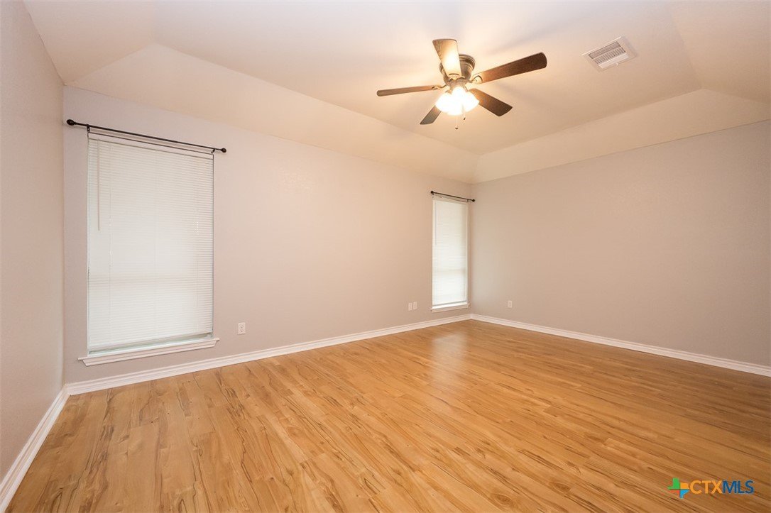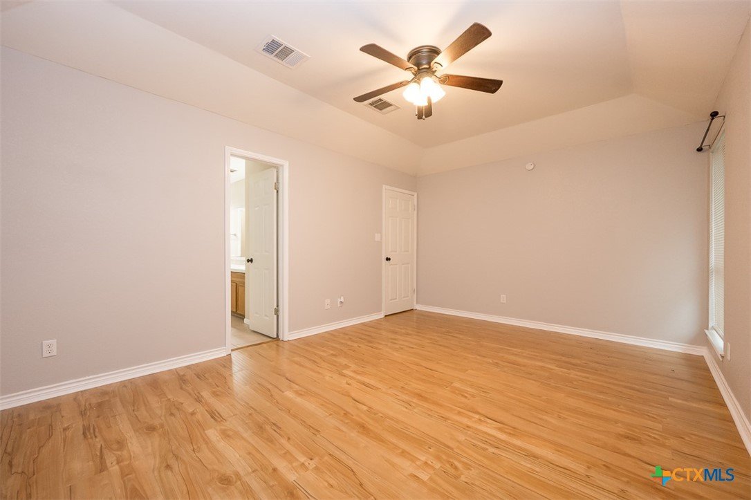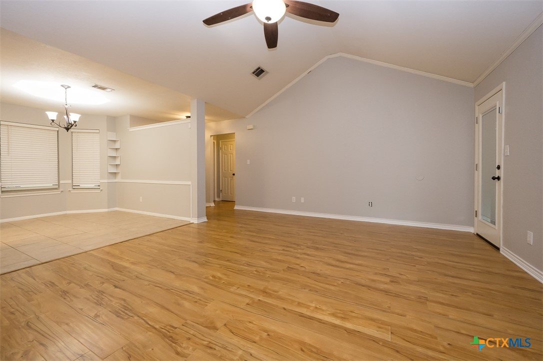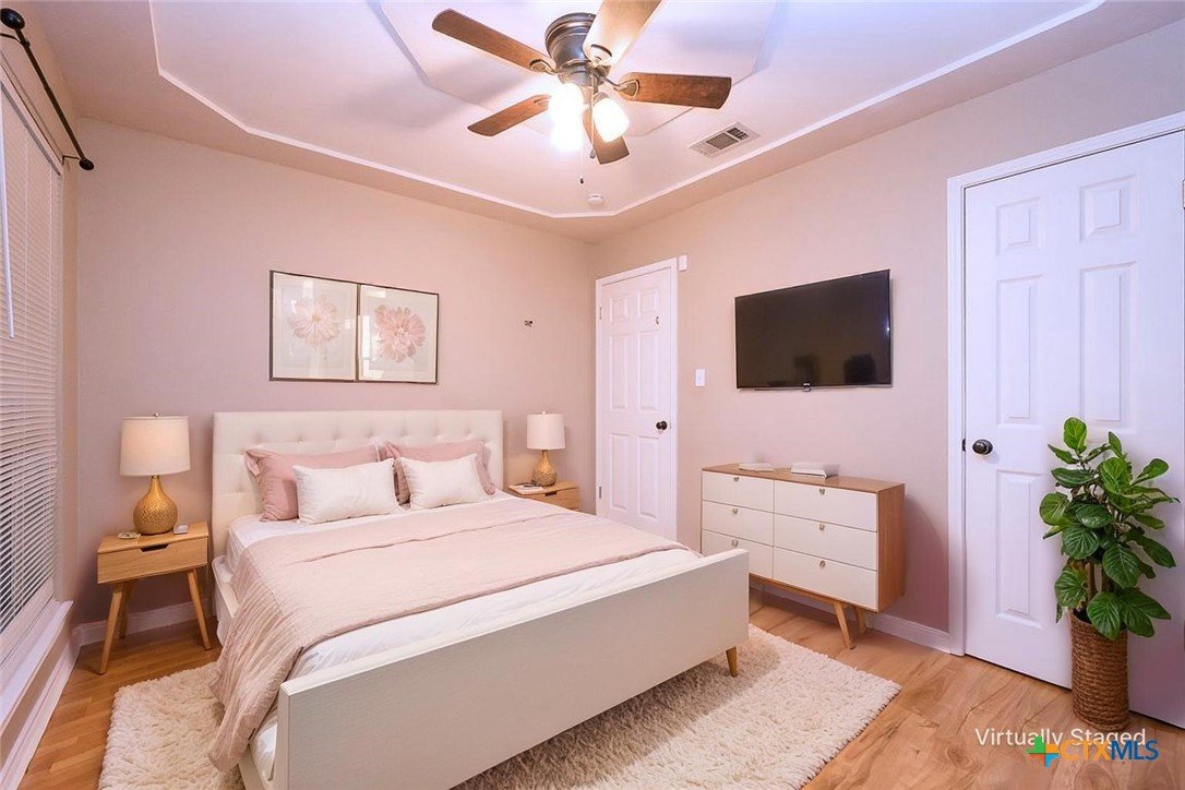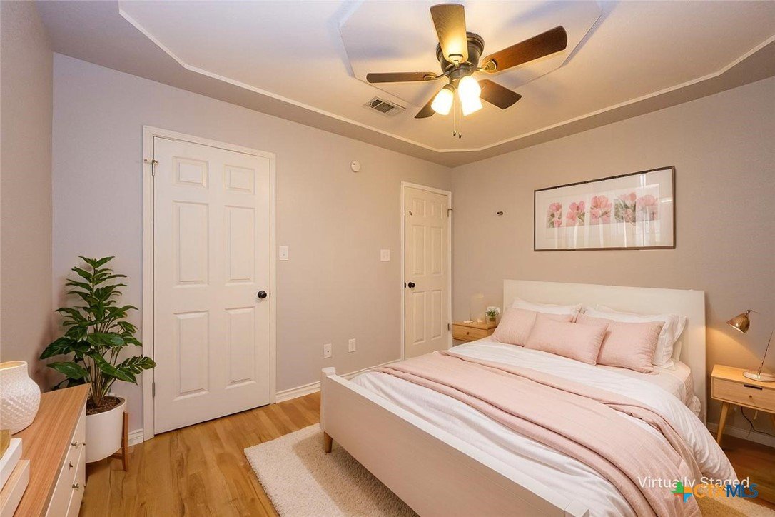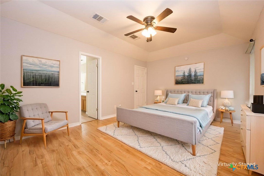 Step into a home that combines comfort, character, and a location that keeps everything within easy reach. Set in an established neighborhood near schools, this property offers inviting outdoor spaces and thoughtful updates throughout. Mature trees create a welcoming first impression, while the backyard is designed for relaxing or entertaining with a spacious covered patio and extended wood deck. There’s also a separate outbuilding ready to handle tools, hobbies, or extra storage. Inside, the open feel begins in the great room, where a high ceiling and corner brick fireplace create a warm, airy focal point. The dining area is filled with natural light from a large window and features a stylish ledge for added visual interest. The kitchen is both functional and attractive, complete with quartz countertops, stainless steel appliances, and plenty of cabinet space to keep everything organized. The owner’s suite continues the theme of space with its elevated ceiling, along with a bathroom that includes a long double vanity and a soaking tub for winding down at the end of the day. Wood laminate flooring runs through the bedrooms, and the secondary rooms feature unique ceiling details that add personality. The secondary bathroom has been beautifully remodeled in 2025, showcasing a sleek, modern feel with updated finishes. One of the standout features is the sunroom, surrounded by windows and filled with natural light—perfect for a sitting area, hobby space, or home office. With added features like a security system and sprinkler system, this home offers a blend of comfort, function, and everyday livability.