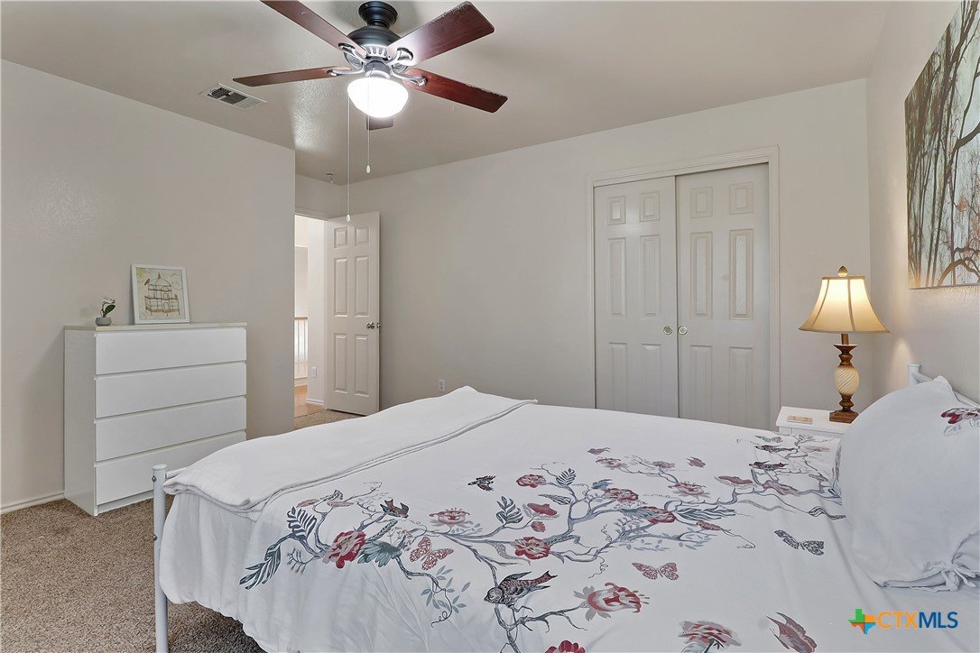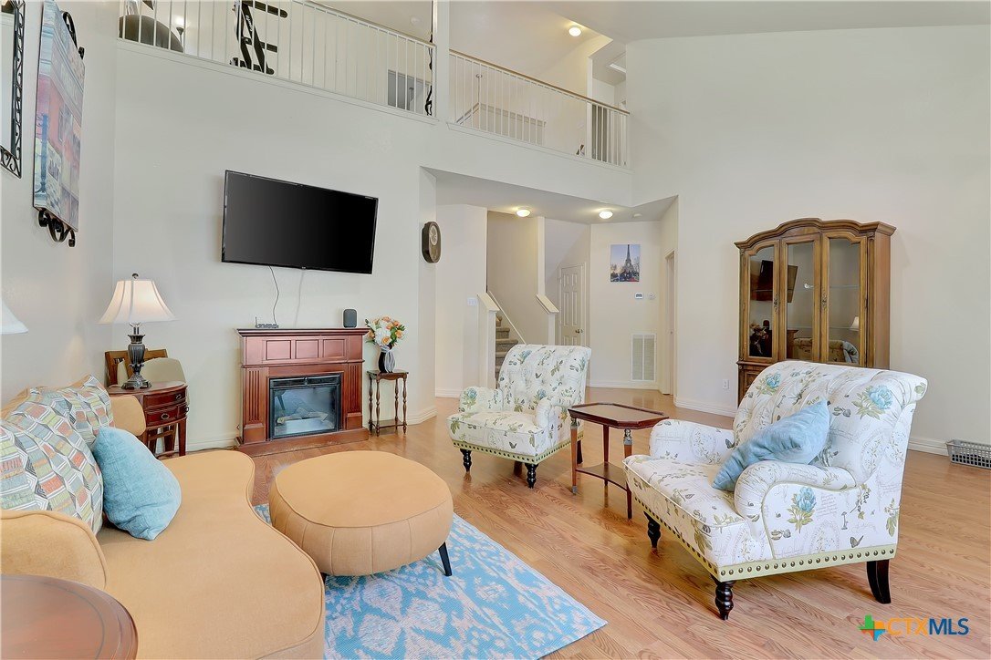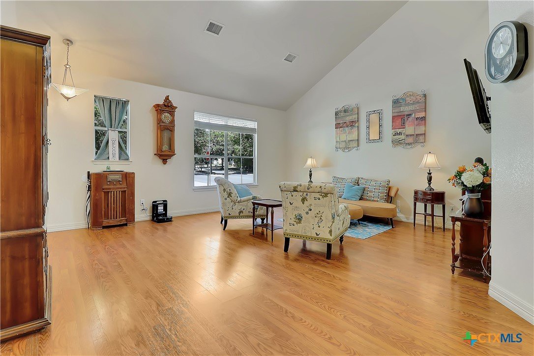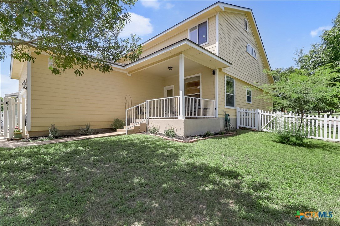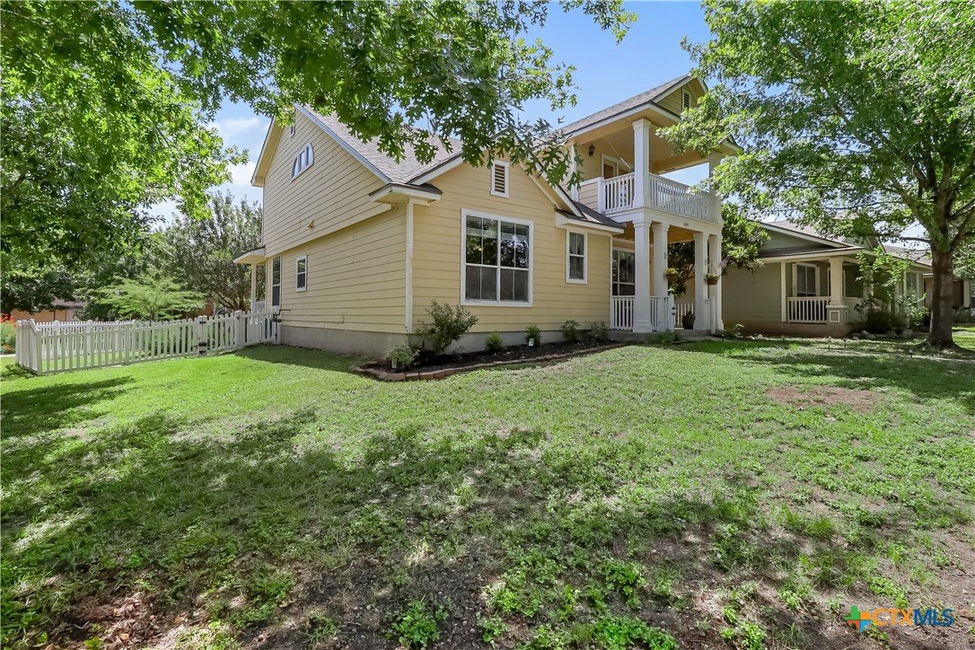Experience quintessential Plum Creek living in this lovely farmhouse-style home, positioned directly across from Decker Park. The heart of the home is the renovated custom kitchen, showcasing cottage-style glass cabinets, butcher block counters, an island, and a farm style sink, all designed with abundant storage. The main-level primary suite offers a private retreat with a separate tub and shower, dual pedestal sinks, and a spacious walk-in closet. Upstairs are three additional bedrooms and a flexible bonus living area. Enjoy park views from the covered porch and balcony. Features a brand-new dimensional shingled roof. This prime corner lot is just a 1/2 mile walk from Negley Elementary, McNaughton Pool, and Plum Creek Dog Park. Recently upgraded children's park is directly across the street. Plum Creek includes two pools, two pickleball courts, a stocked fishing pond, maintained walking path, Plum Creek Gulf Course, and community wide events like yoga, family game night, and volunteer opportunities coordinated monthly. The grade school has an 8/10 rating and there is a highly rated interactive childcare center next door. An established community with holiday focused activities year round. Only 30 minutes to downtown Austin & 15 minutes to Texas State University Find out why this neighborhood is different from any other. Discover the friendly, walkable charm of Plum Creek!
