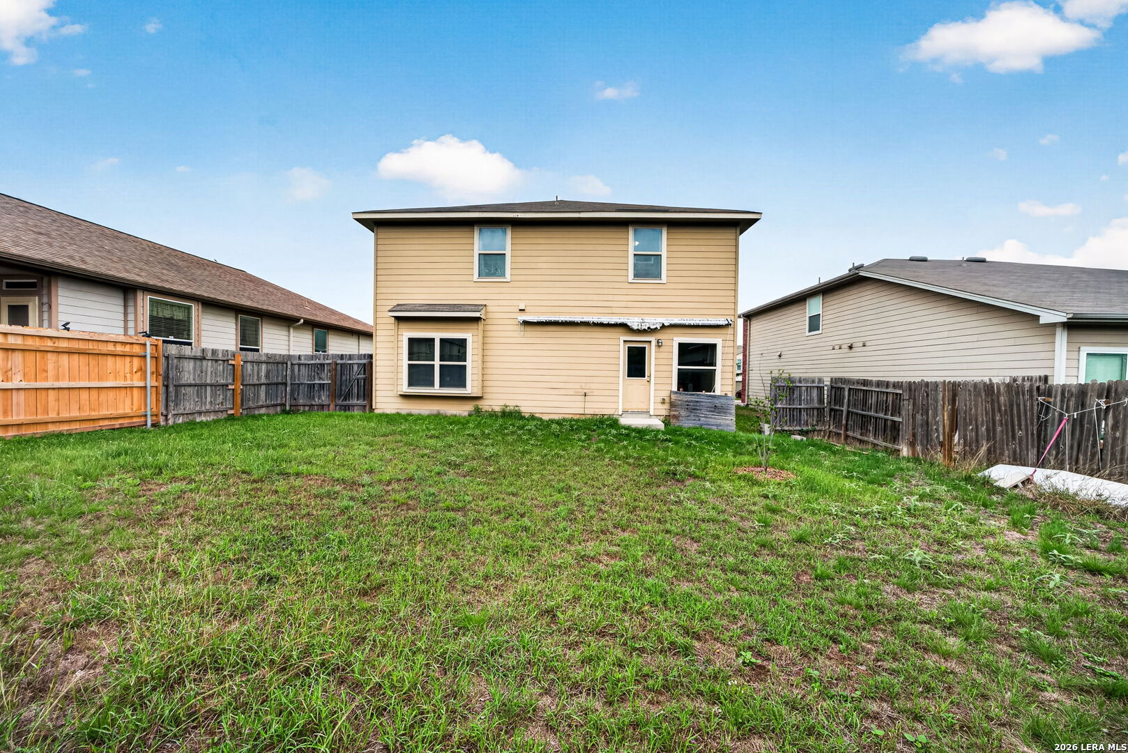 Welcome to this well-maintained 3 Bedroom 2.5 Bath home with a spacious open-concept floor plan with a bright living area that flows seamlessly into the dining space and kitchen-perfect for everyday living and entertaining. The primary suite provides a comfortable retreat with a private bath and walk-in closet located downstairs, while the additional bedrooms are upstairs they are well-sized and versatile for family, guests, or a home office. Step outside to a generously sized backyard with plenty of space for outdoor activities, pets, or future enhancements. Just steps from the neighborhood park, this home offers both comfort and convenience. With easy access to major highways including I-10 and Loop 410, Randolph AFB, BAMC, and Fort Sam Houston, and just a short drive to downtown San Antonio.