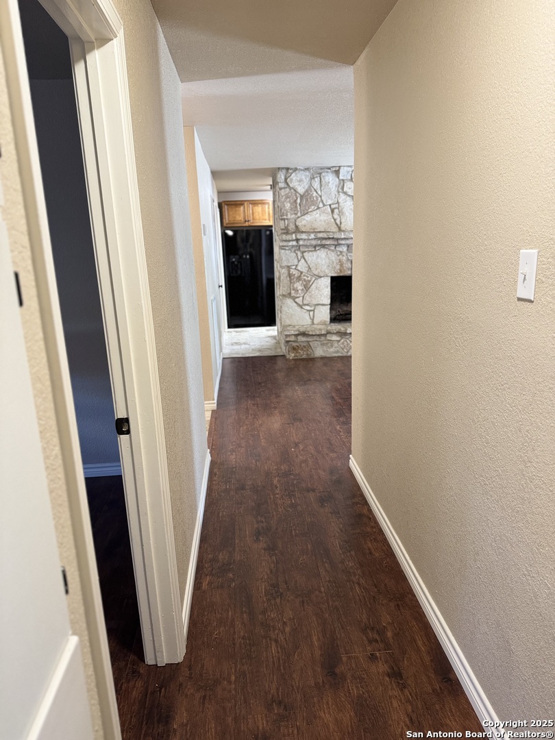 Charming 1-story, 3-bed, 2-bath rental with an updated kitchen and bathrooms, a cozy fireplace in the living room, and no carpet-vinyl plank and tile flooring throughout for easy maintenance. The converted garage offers versatile space for a home theater, game room, or extra living area. Enjoy a spacious backyard with a large concrete patio and mature shade trees, perfect for relaxing or entertaining. Neighborhood amenities include a playground, park, sports court, golf, and a pool. Conveniently located near I-35 North with a quick commute to Randolph AFB and close to shopping and dining options.