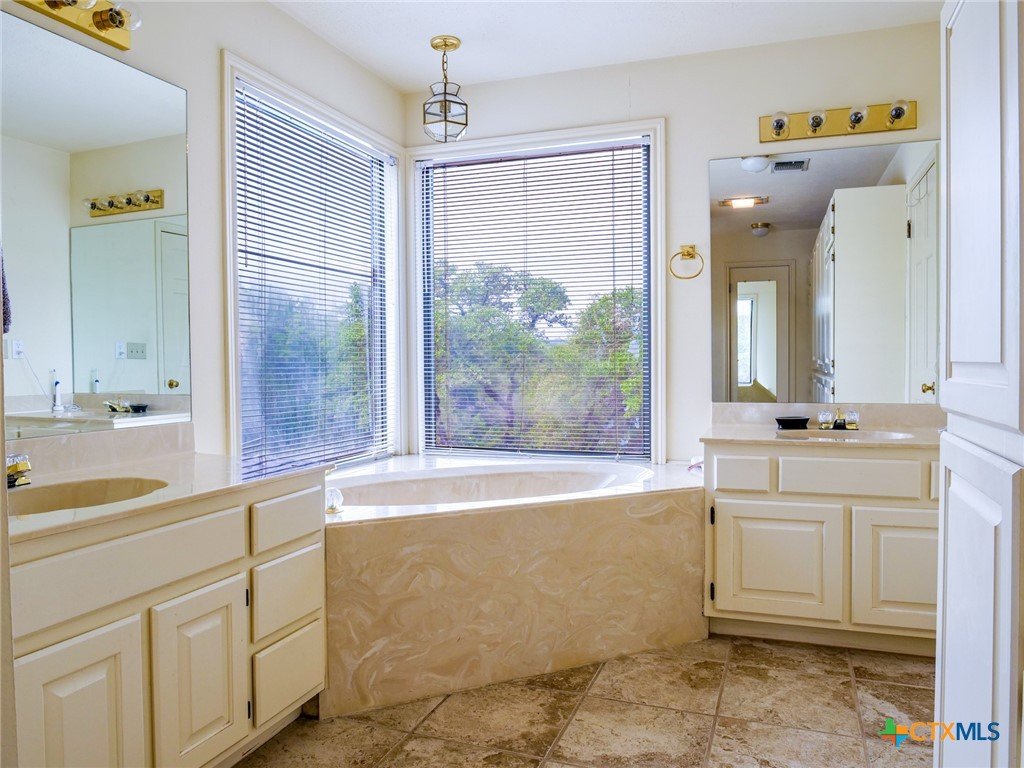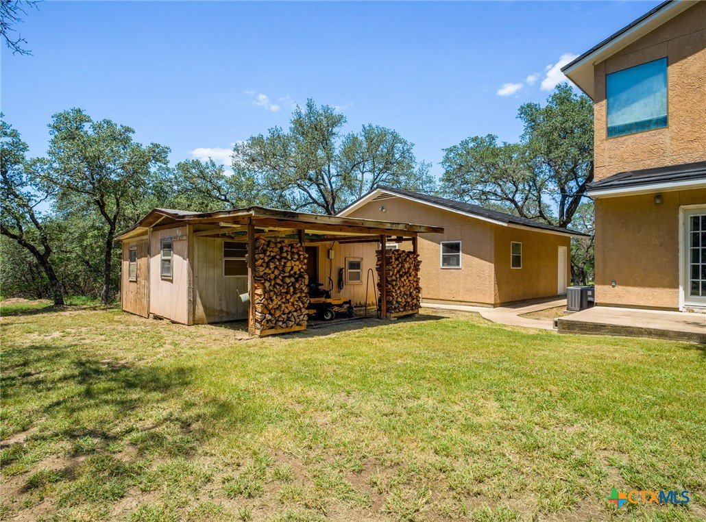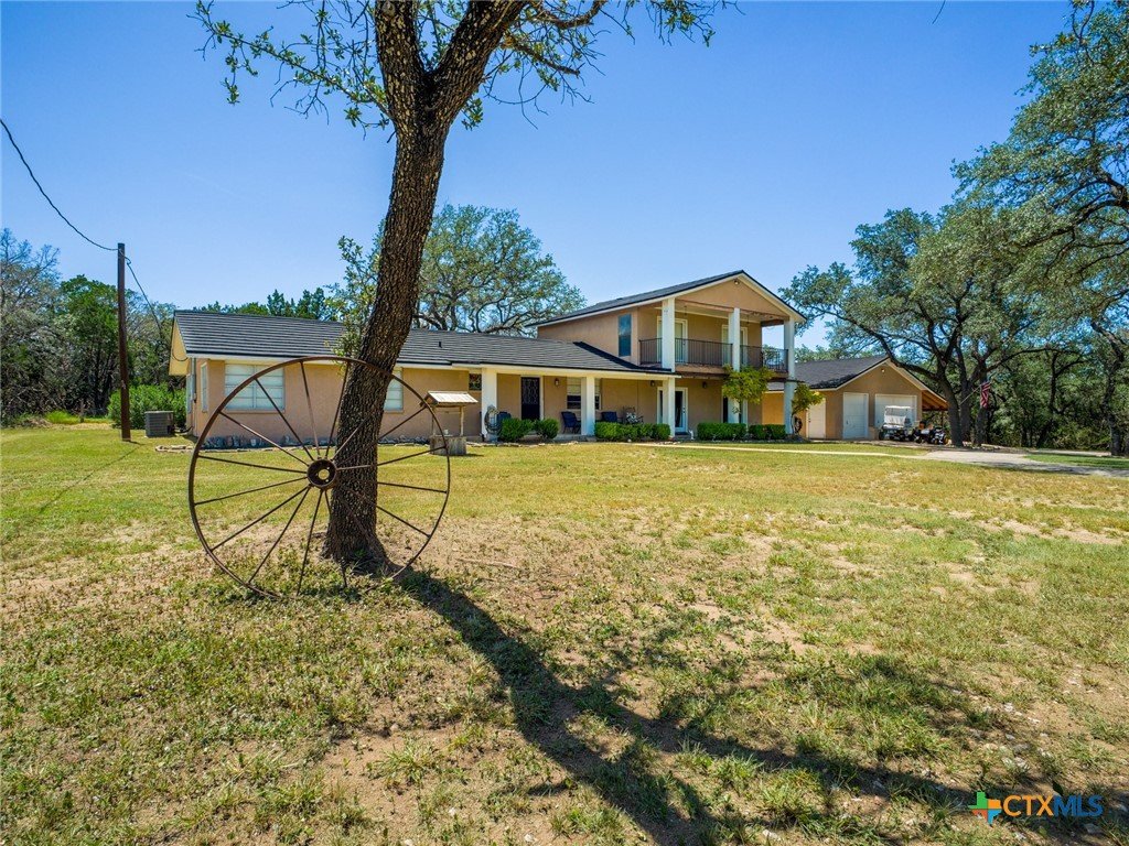 Enjoy daily respite and relaxation in this sprawling Hill Country lakeside retreat. Just a stone's throw from native Lake Travis and the community boat launch, it's the perfect setting for porch sitting and sunset watching. The 3/3 ranch style home offers two primary suites and multiple outside spaces. Three car garage, workshop/partially converted guest house with lots of options, separate carport cover for extra equipment/boat. Secluded, warm and inviting - the perfect daily retreat! Where do I begin? The roof was replaced in 2024 and has tremendous R-Value as demonstrated by 25% utility bill savings since installation. Electricity bill ranges$200 to $300. The roof has a lifetime transferrable warranty. The property offers tremendous parking, during a recent family gathering, 27 automobiles were accommodated and many of those covered. The three car garage, pole barn, carport, workshop behind detached garage, 12x10 well house offer many opportunities to pursue outdoor activities. The home itself boasts 2 separate zoned air conditioners, 3 ton and 3.5 ton less than 3years old. It also has 2 separate hot water heaters, 40 and 50 gallon less than 4 years old. The septic system was professionally modified in 2023 and is more than adequate to accommodate the 2696 sqft home. The home has 2 primary suites with bathroom, one on the first floor and the other on the second, which also has a balcony for relaxing mornings and evenings.