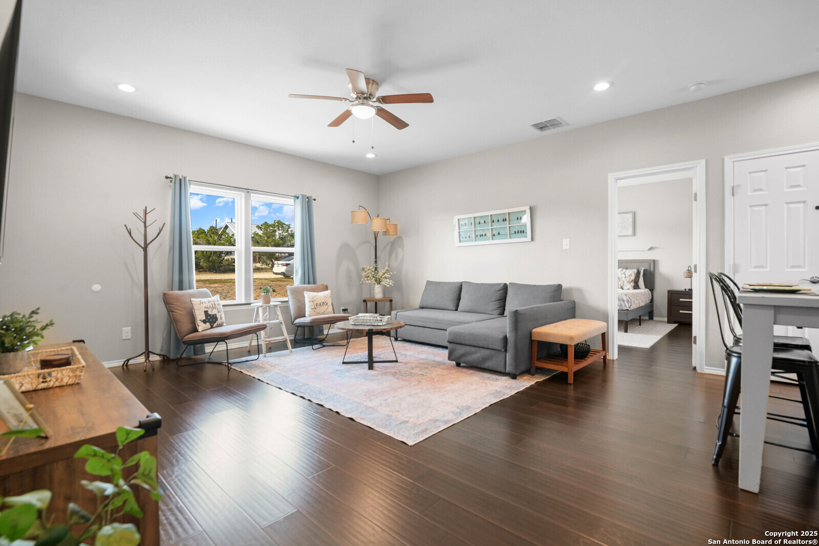 This newer-construction 2 bedroom, 2 bathroom home near Canyon Lake is available for $1,600 per month and comes fully furnished with everything you need, as it was previously set up as an Airbnb. The open-concept layout features a well-equipped kitchen, comfortable living area, stylish decor, and all essential household items, plus washer and dryer included. With modern finishes, cozy furnishings, and a convenient location just minutes from the lake, this move-in-ready home offers an easy and stress-free rental experience