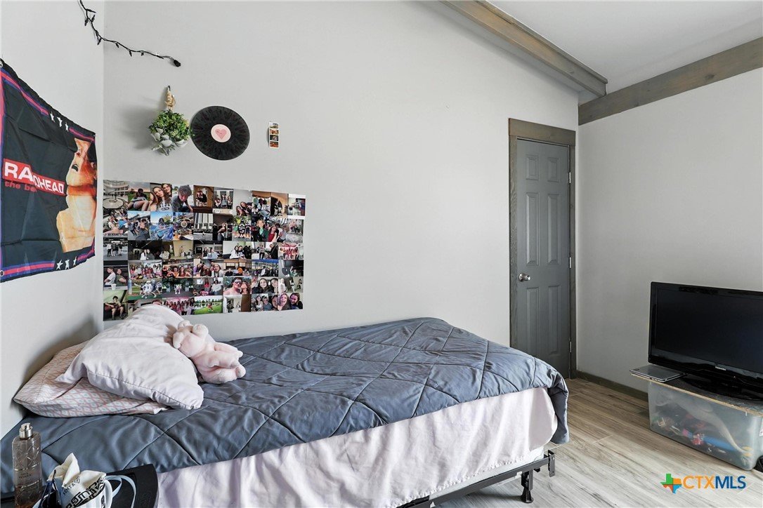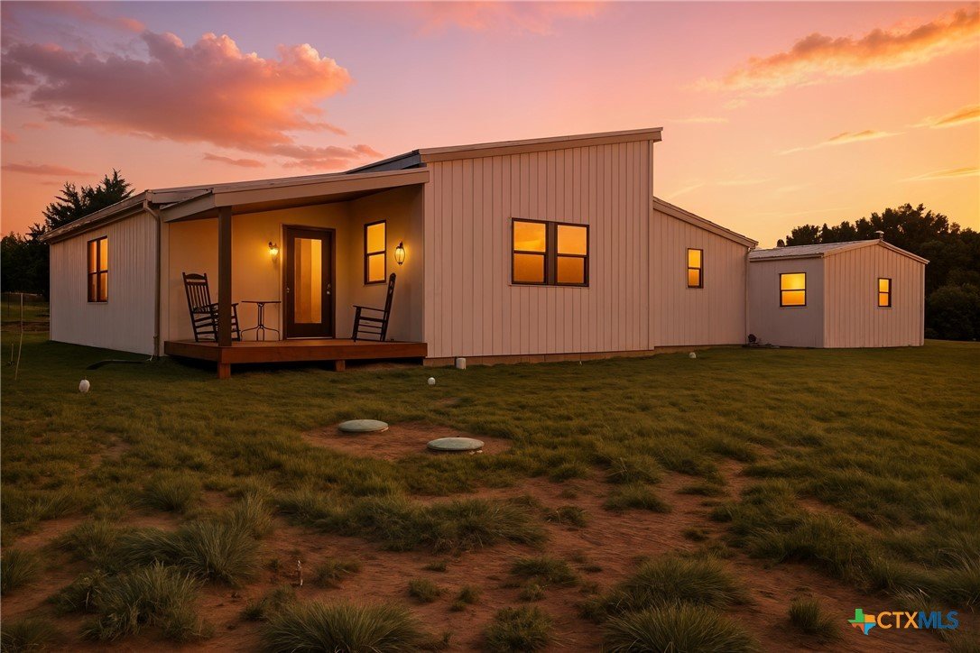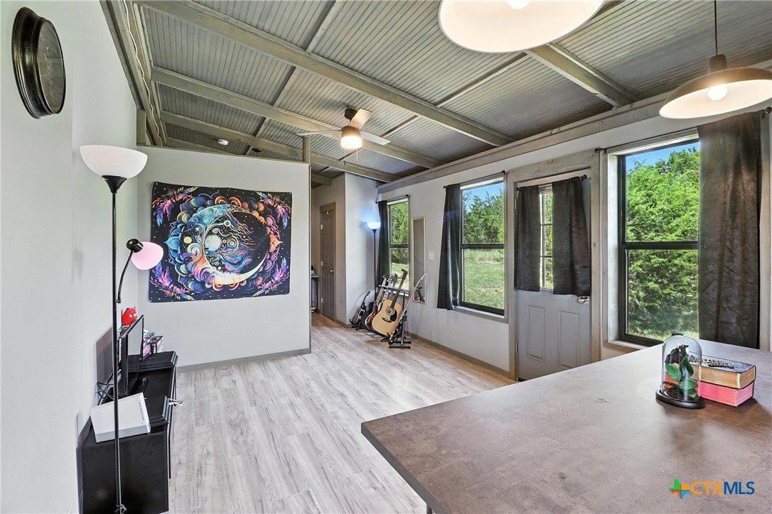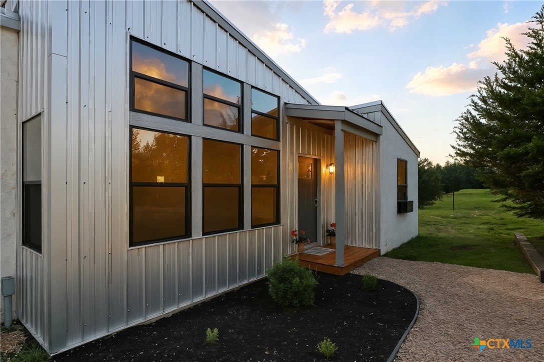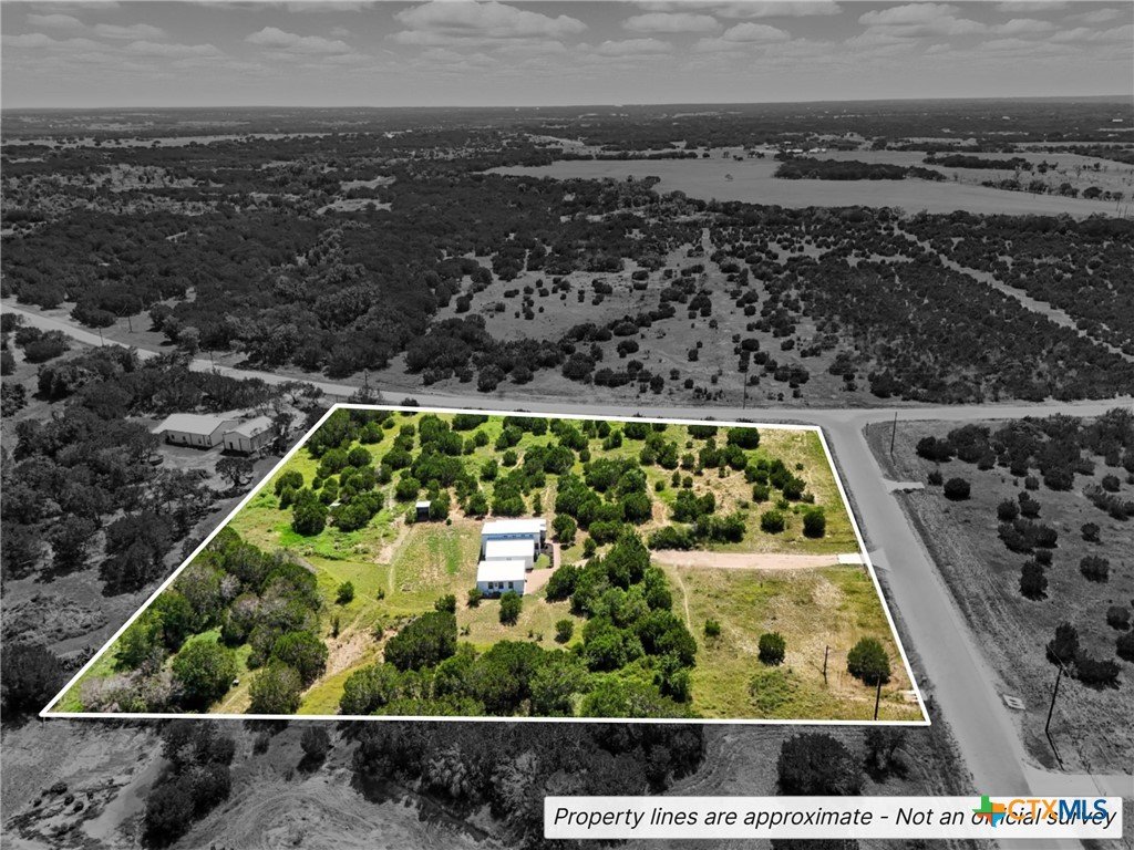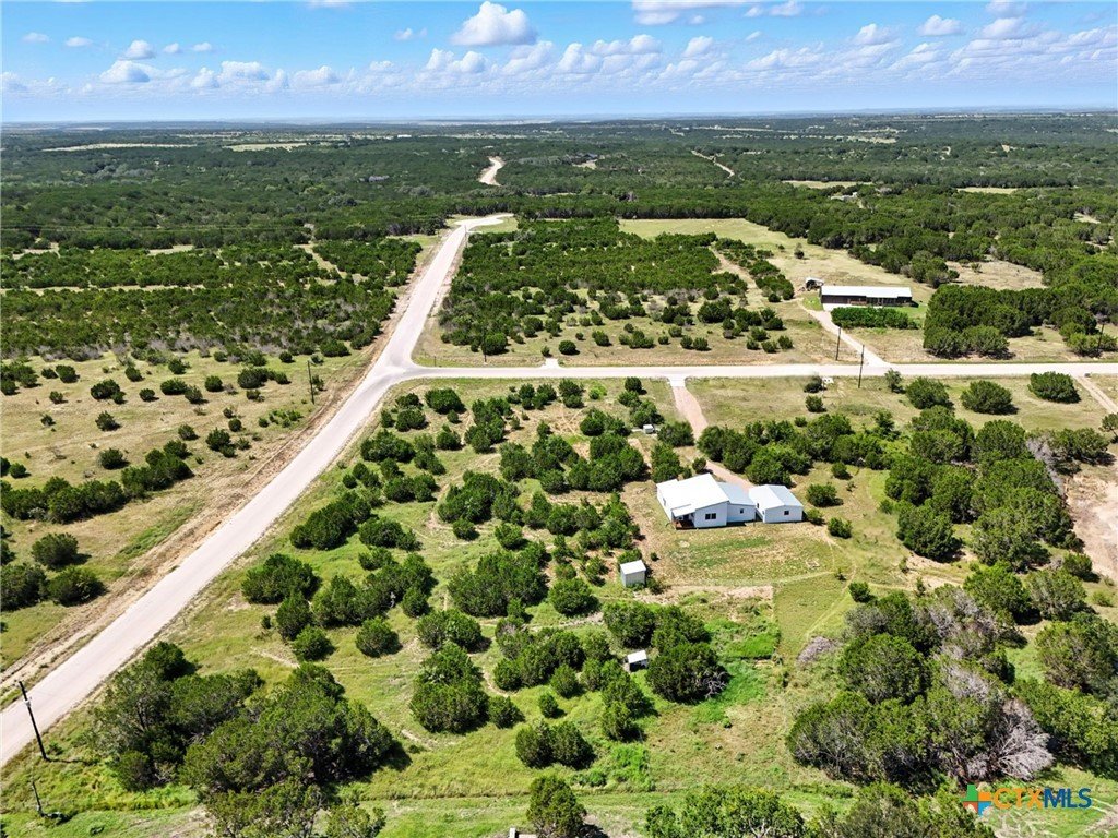 AFFORDABLE Country Living has Arrived! This barndo style home built in 2022 features three bedrooms, two bathrooms, great room style living/dining with a split plan. Kitchen is open to the entire great room area with island dining adorned with pendant lighting as a visual separation. Soaring beamed ceilings give the feeling of sprawling space in this 1684 sq ft main home. Dual head mini-split for the primary suite and main area, small window units for each of the additional bedrooms. Covered front porch greets you and the covered back porch is great for sunset views. Additionally, an attached storage room could easily be made into additional living space or is excellent storage as is. Detached two-car metal garage with an approximately 400 sq ft HVAC space with full bathroom gives you ample options. This space is the perfect home office, hobby space, studio, or potential ADU. Fenced and cross-fenced with a loafing shed; bring your horse! Ag use letter with low taxes. Minimal restrictions in this gated community. If you have been looking for your own little piece of Texas country at an affordable price, welcome to 495 Hurst Place Blvd! This value cannot be beat!! PRICED TO SELL