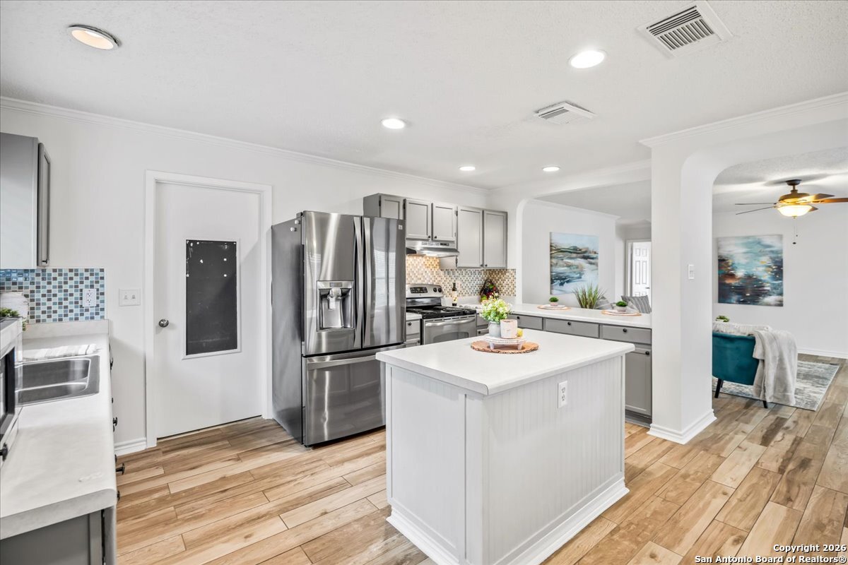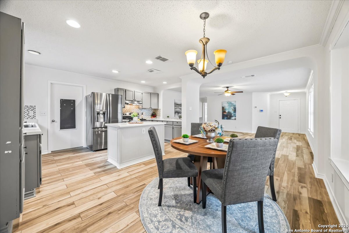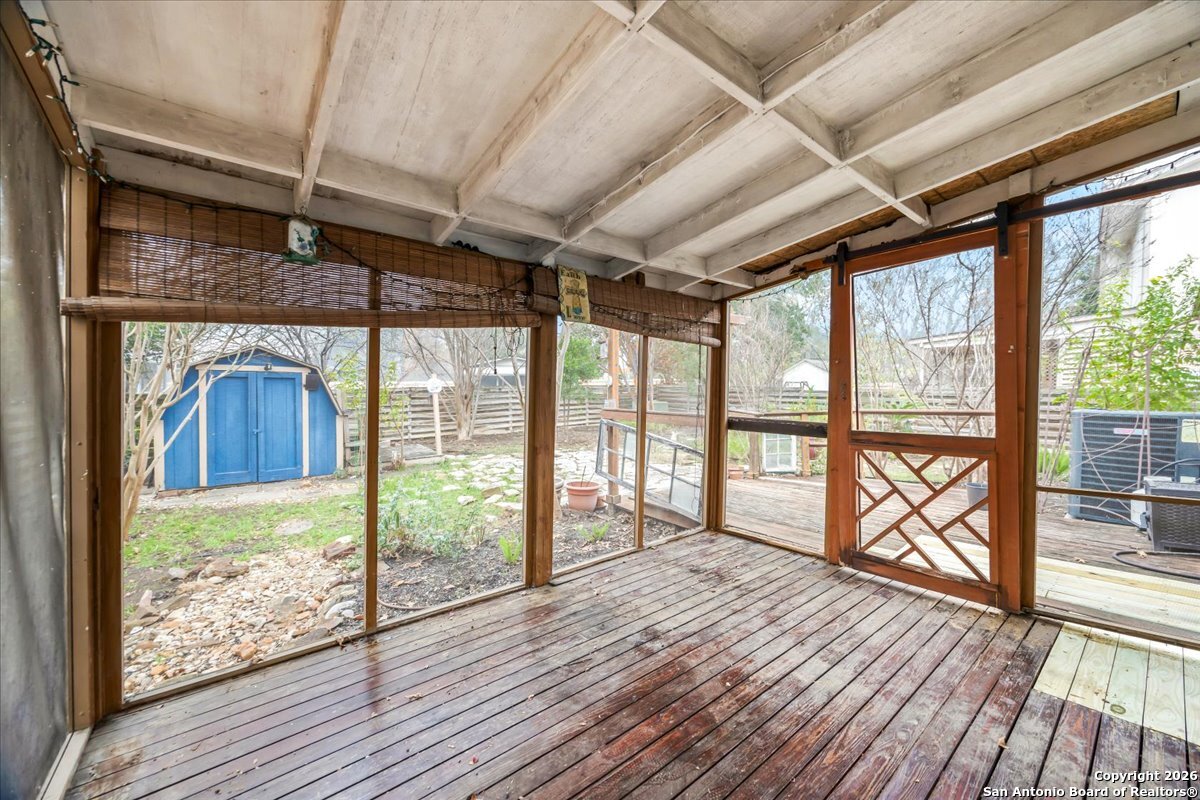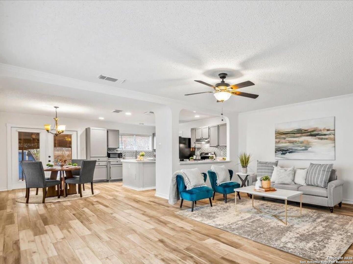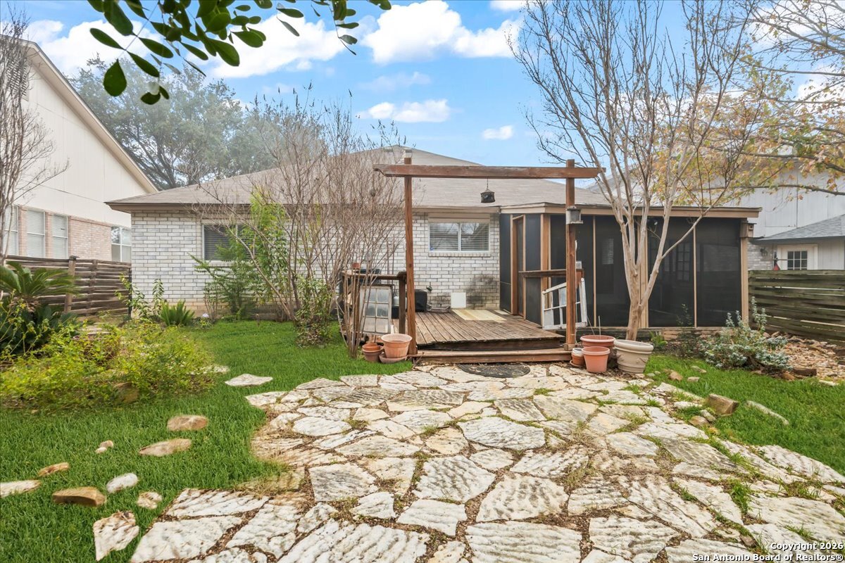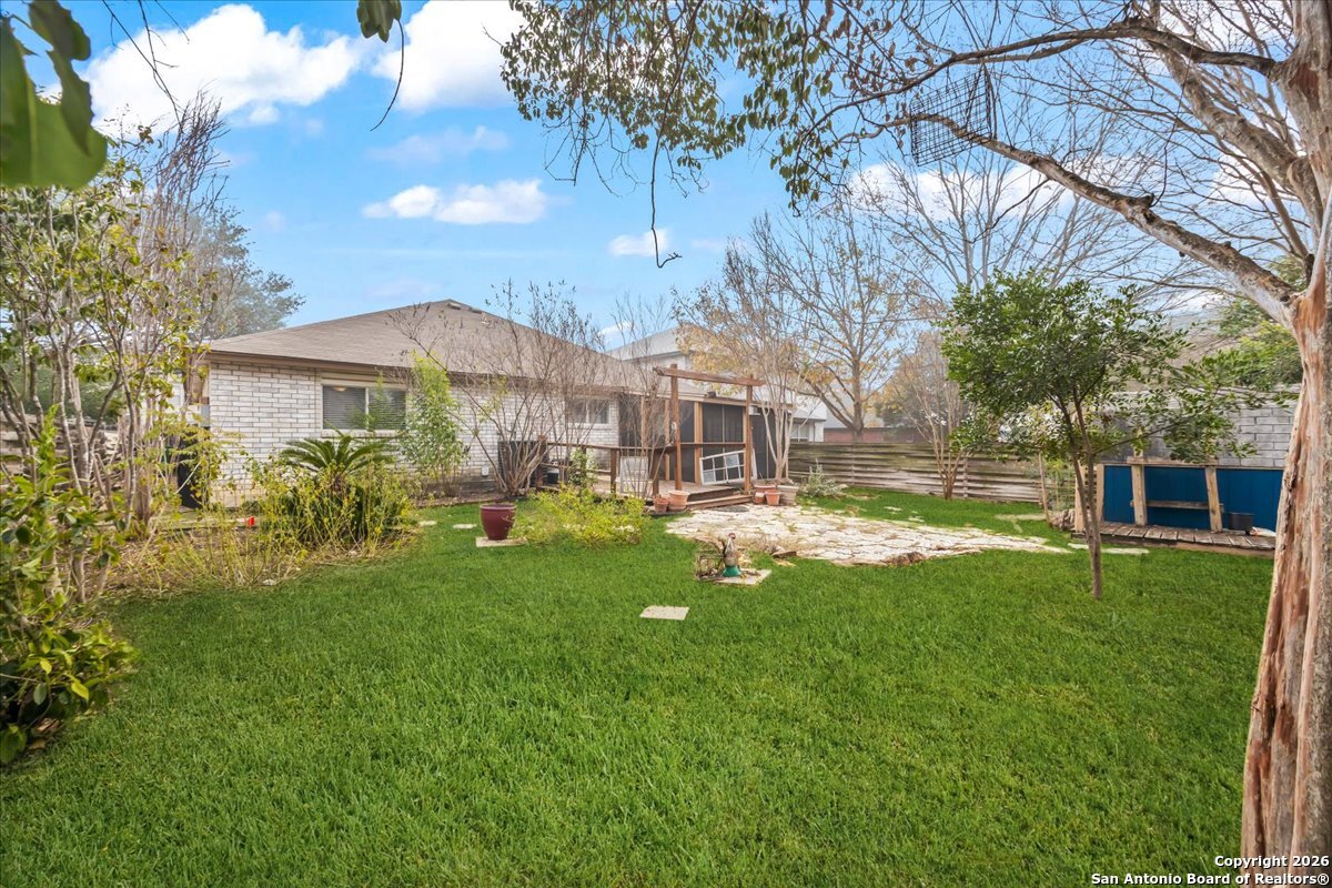 Welcome home to this charming one-story, 3-bedroom, 2-bath home located in the sought-after Longs Creek subdivision. Thoughtfully maintained and move-in ready, this home features an open floor plan, no carpet throughout, crown molding in the main living areas, and an updated kitchen with island-perfect for everyday living and entertaining. The spacious primary suite offers a walk-in closet and double vanity. Enjoy relaxing mornings or evenings on the covered, screened-in patio overlooking the backyard with a large storage shed. Conveniently located just inside Loop 1604 with easy access to Bulverde H-E-B, shopping, dining, entertainment, I-35, Hwy 281, Fort Sam Houston, and Randolph AFB. A wonderful opportunity in a fantastic location!