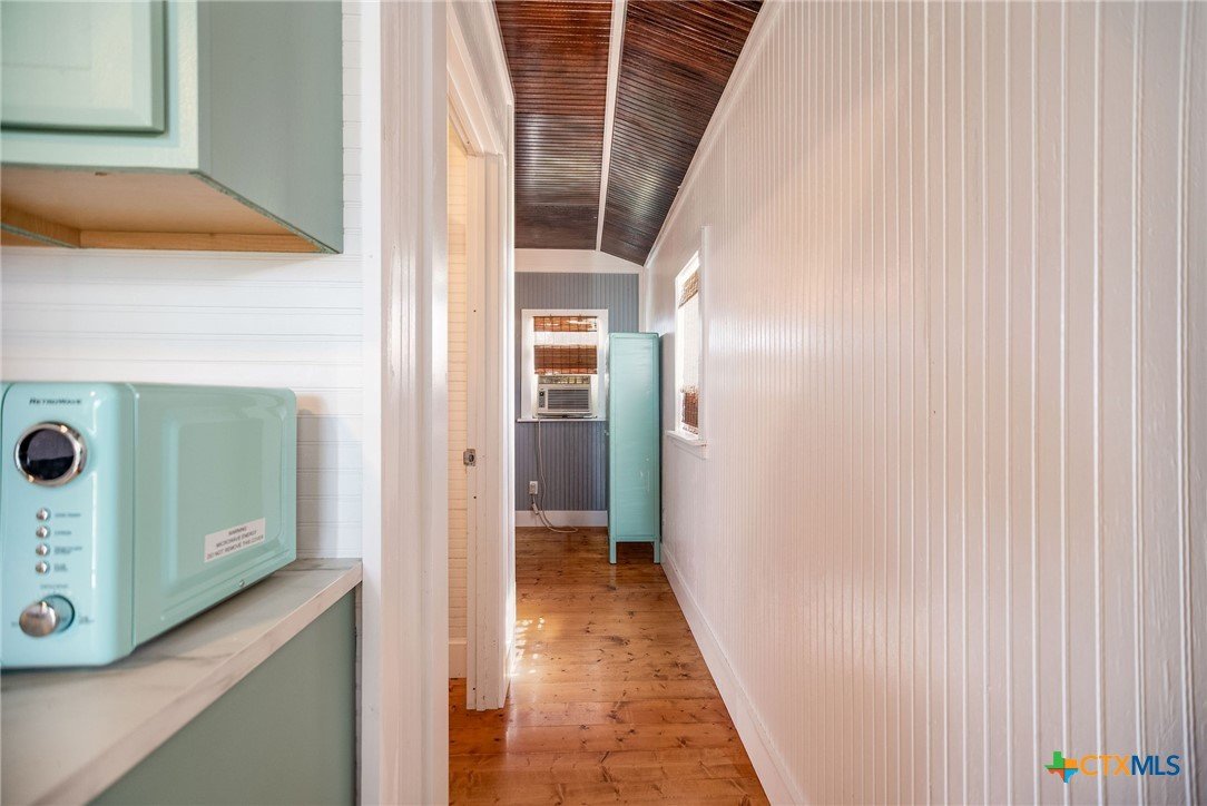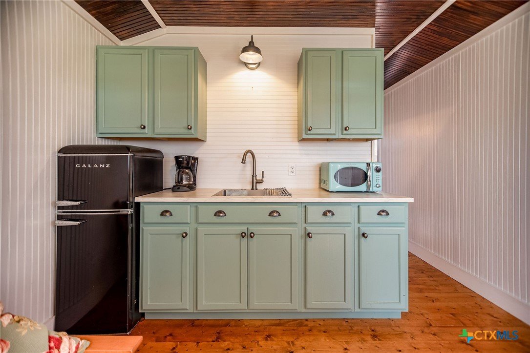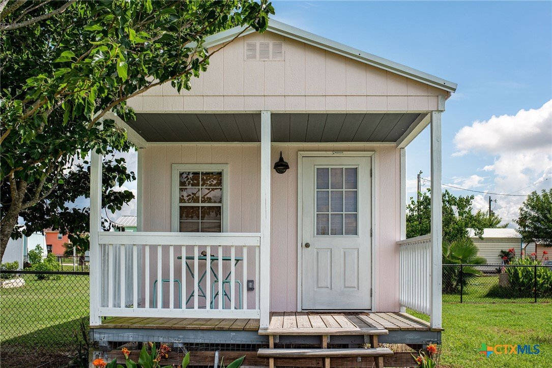 Tucked away on a quiet, private street just minutes from the bay, this charming pink coastal casita offers the perfect blend of comfort, space, and beach-town charm. Set on a generous lot and a half, the property features mature fruit trees, tropical palms, and plenty of room to relax or expand. The well-maintained 1-bedroom casita is thoughtfully designed with stained vaulted wood ceilings and rich hardwood floors throughout. A cozy kitchenette and fully furnished interior make it move-in or rental ready, comfortably sleeping up to 4 guests. Outside, the main 60x120 lot includes two RV hookups with electrical and septic connections, while the fenced 60x60 adjacent lot provides extra privacy or space for pets, gardening, or entertaining. A garden shed sits at the back of the property, and the 7-year-old septic system adds value and peace of mind. Whether you're looking for a weekend retreat, full-time beach escape, or income-producing property, this Magnolia Beach gem is ready to go.
