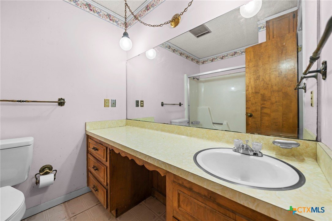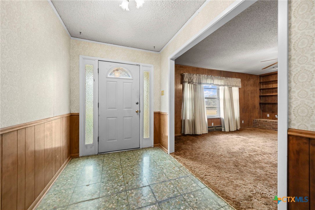 This spacious single-story home offers the perfect blend of comfort, function, and flow with 2,209 square feet of living space, situated on 4.91 beautiful acres. Built in 1975 and owned by the same family since 1977, this well-maintained property has been cared for with pride and intention. Inside, an open-concept family room (19’5” x 12’9”) connects seamlessly to the kitchen (10’4” x 13’2”) and dining area (9’2” x 15’7”), creating a welcoming space ideal for gatherings and everyday living. A formal living area (17’7” x 13’9”) off the foyer provides additional room for entertaining or relaxation. The primary suite (12’0” x 15’3”) features a private bath and walk-in closet, while two additional bedrooms share a nearby full bath. A large flex room (19’10” x 12’7”) offers versatile use as a game room, home office, or fitness area. Outdoors, the property is fully fenced and accessed through an electric gate. Exterior amenities include a large barn, two storage sheds, a two-car carport with electric, and a covered seating area with an awning — all shaded by mature trees and surrounded by wide-open Texas landscape. If you’ve been searching for peaceful country living with easy access to town, this one-of-a-kind property delivers the best of both worlds. Additional Property Details Located on the back right side of the property is the original well, which has not been in use since 1977. The home has been connected to city water for the past 20 years. The red barn situated on the right side of the property was built less than 10 years ago. There is one HVAC system and one water heater currently serving the home. A concrete tank located near the barn was originally used as a swimming hole but has not been used since 1975 and currently serves no functional purpose.