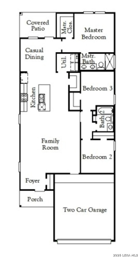 Welcome to the Frio floor plan-a stylish single-story home designed for modern living. Step into this bright, open layout featuring three bedrooms, two bathrooms, and a two-car garage, making it ideal for both everyday comfort and entertaining. Inside, the open-concept design seamlessly connects the living, kitchen, and casual dining areas. The kitchen is the heart of the home, showcasing a large island, gray cabinetry, subway tile backsplash, granite countertops, stainless steel appliances, and soaring 9-foot ceilings that enhance the spacious feel. Step outside to a covered patio, perfect for relaxing or unwinding. The expansive primary suite offers a walk-in closet and a well-appointed bathroom with an oversized shower, creating a private retreat. Don't miss your opportunity to tour this beautiful home on a corner homesite-schedule your visit today!