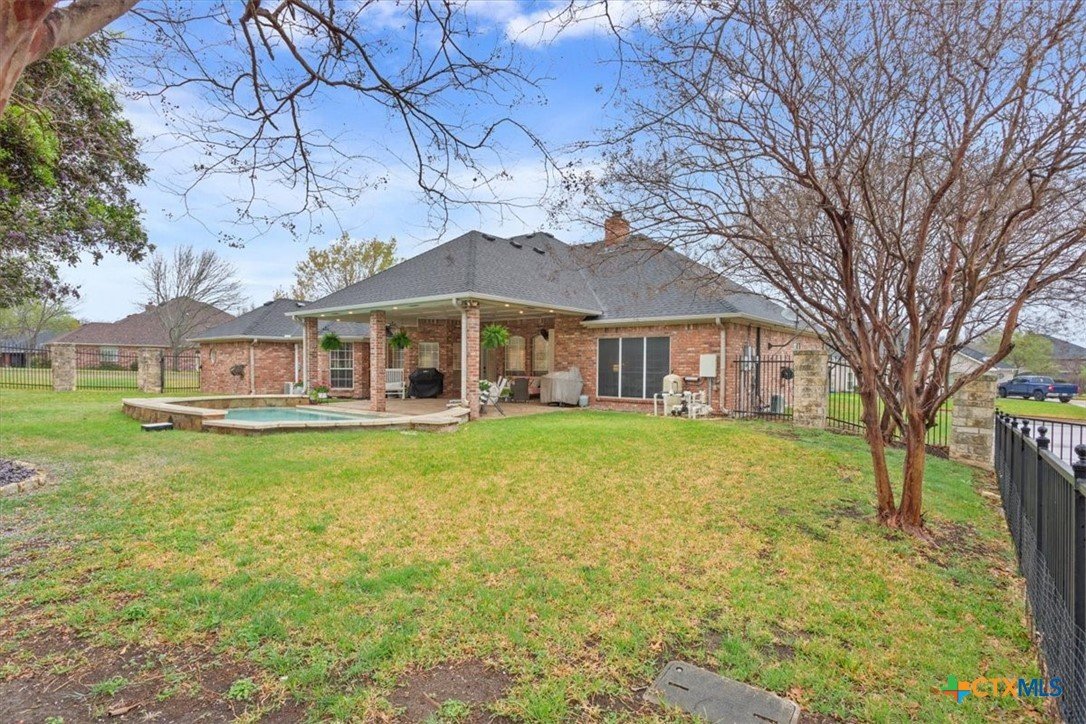 More pictures to COME! Live where every day feels like a private country club escape. Nestled in The Willows and set on a prime corner lot with mature trees, this stunning home offers sweeping golf course views and a lifestyle defined by elegance and ease. A spacious three-car garage positioned on the side of the home enhances both curb appeal and functionality, providing ample room for vehicles, the third car is a half size just the perfect size for a golf cart, or additional storage. From morning coffee overlooking the fairway to sunset swims in your self-cleaning pool with a dramatic waterfall edge, this is luxury designed to be enjoyed. Inside, the open-concept kitchen and family room create the perfect flow for entertaining, while the media/bedroom( 17x16) sets the tone for unforgettable movie nights and game-day gatherings. The chef-inspired kitchen features a farmhouse sink, built-in breadbox, expansive island, breakfast bar, soft-close cabinetry, and updated granite surfaces that elevate both style and function. Fresh interior paint, designer tile, modern mirrors, updated lighting, and ceiling fans add a sophisticated finish throughout. The primary suite (17x13) is a retreat of its own, complete with a spa-like bath offering a jetted tub, separate shower, dual vanities, and two oversized walk-in closets. Two secondary bedrooms (14x11) (share a Jack-and-Jill bath, plus a convenient half bath for guests. Energy-efficient geothermal HVAC (2020) and supplemental cooling units in the media room and primary suite provide customized comfort year-round. Quietly tucked away yet centrally located near Killeen and Harker Heights shopping, this home blends prestige, privacy, and play — where golf course views and resort-style living come together beautifully.